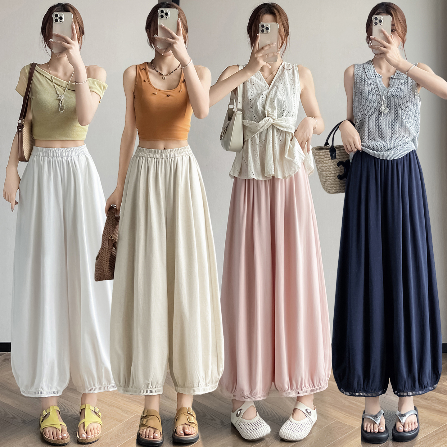 실사 얼음 실크 면 린넨 정장 와이드 레깅스 바지 여름 도루 하이웨이스트 루즈핏 느긋한 바람 캐주얼 스트레이트 바닥 청소 바지