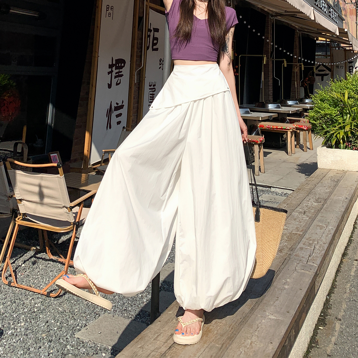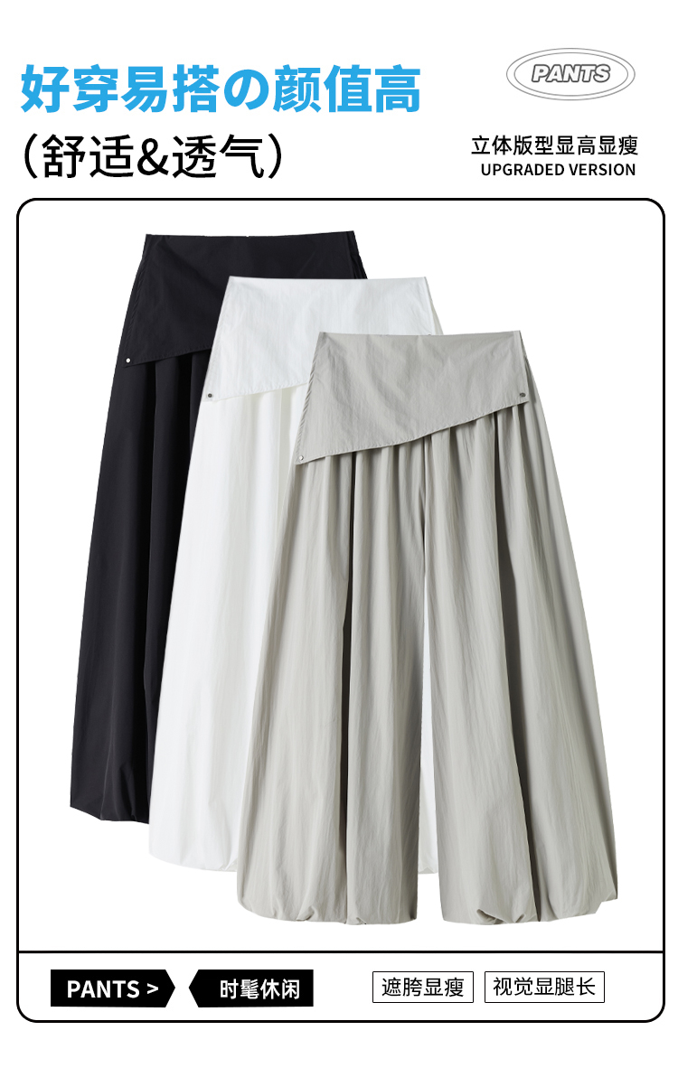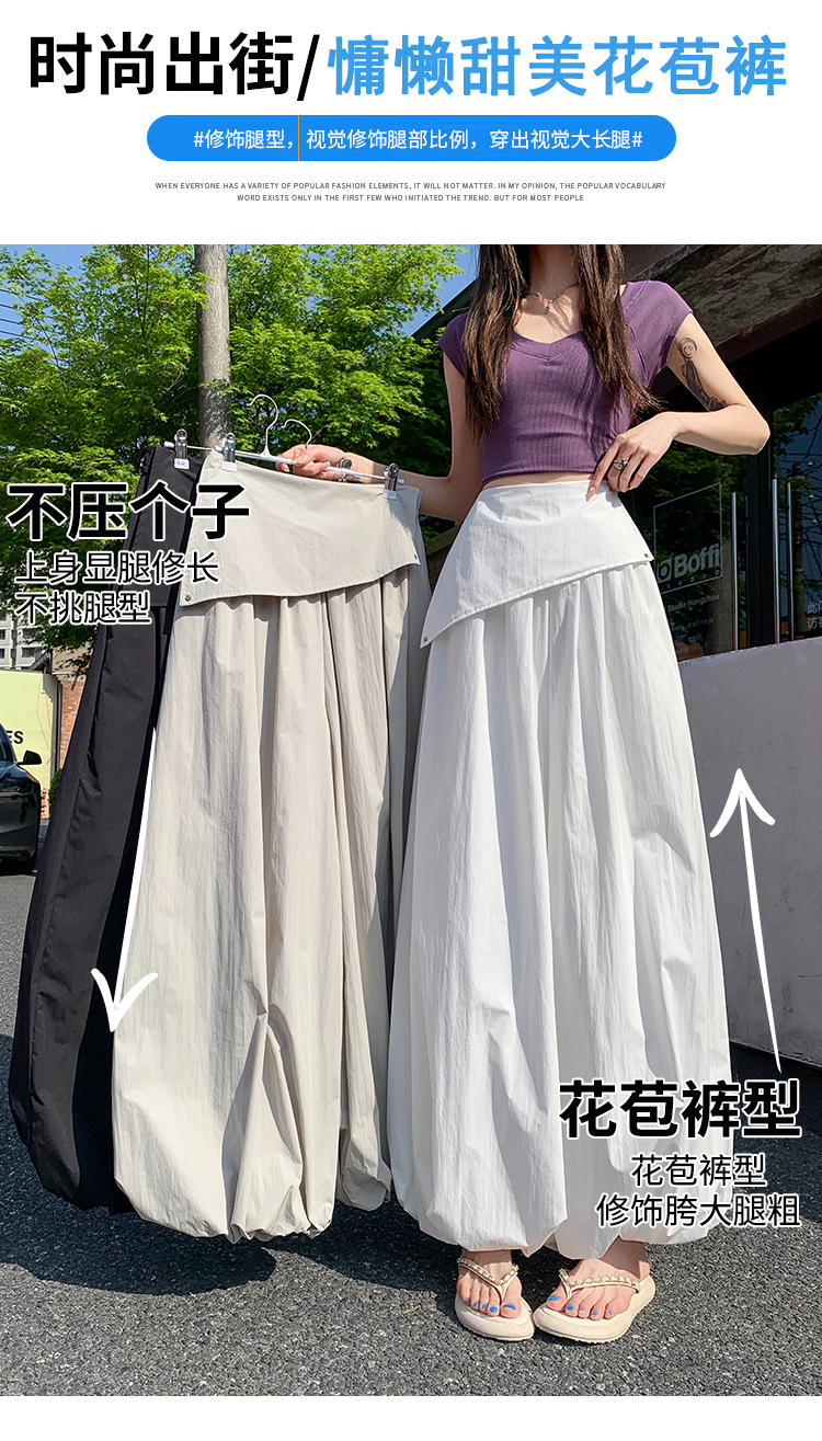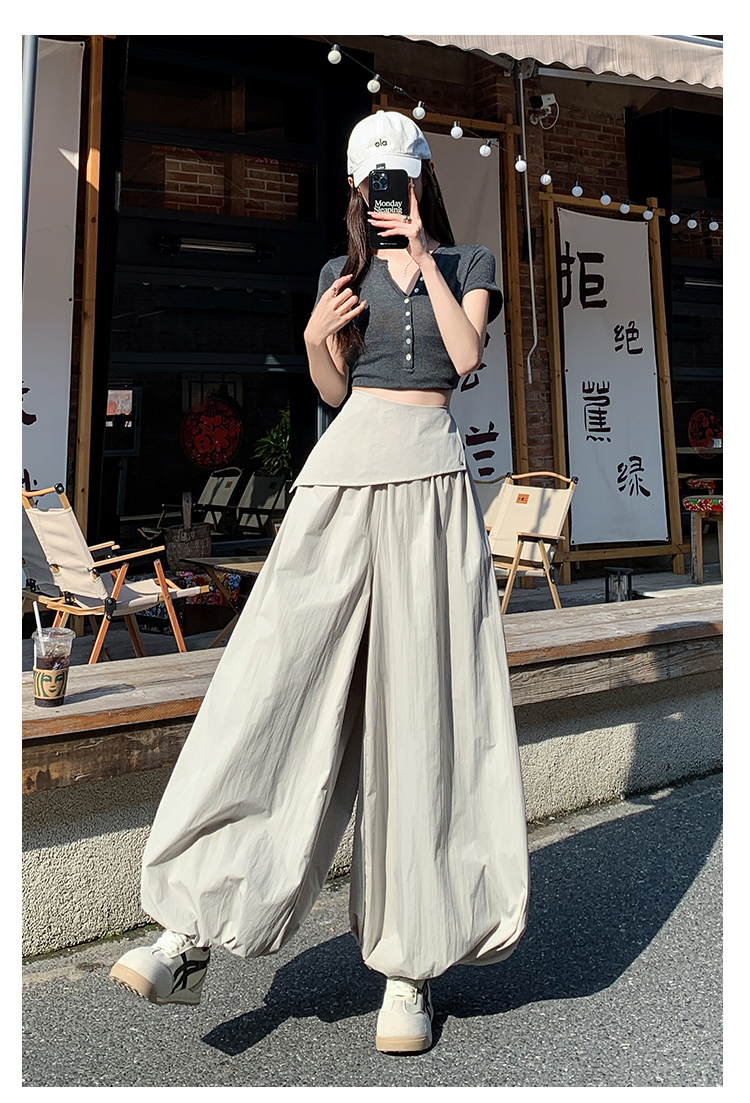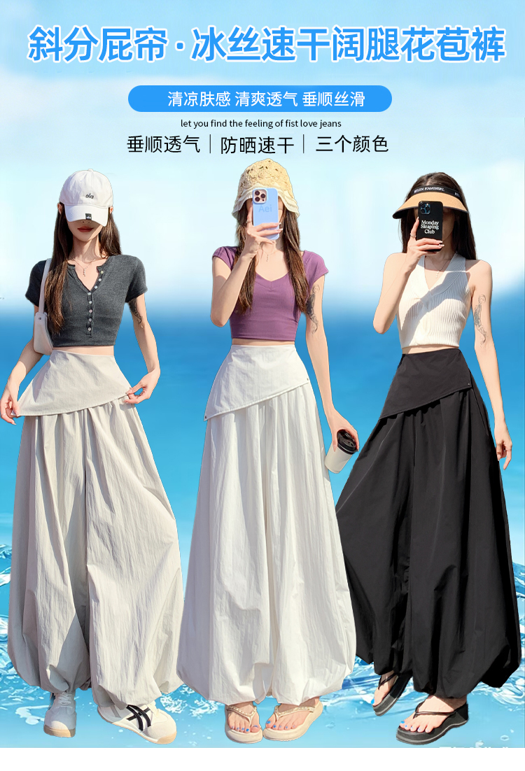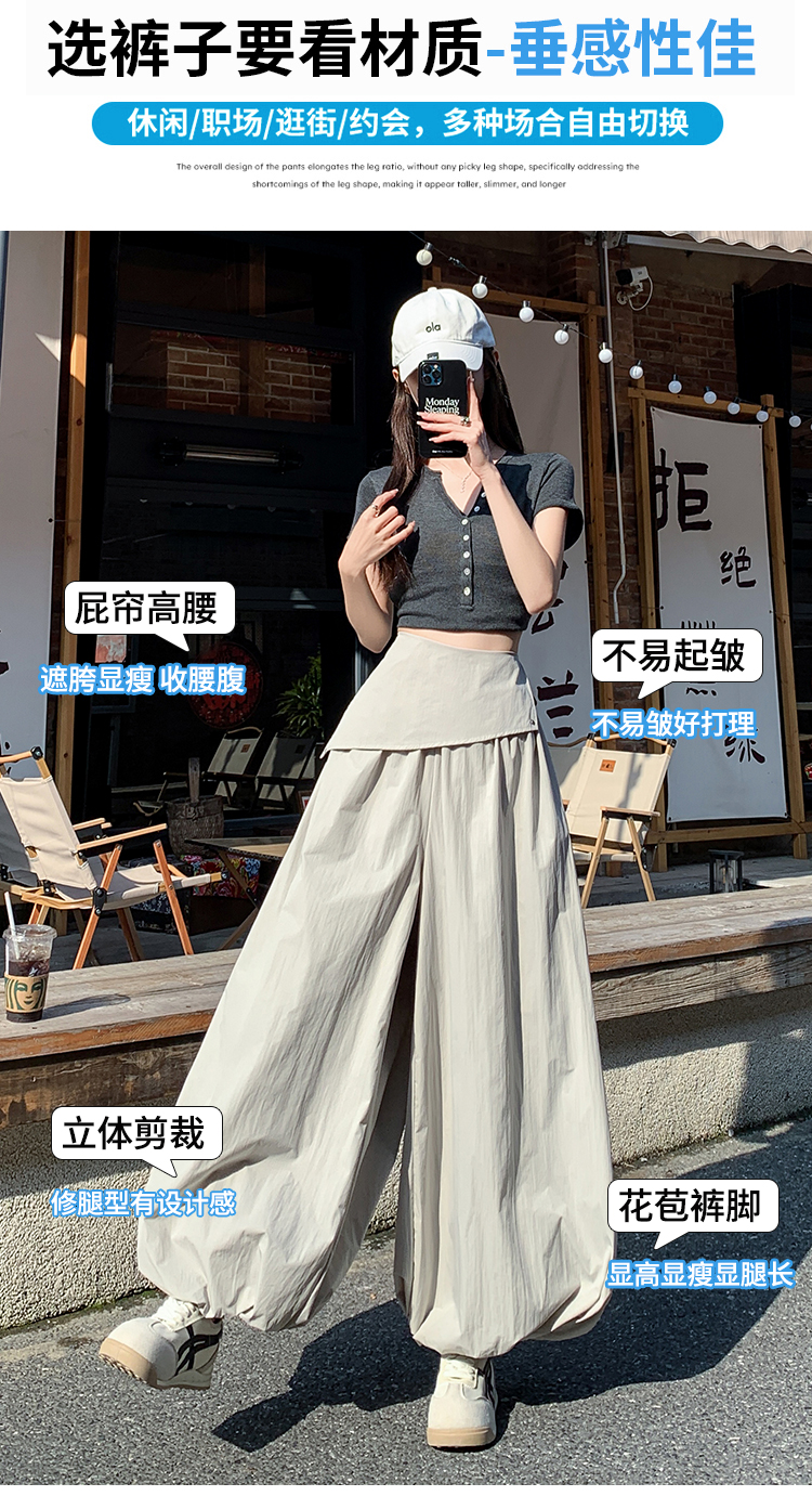 실사 2026 여름 새로운 속도 건조한 꽃밭 바지 하이웨이스트 루즈핏 도루 센스 느긋한 9 포인트 랜턴 와이드 레그 팬츠 치마 여성