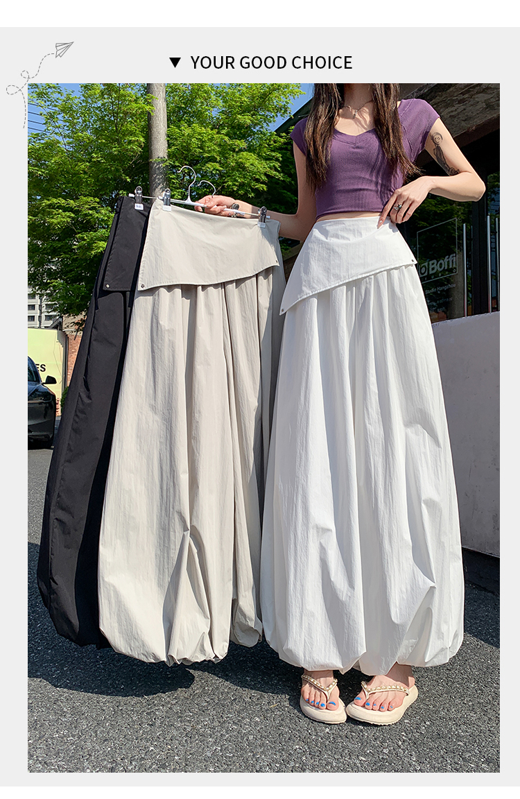 플리츠 스커트 정장 반신 스커트 여성 봄 여름 2026 새로운 배 종류 몸 표지 넓적 다리 품격 큰 진자 한 마디 롱 스커트