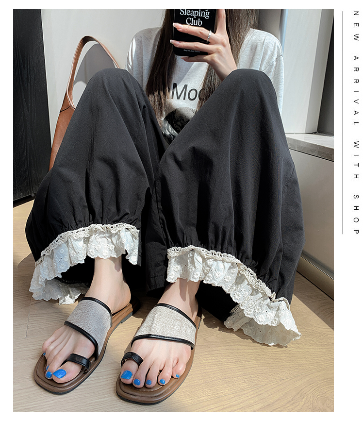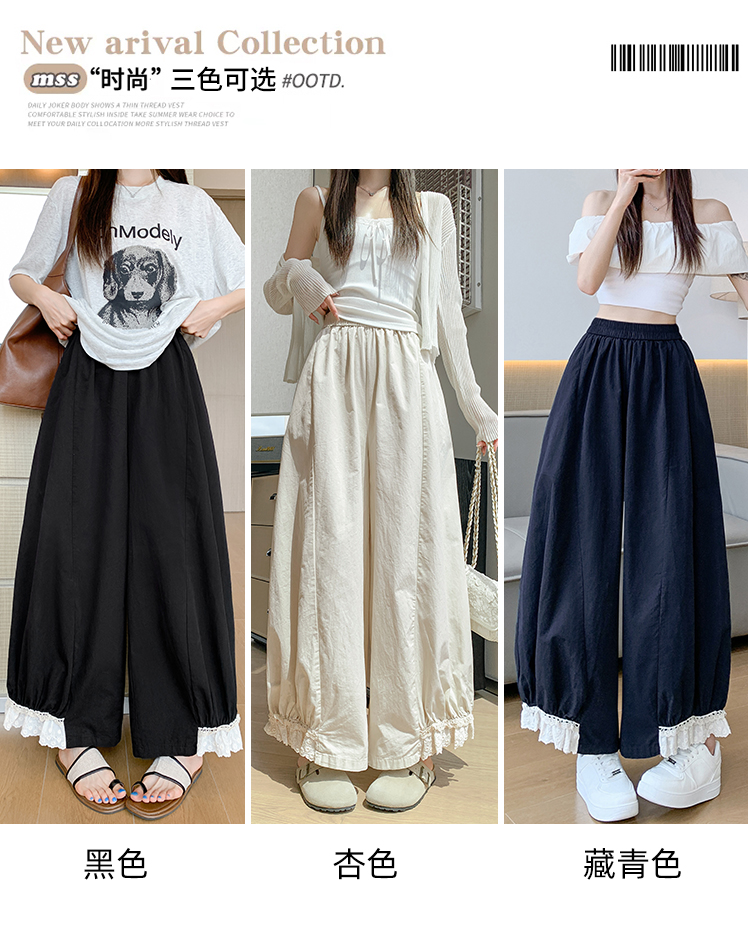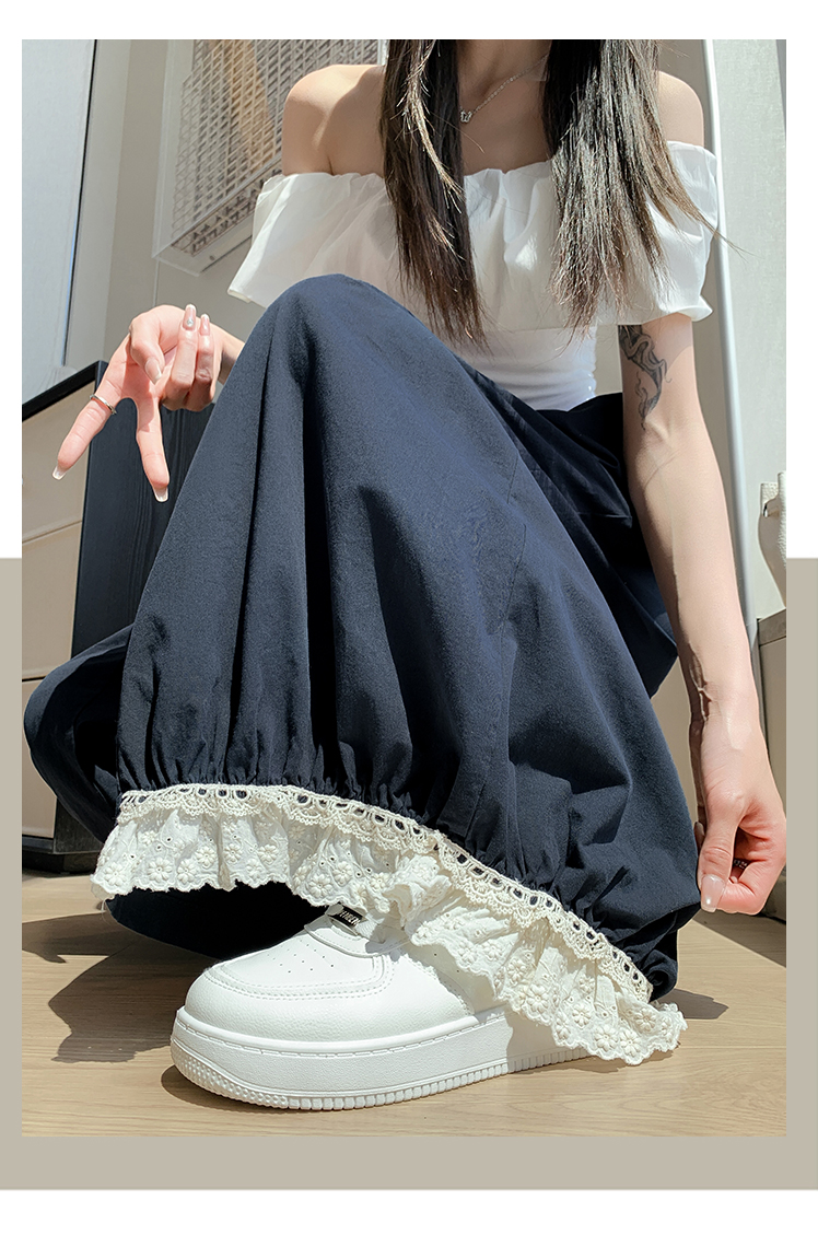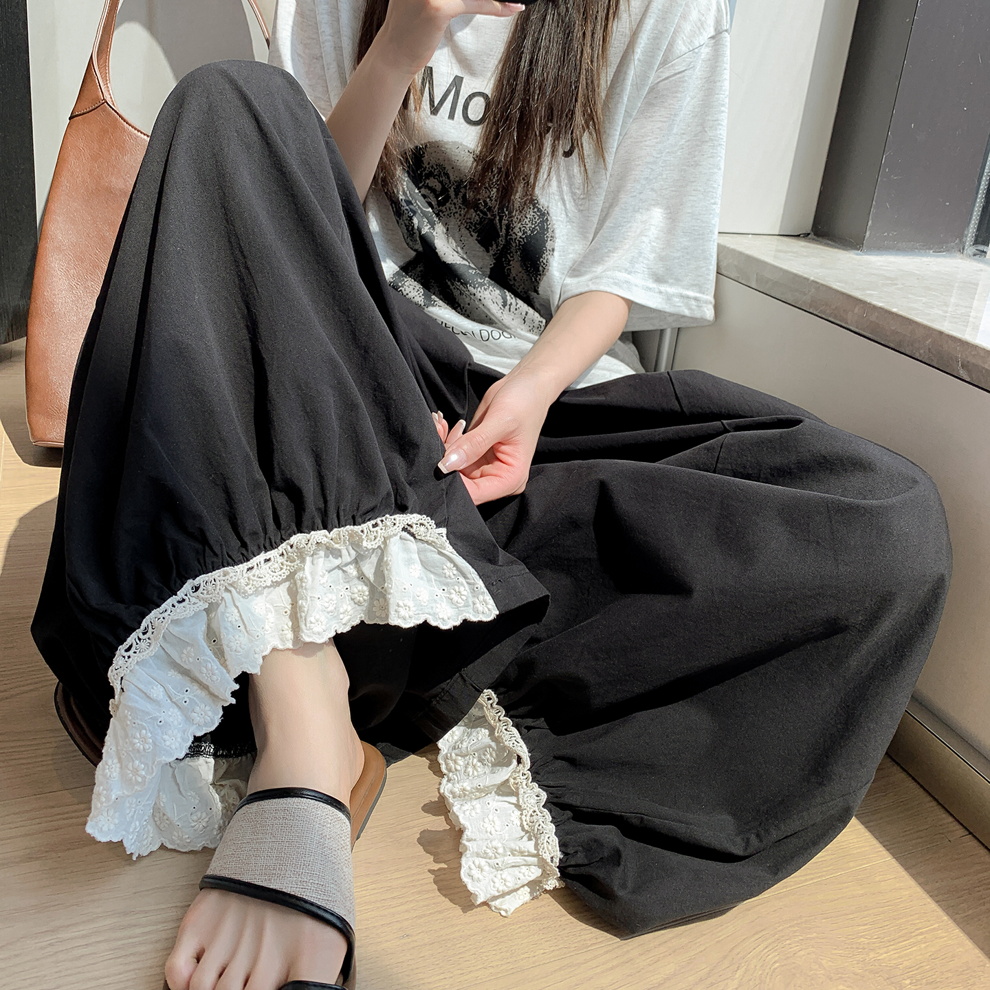 실사 2026 여름 새로운 느긋한 바람 레이스 레이스 패치워크 와이드 레그 팬츠 다용도 루즈핏 캐주얼 꽃밭 바지 여성