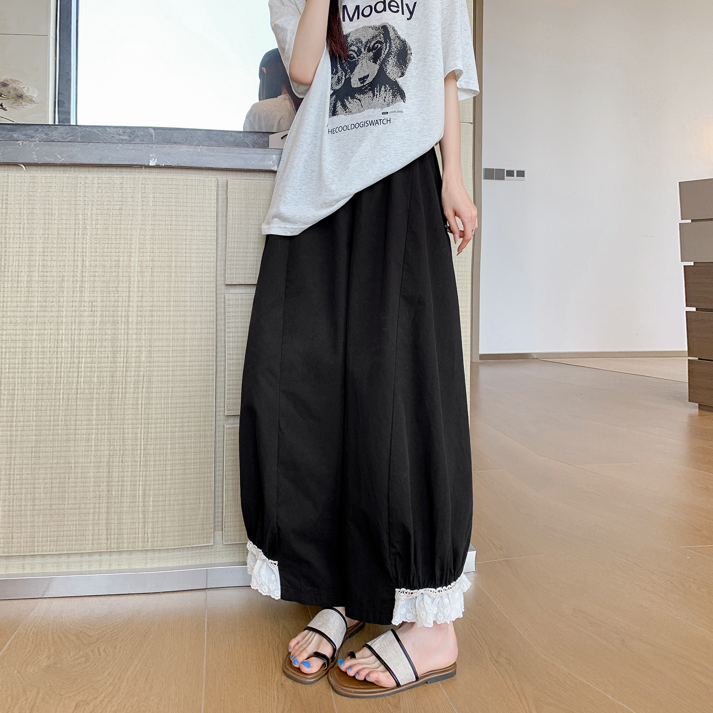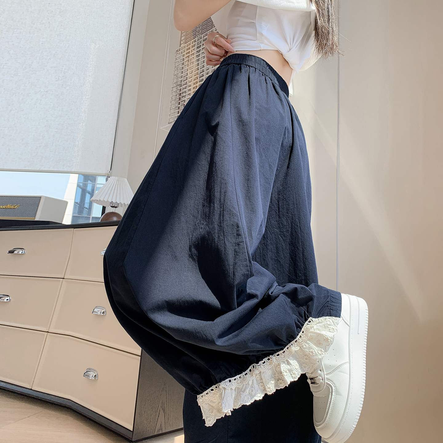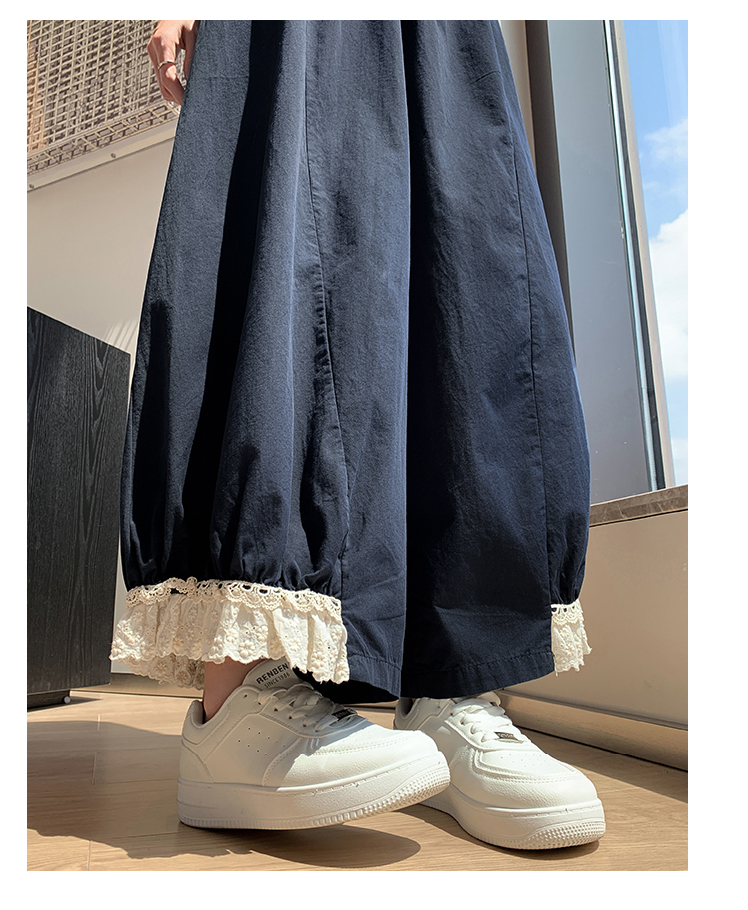 실사 2026 여름 새로운 느긋한 바람 레이스 레이스 패치워크 와이드 레그 팬츠 다용도 루즈핏 캐주얼 꽃밭 바지 여성
