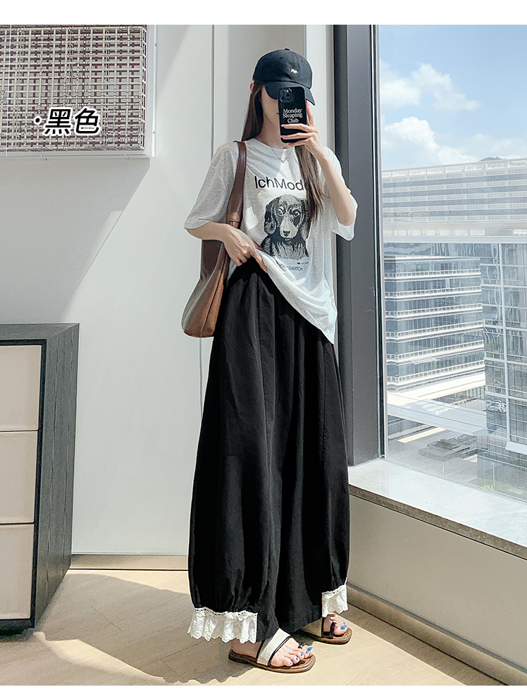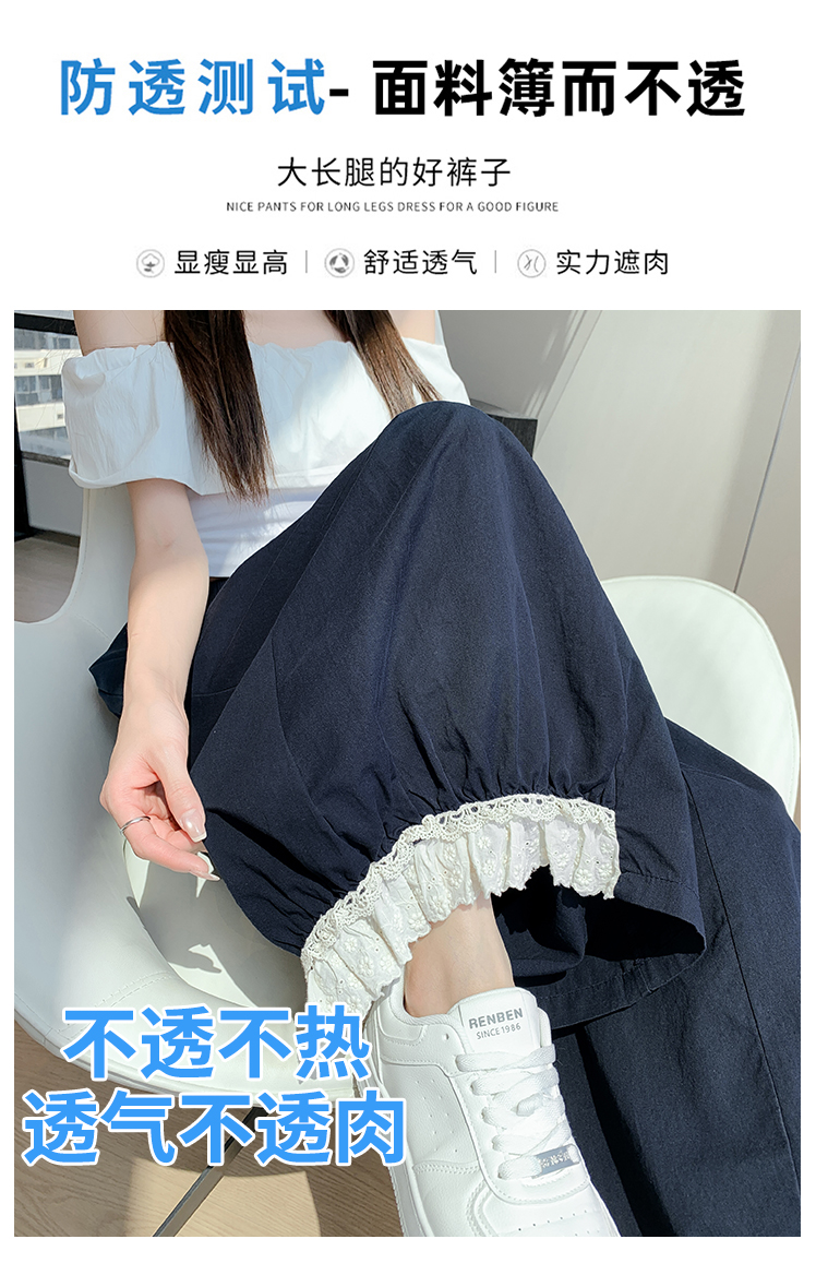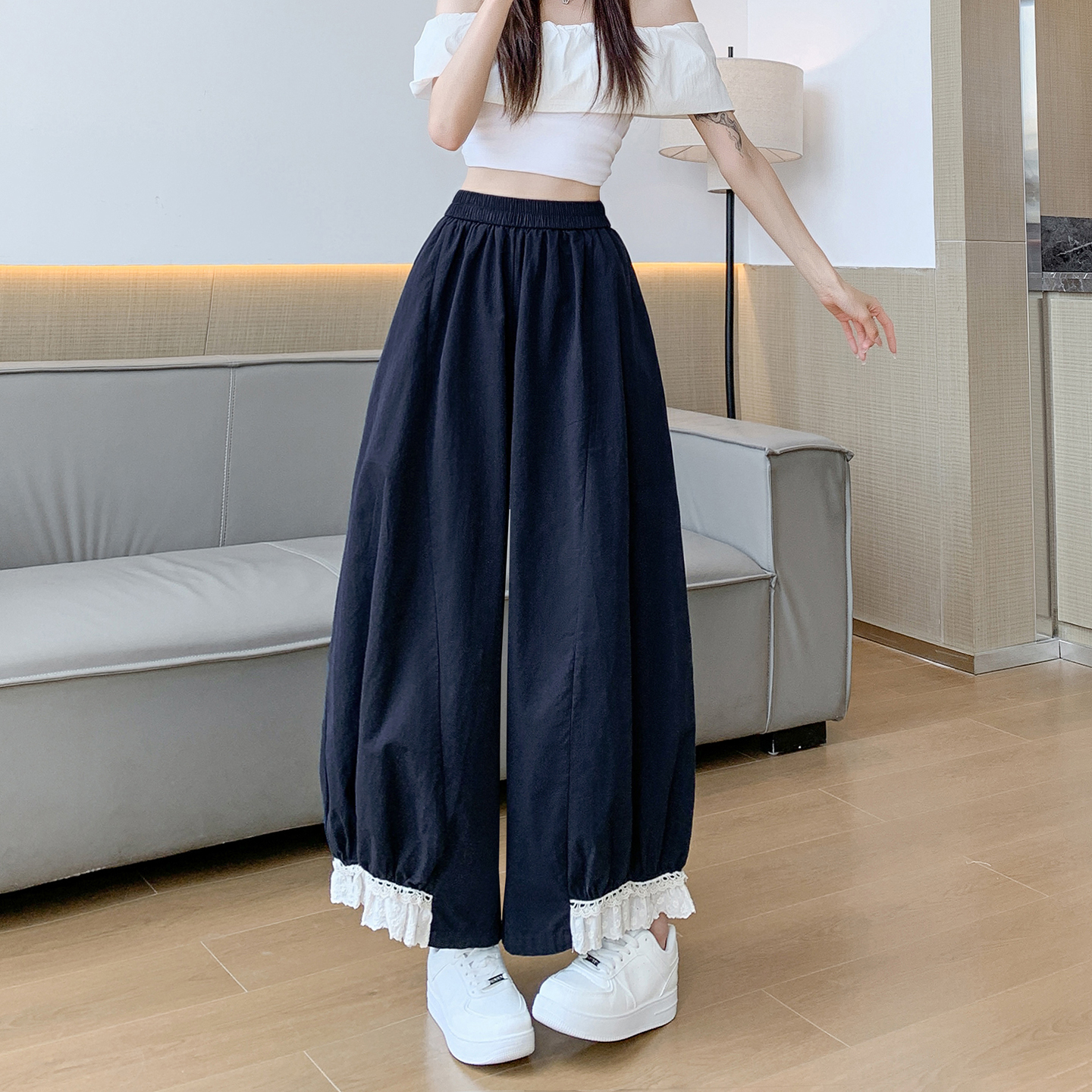 실사 2026 여름 얇은 스타일 주간 실크 면 린넨 와이드 레그 팬츠 레이스 스트랩 하이웨이스트 도루 가을 센스 바닥 청소 바지 여성