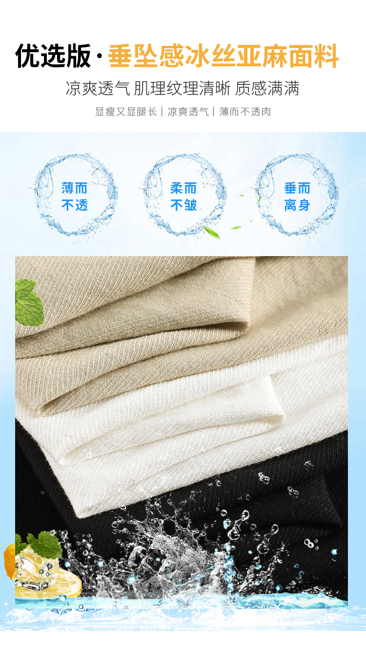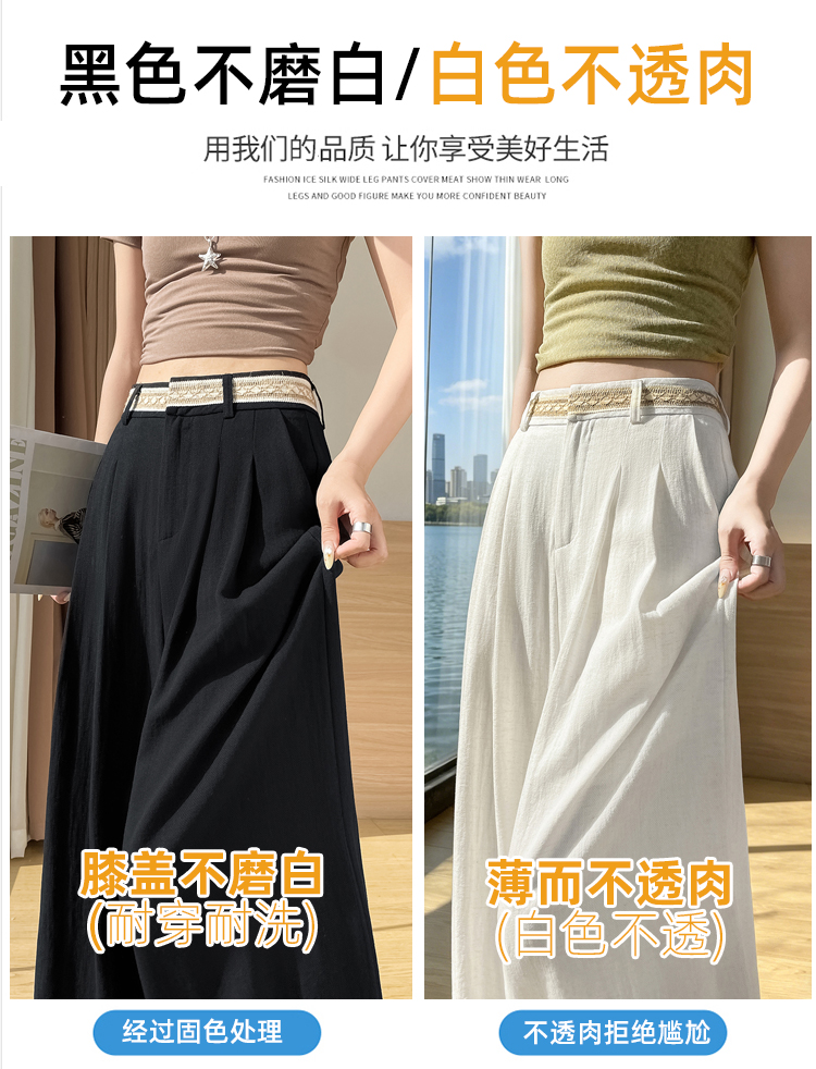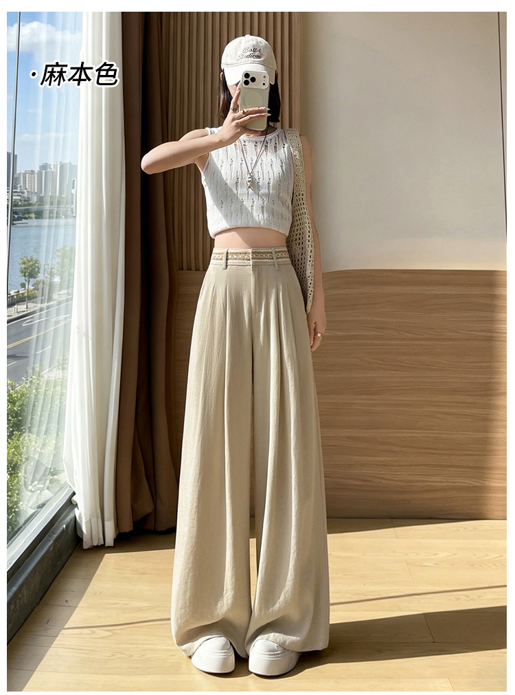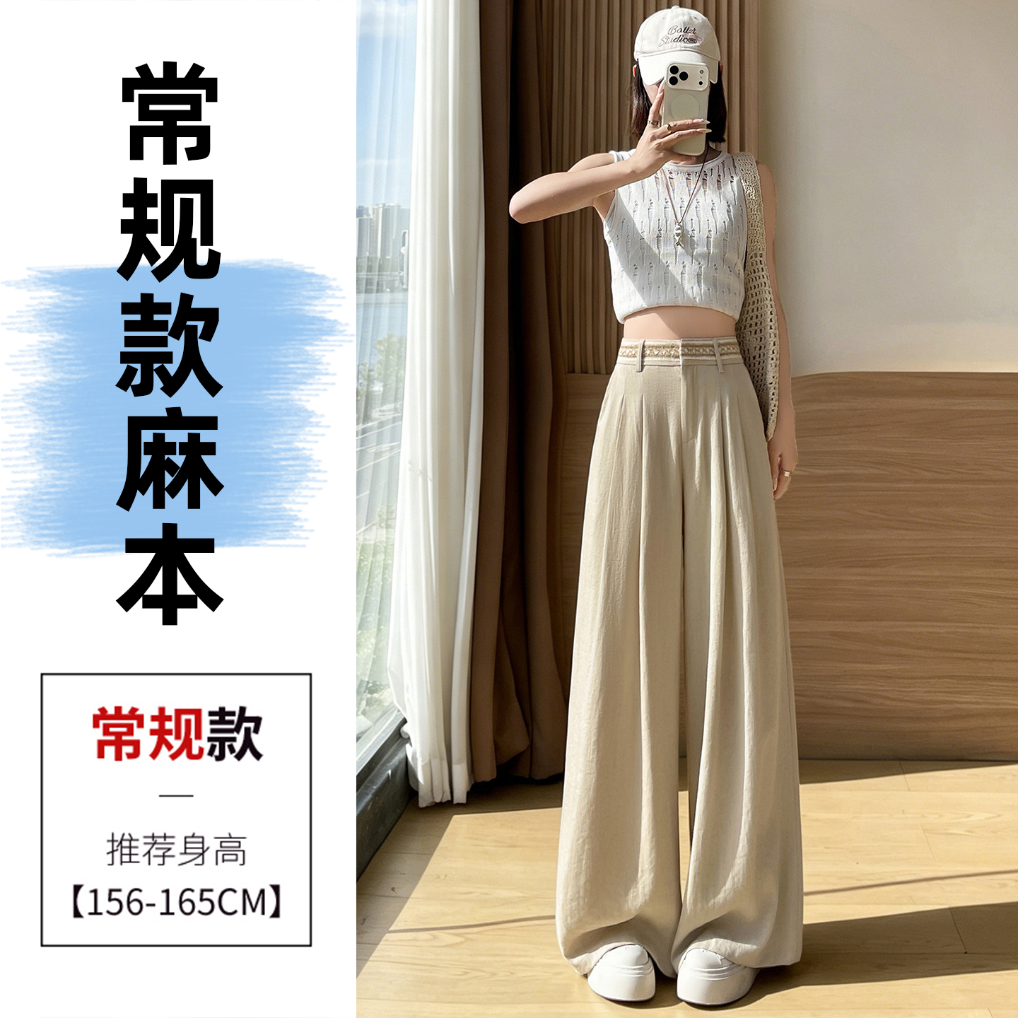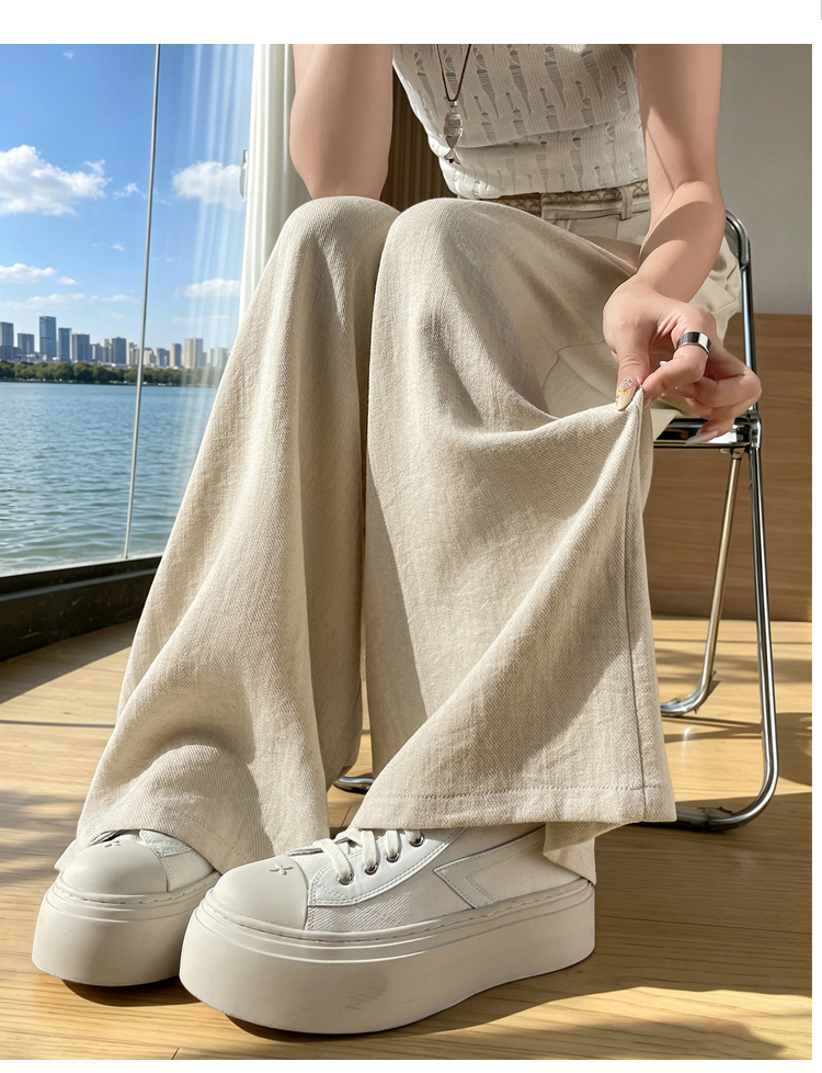 실사 얼음 실크 면 린넨 정장 와이드 레깅스 바지 여름 도루 하이웨이스트 루즈핏 느긋한 바람 캐주얼 스트레이트 바닥 청소 바지