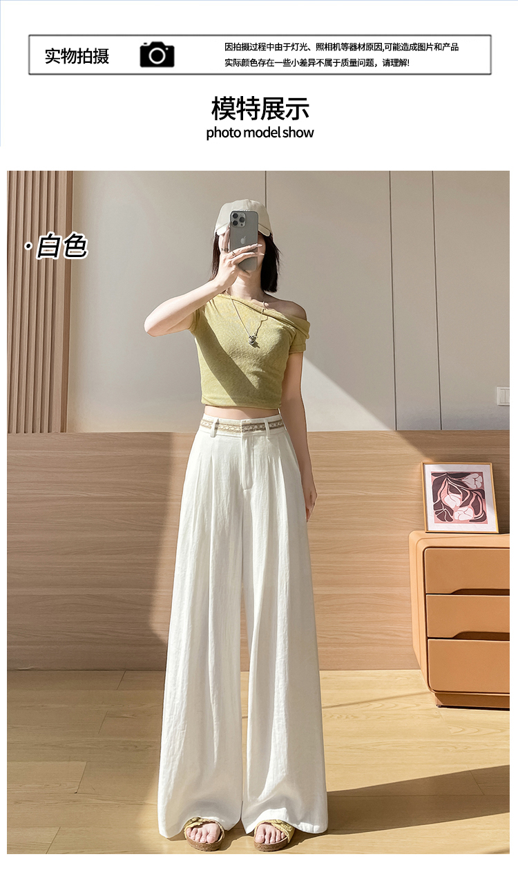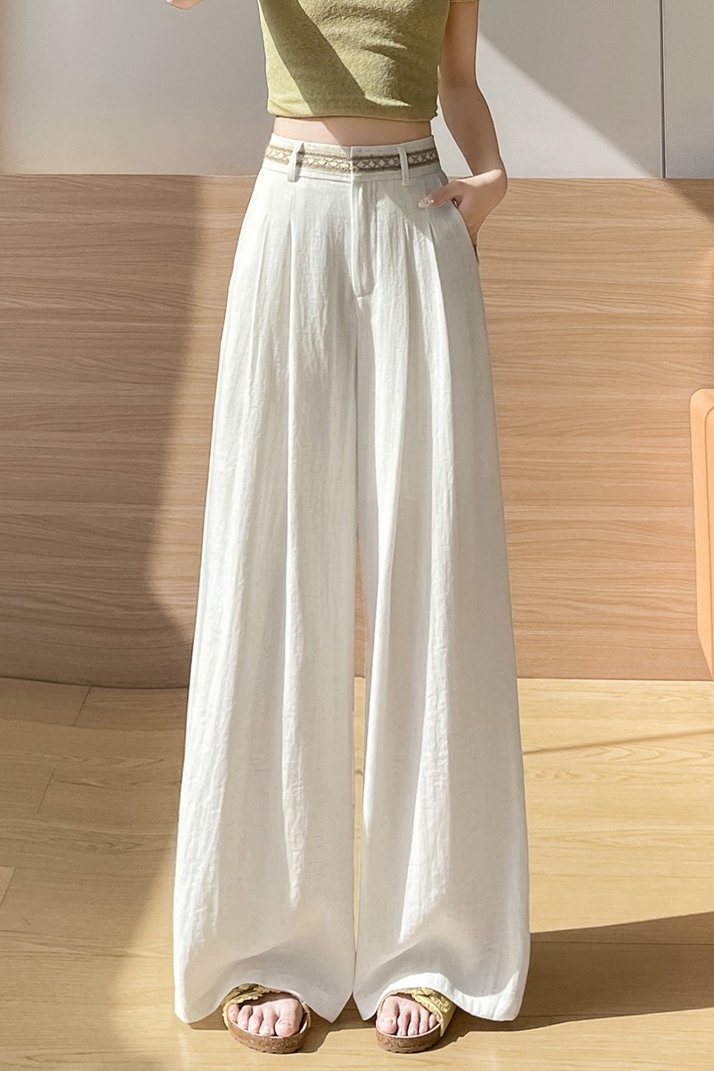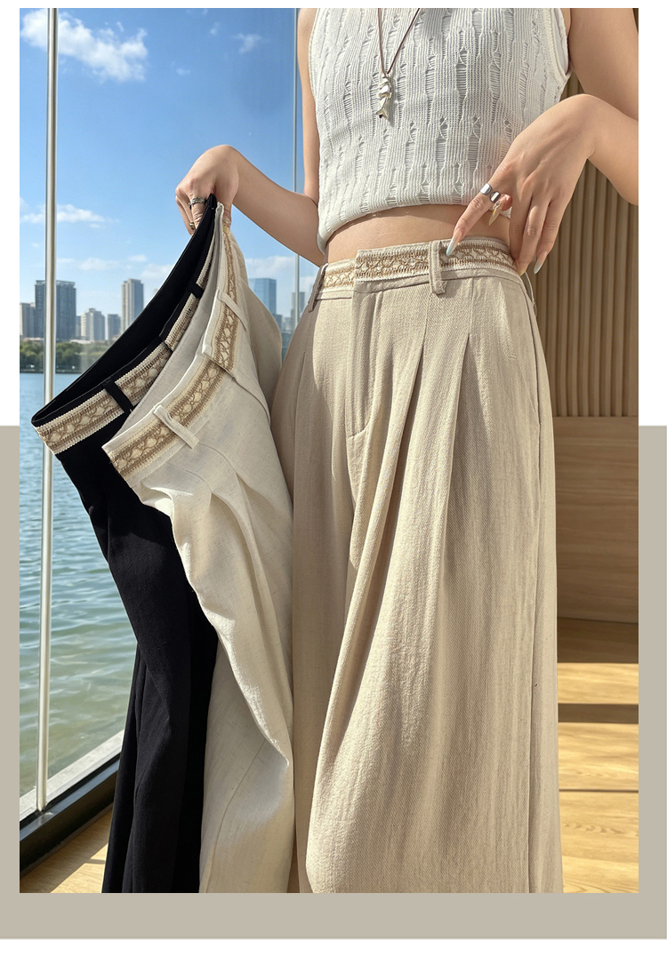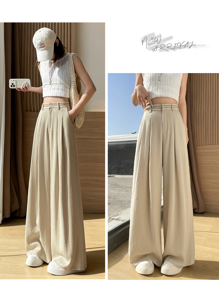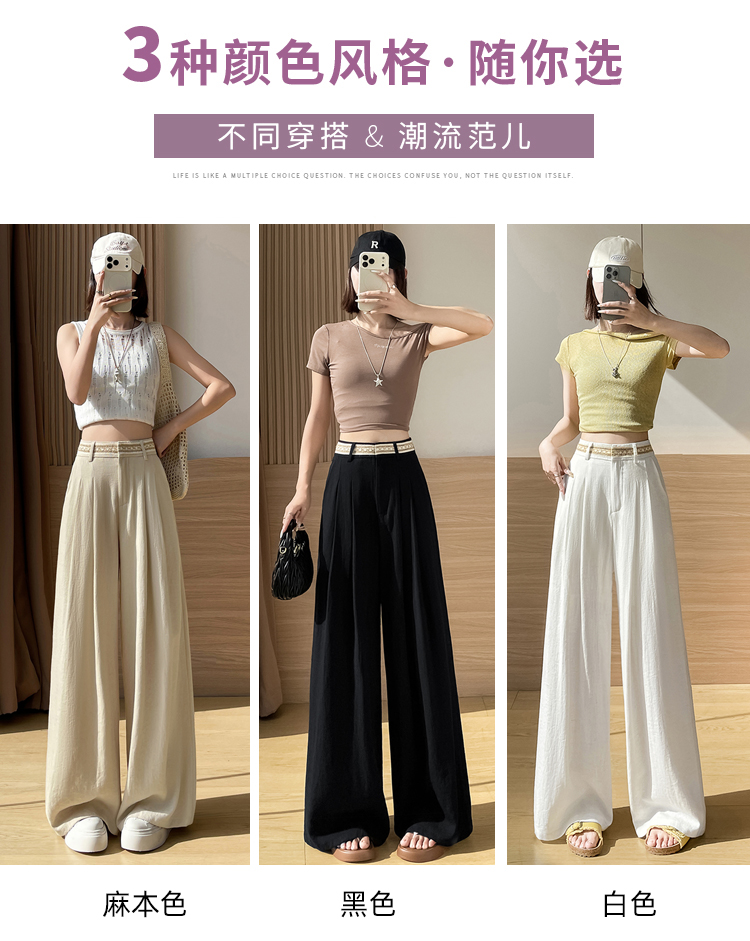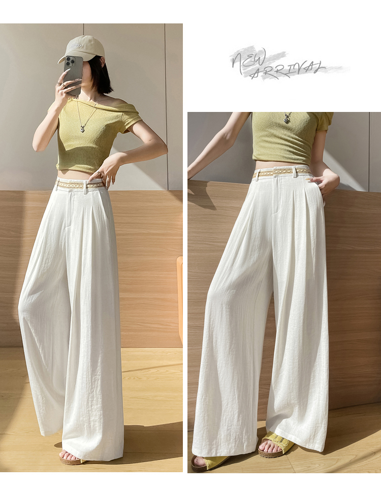 실사 얼음 실크 면 린넨 정장 와이드 레깅스 바지 여름 도루 하이웨이스트 루즈핏 느긋한 바람 캐주얼 스트레이트 바닥 청소 바지