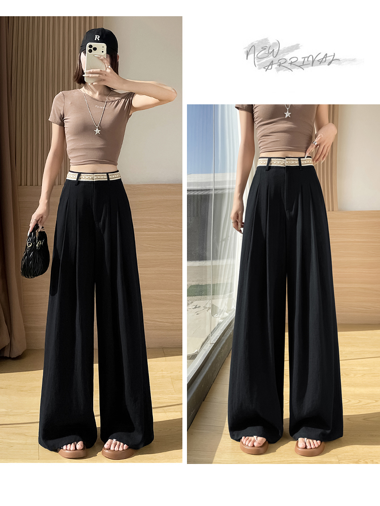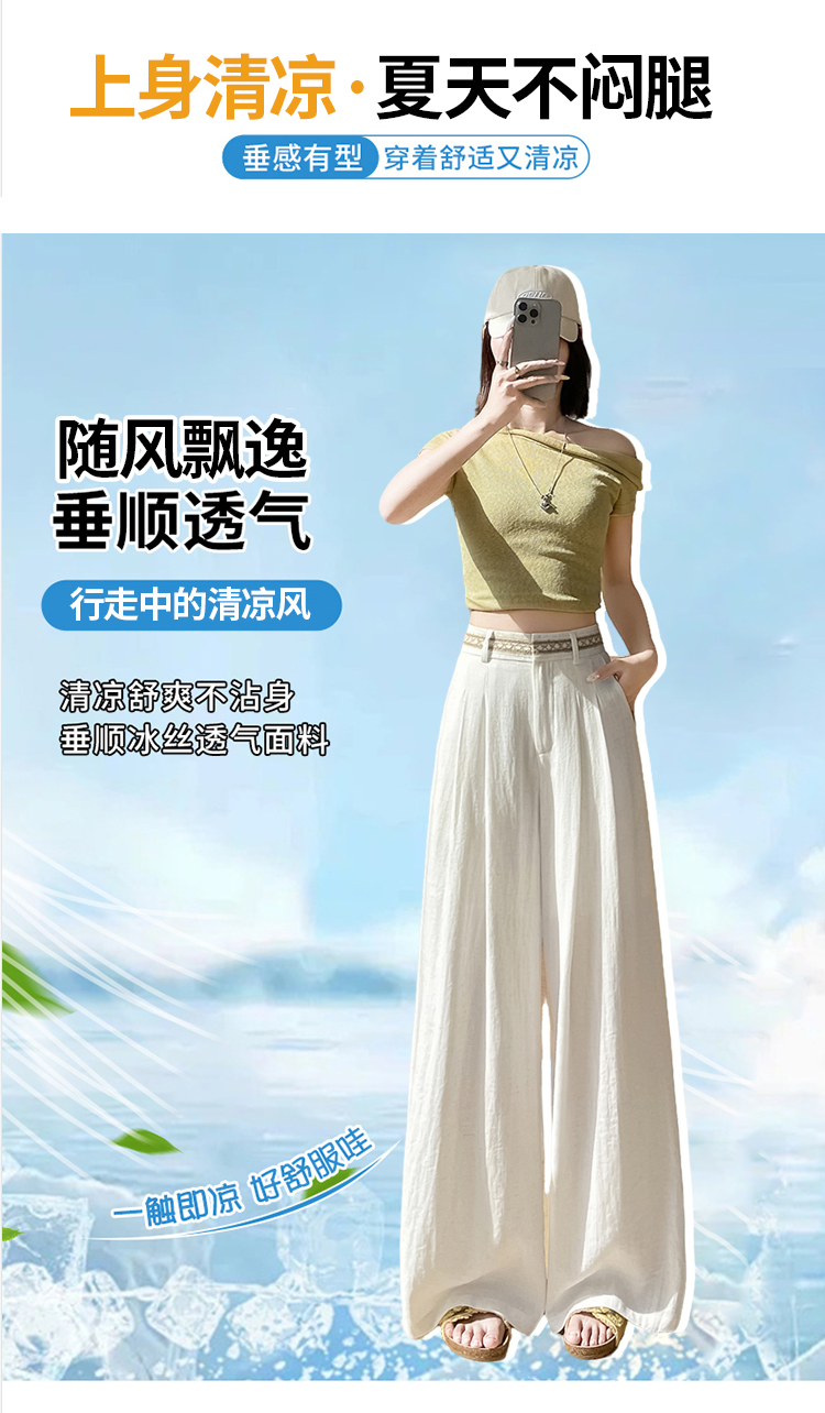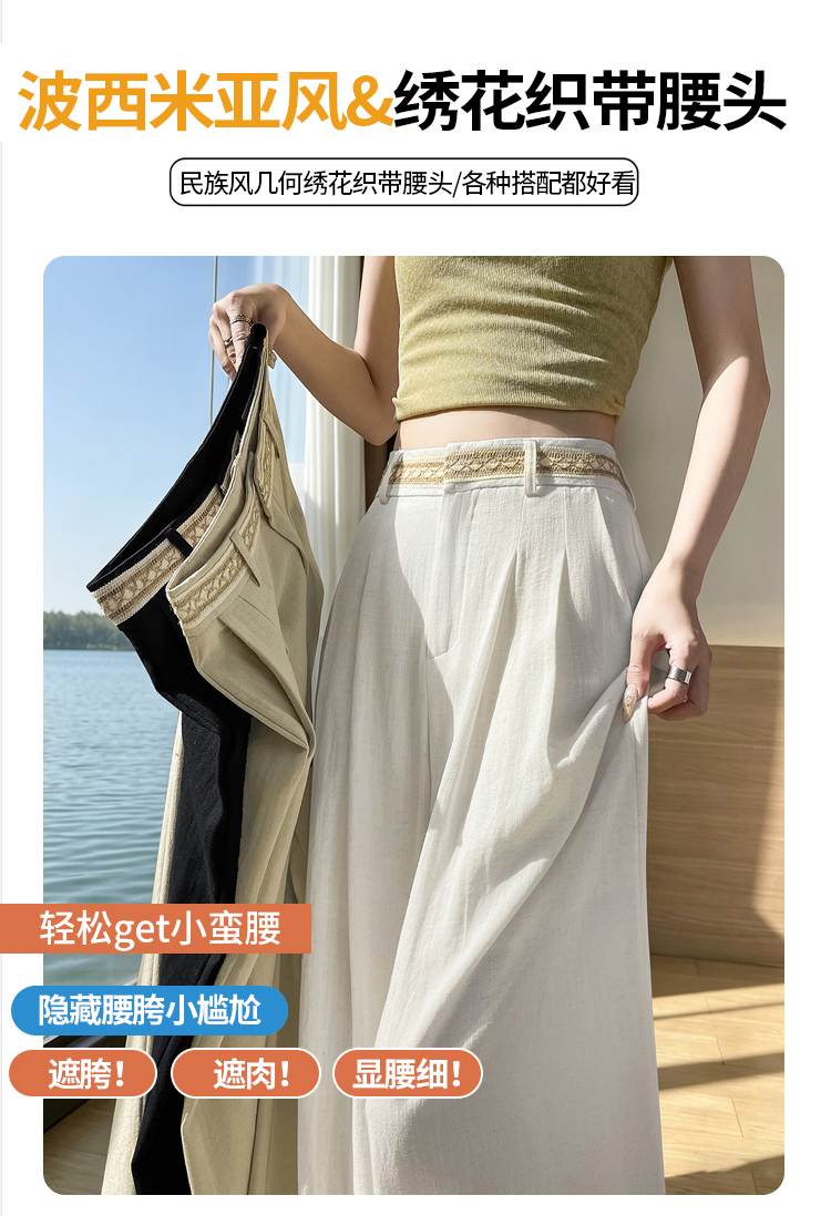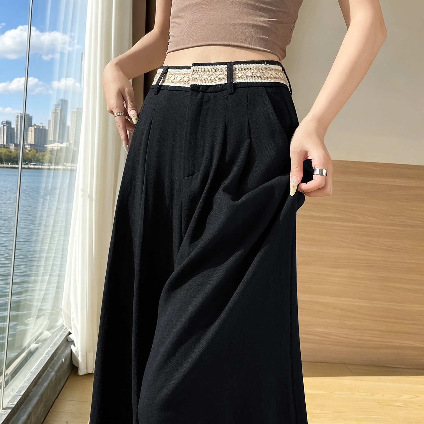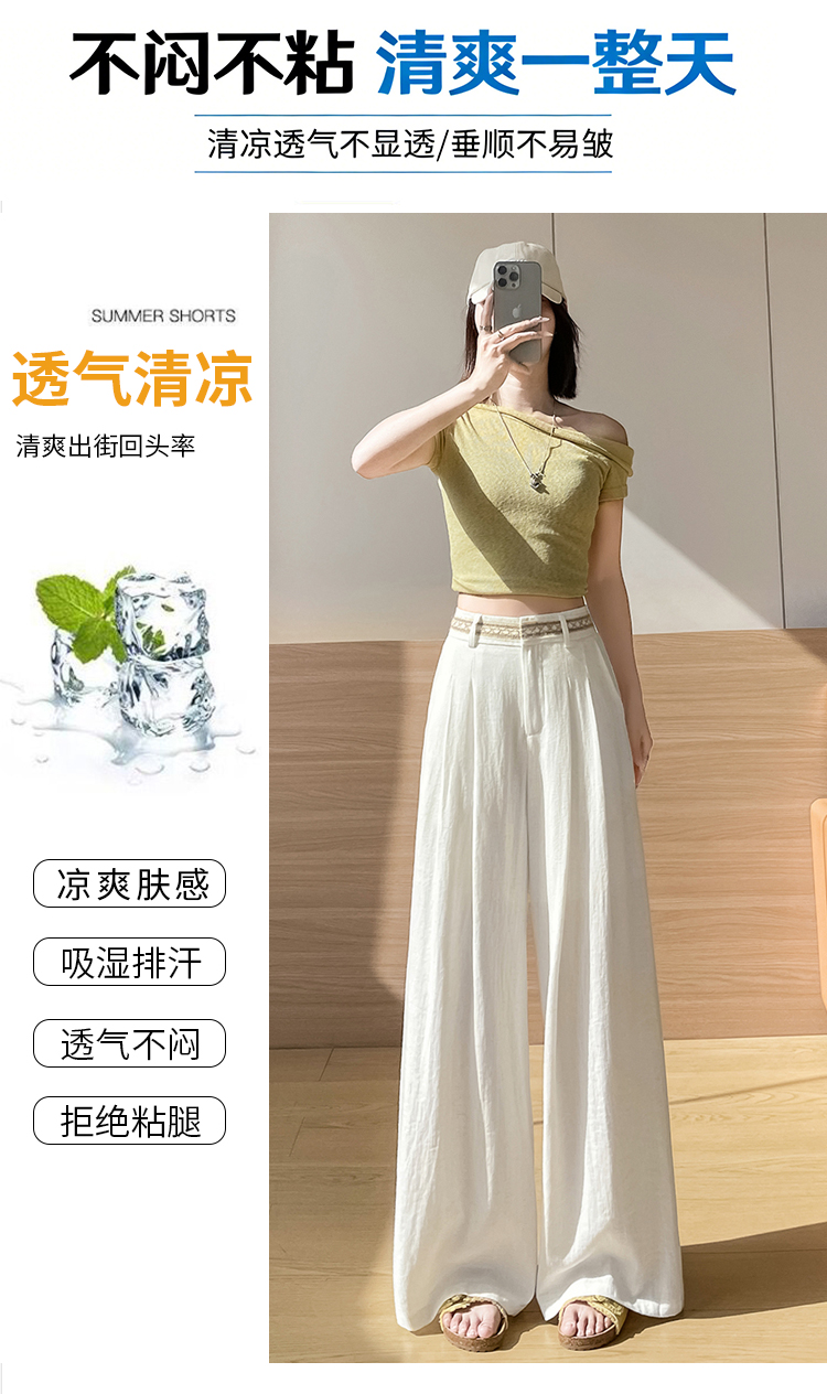 실사 얼음 실크 면 린넨 정장 와이드 레깅스 바지 여름 도루 하이웨이스트 루즈핏 느긋한 바람 캐주얼 스트레이트 바닥 청소 바지