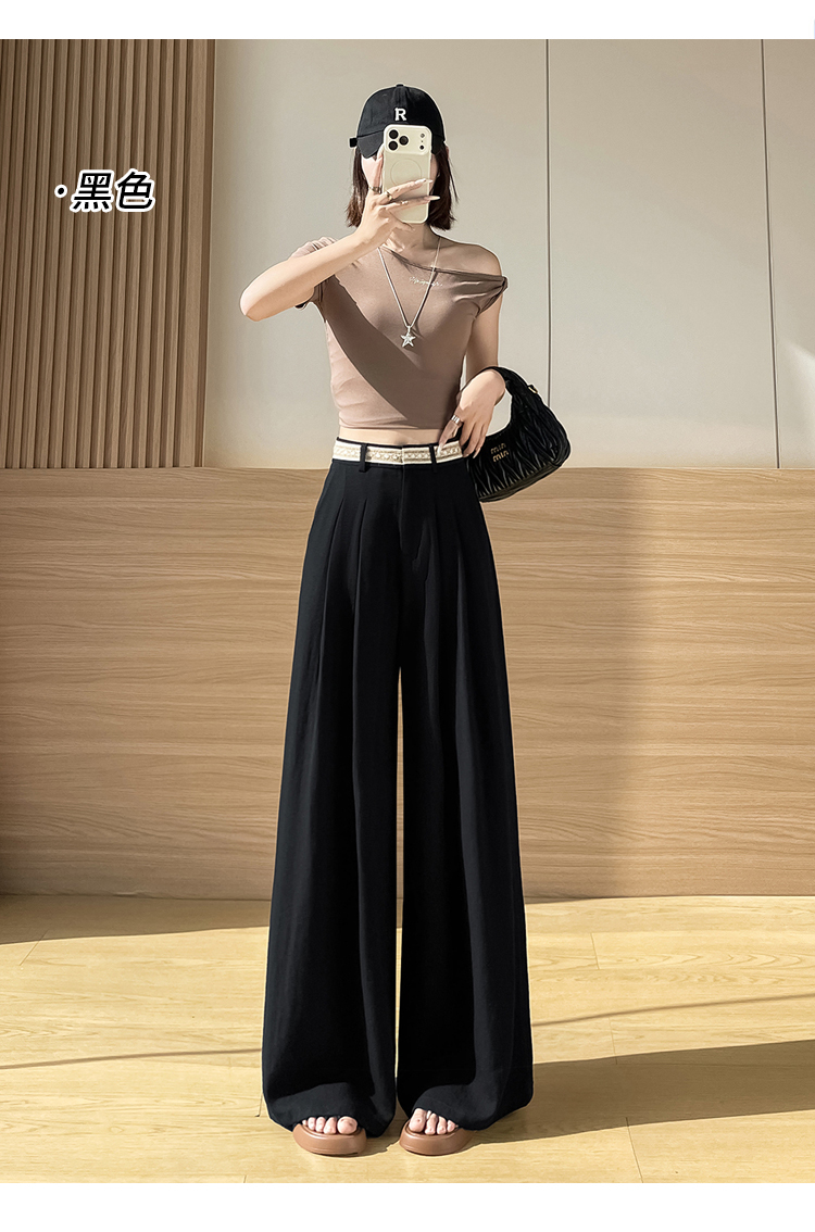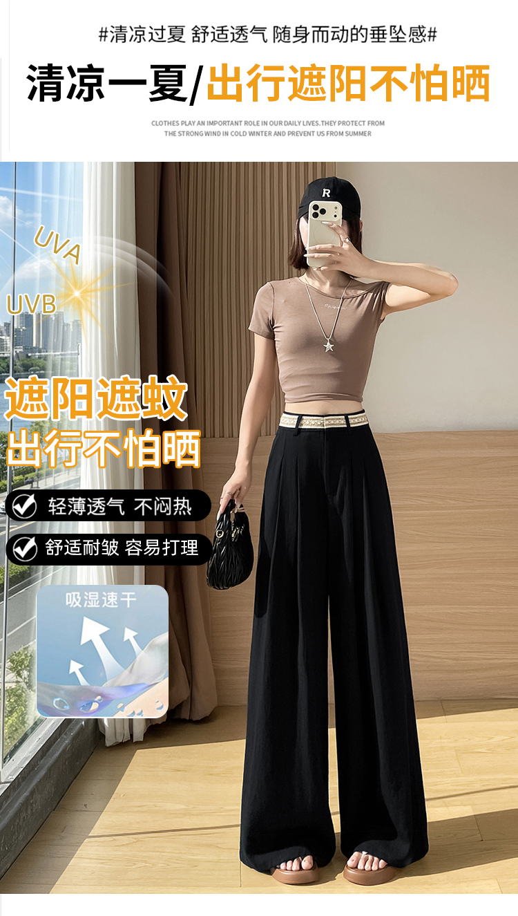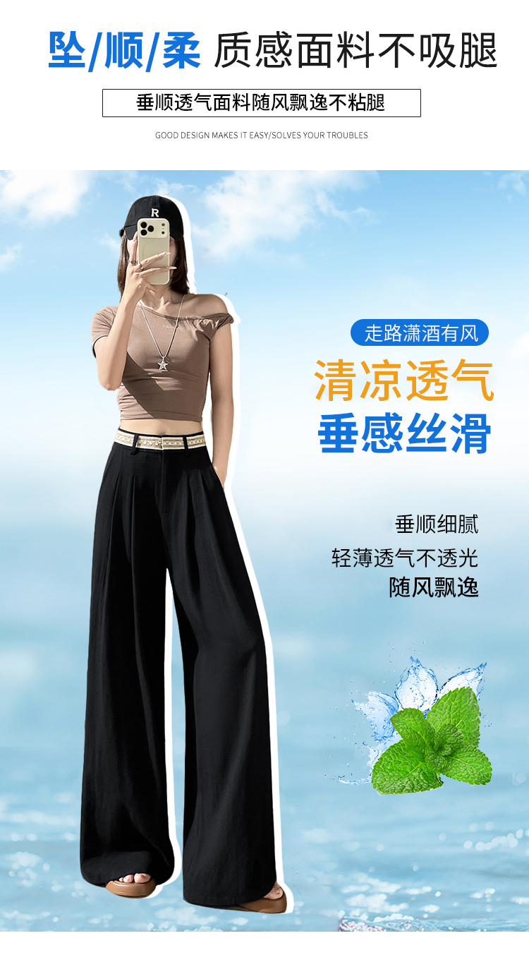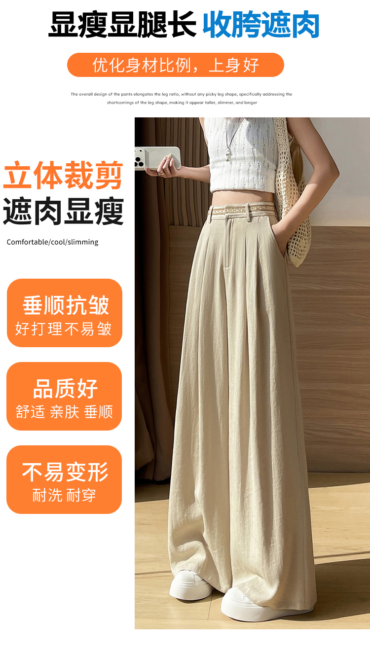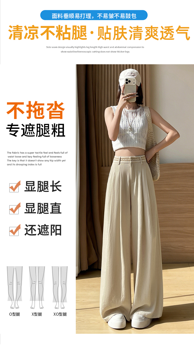 실사 아세트산 새틴 얼음 실크 정장 와이드 레깅스 바지 여름 하이웨이스트 루즈핏 도루 센스 캐주얼 스트레이트 바닥 청소 바지