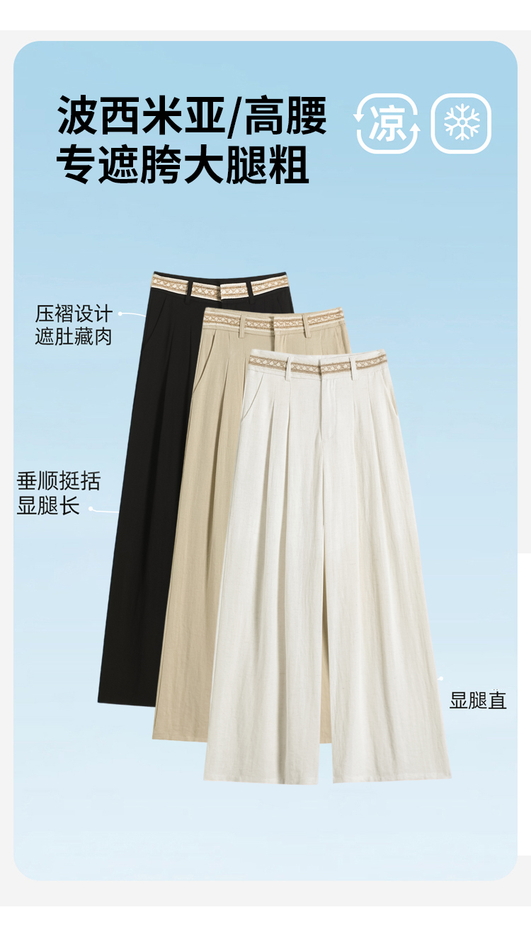 실사 얼음 실크 아마 정장 와이드 레깅스 바지 2026 여름 하이웨이스트 도루 센스 면 린넨 캐주얼 스트레이트 야마모토 바지