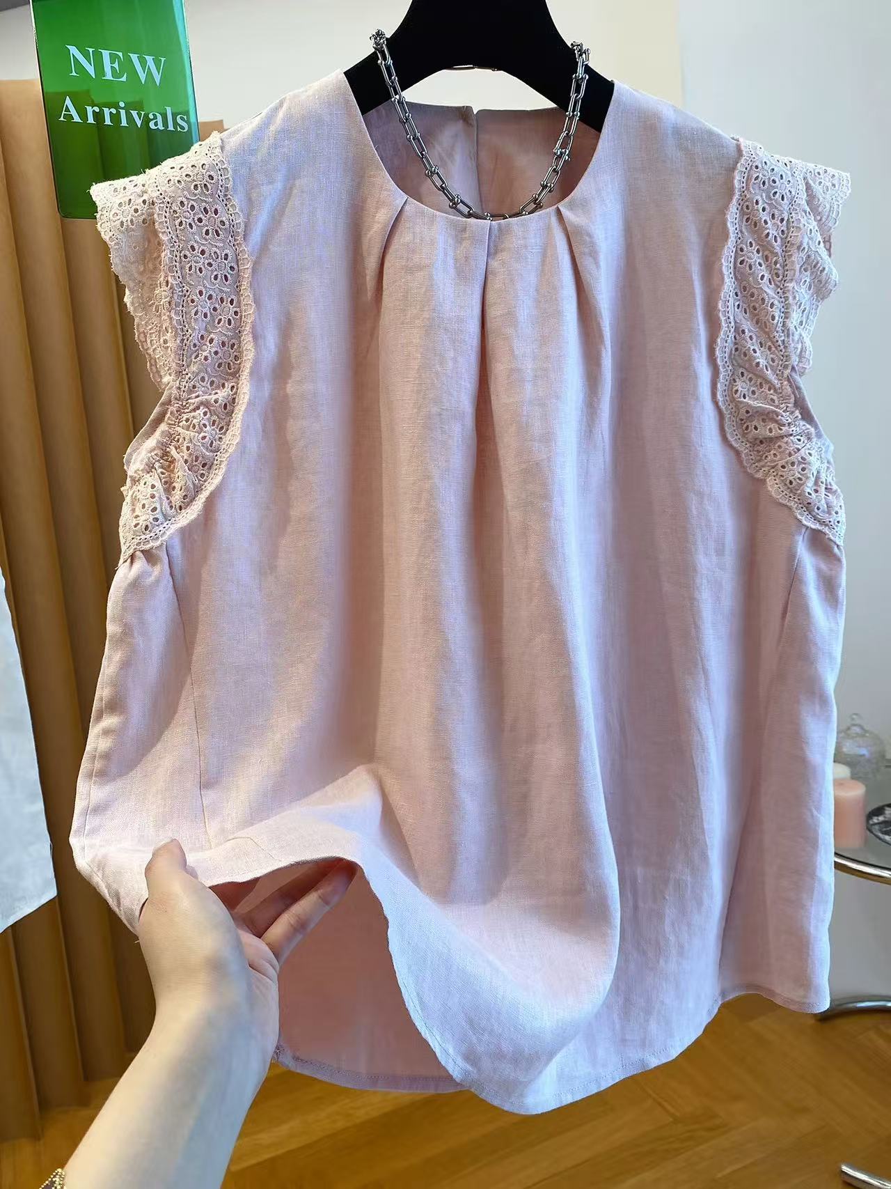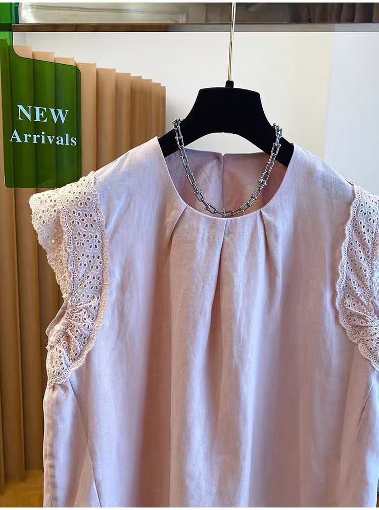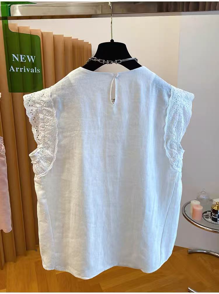 고급 센스 면 린넨 아마 민소매 맨위 여성용 짧은 소매 2026 새로운 루즈핏 Feifei 소매 프릴 작은 셔츠 맨위
