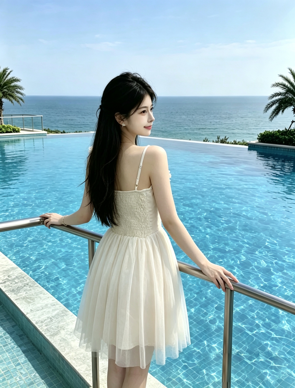실사 해변가 휴가 바람 백리스 슬립 여성 드레스 여름 새로운 망사 3 차원 나비 슬립 드레스 롱 스커트