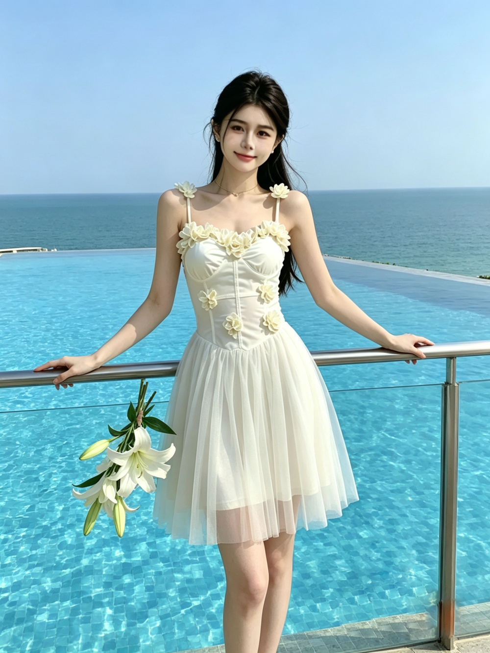 실사 핫걸 섹시함 낮은 가슴 허리 수축 큰 진자 꽃 숄더백 슬립 드레스 순수한 욕망 슬림해 보이는 연회 예복 치마