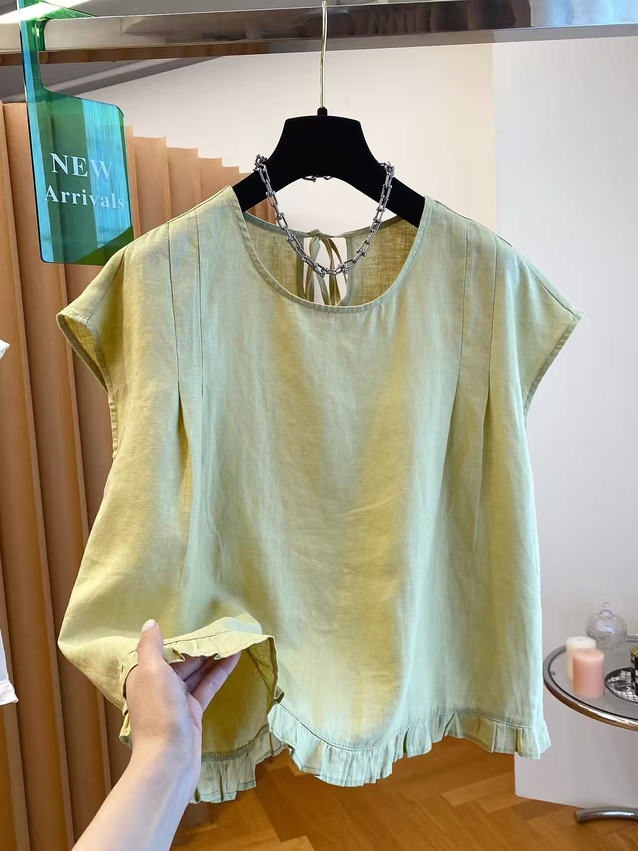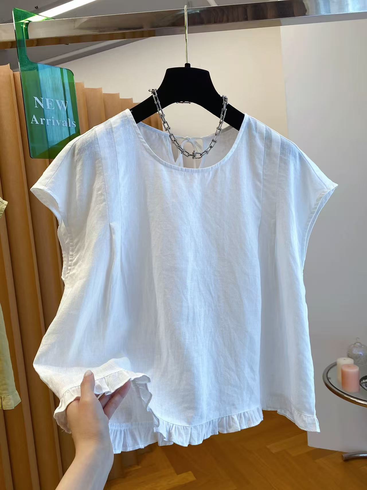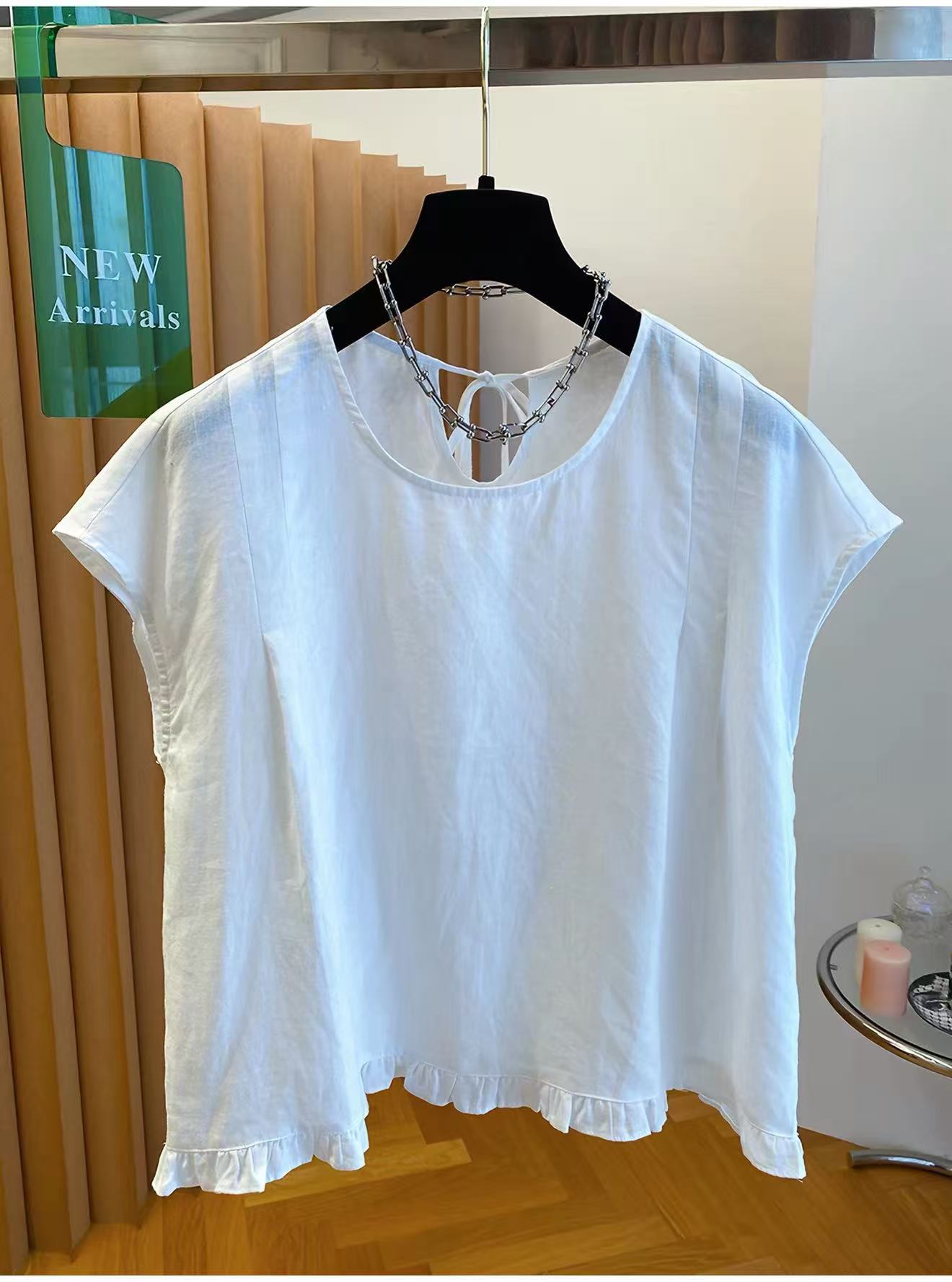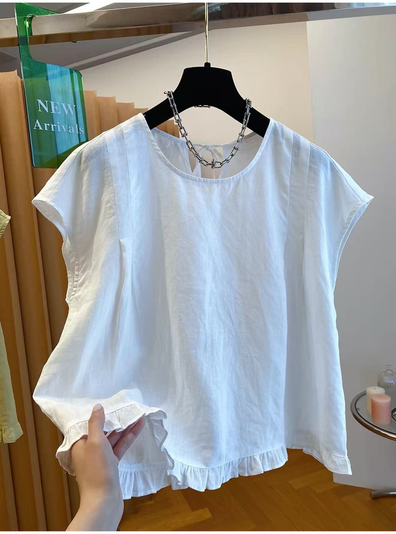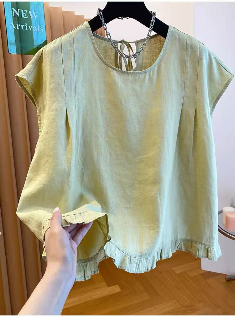 고급 센스 면 린넨 아마 민소매 맨위 여성용 짧은 소매 2026 새로운 루즈핏 Feifei 소매 프릴 작은 셔츠 맨위