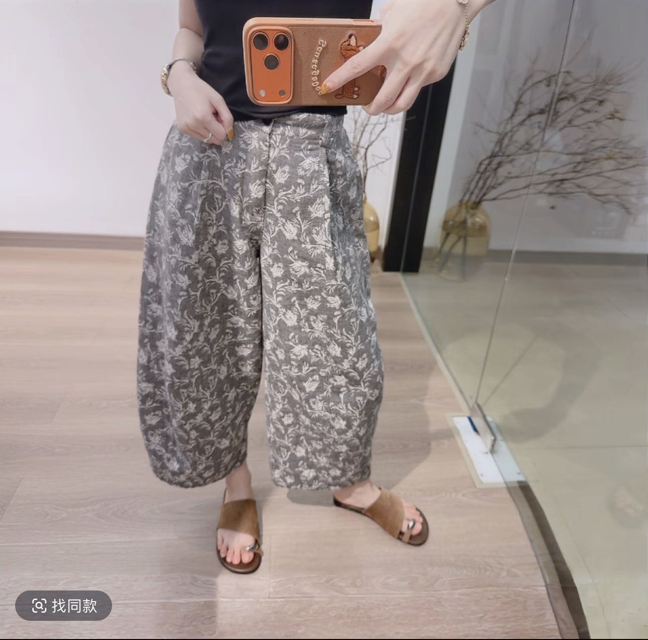 루어 루어 홈 프린트 패션 모통이 칼 바지 허리밴드 캐주얼 바지 외부 스레드 민소매 검정색 라운드 넥 뒤로 심장 안에 가져 가라.