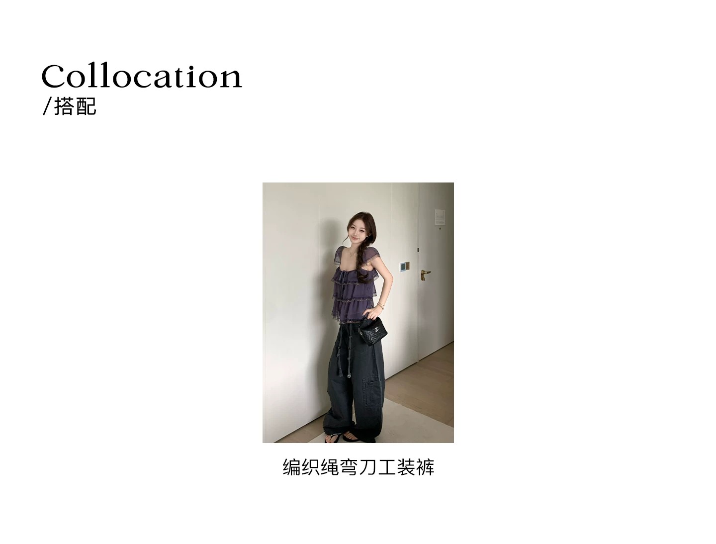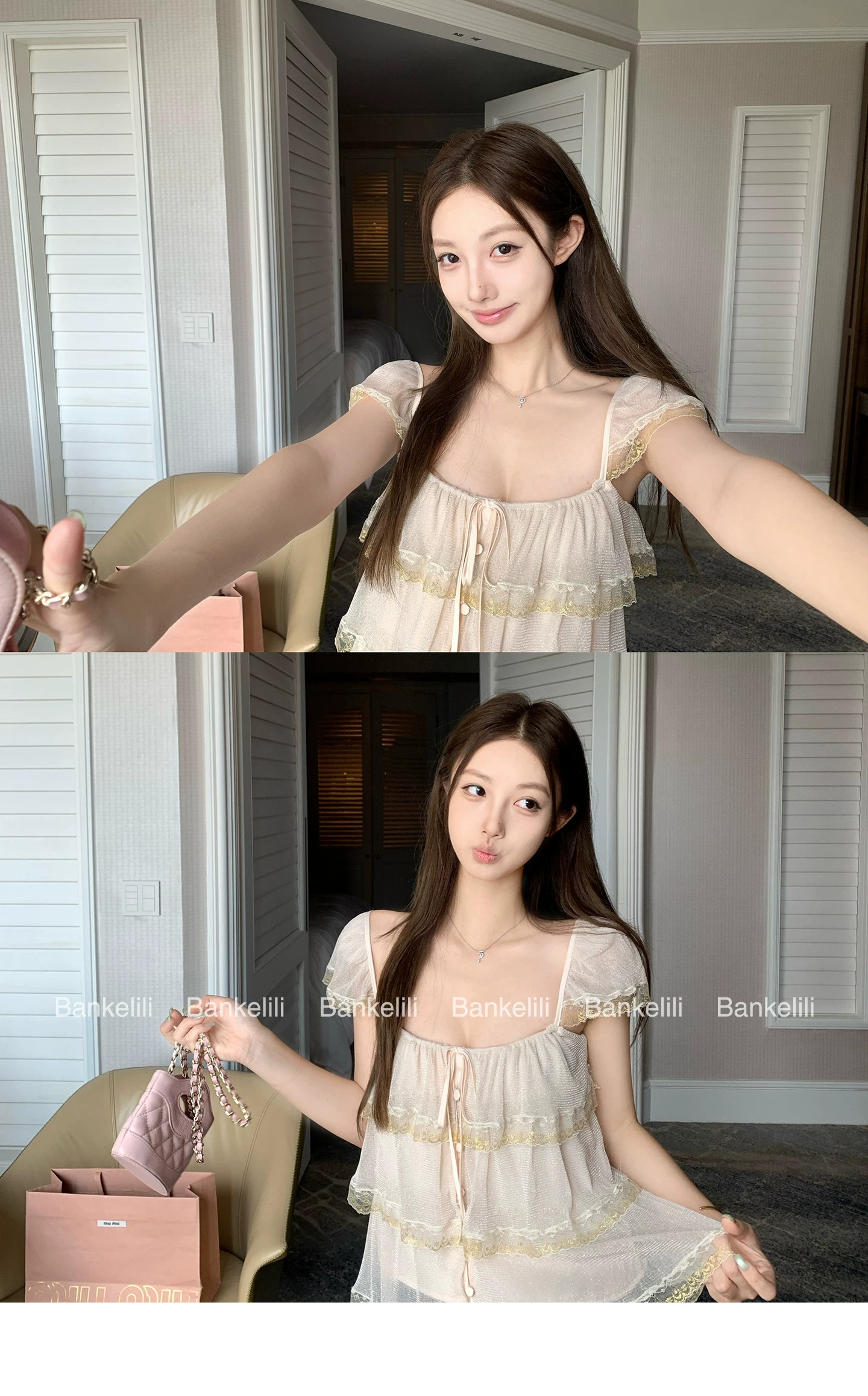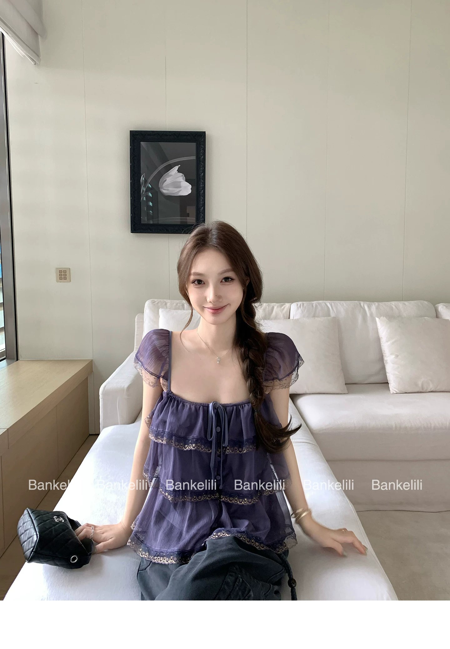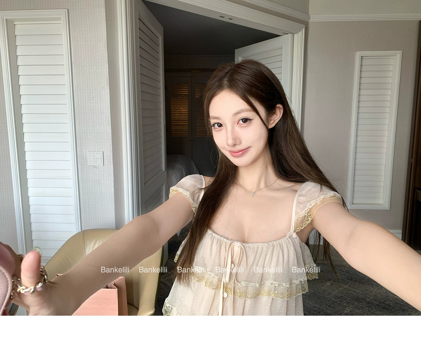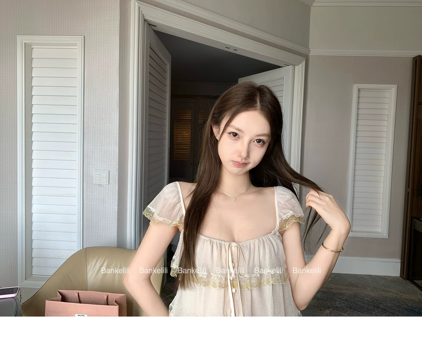 밤나무 코코아 bankelili 팬 바다 리건 프릴 레이스 계층의 감각 작은 날다 소매 광장 칼라 슬립 여성
