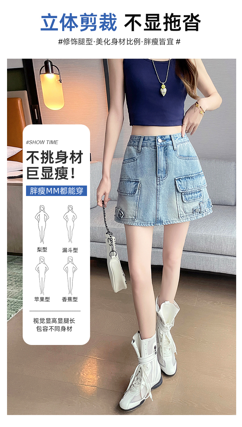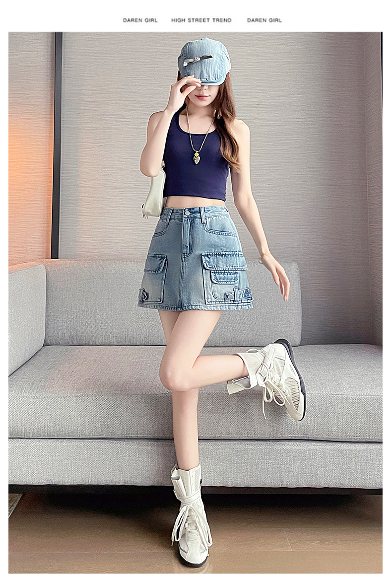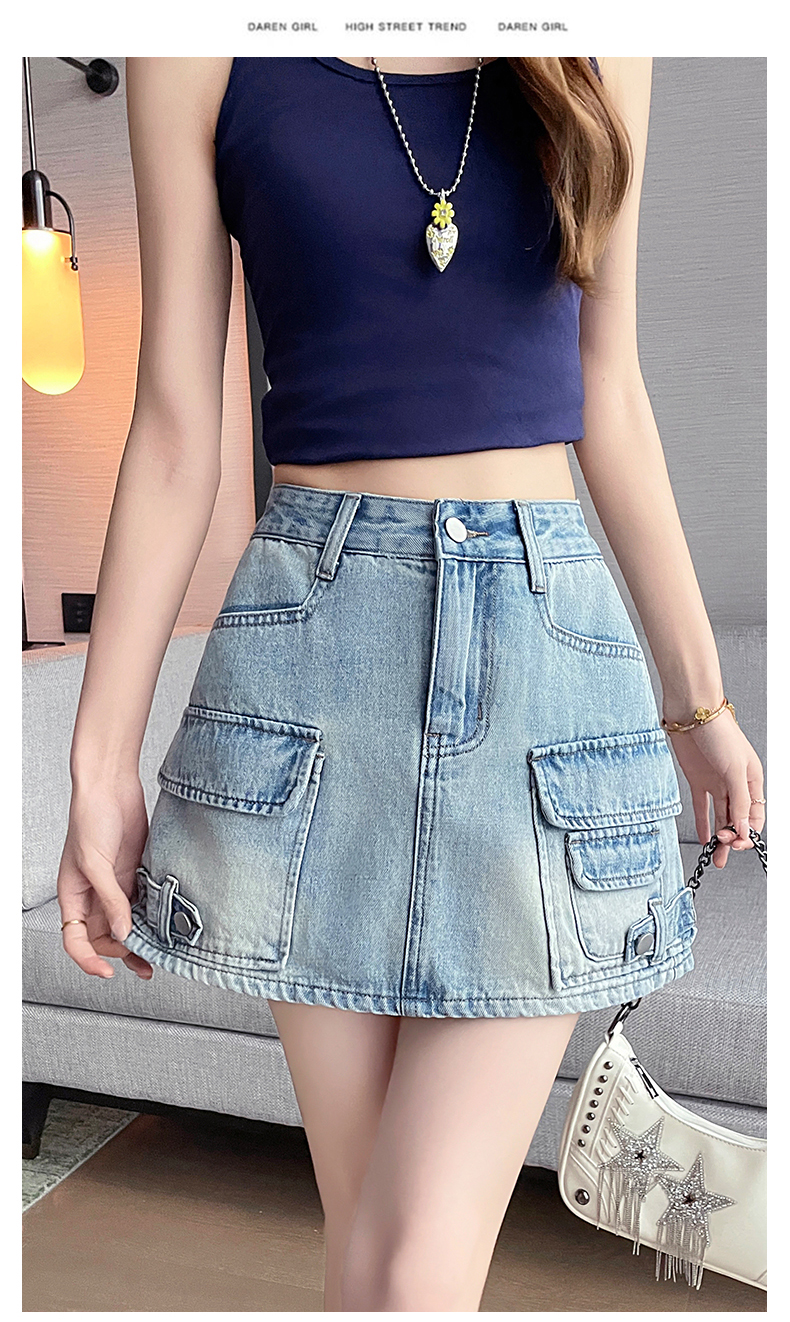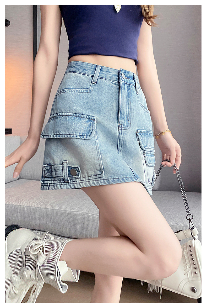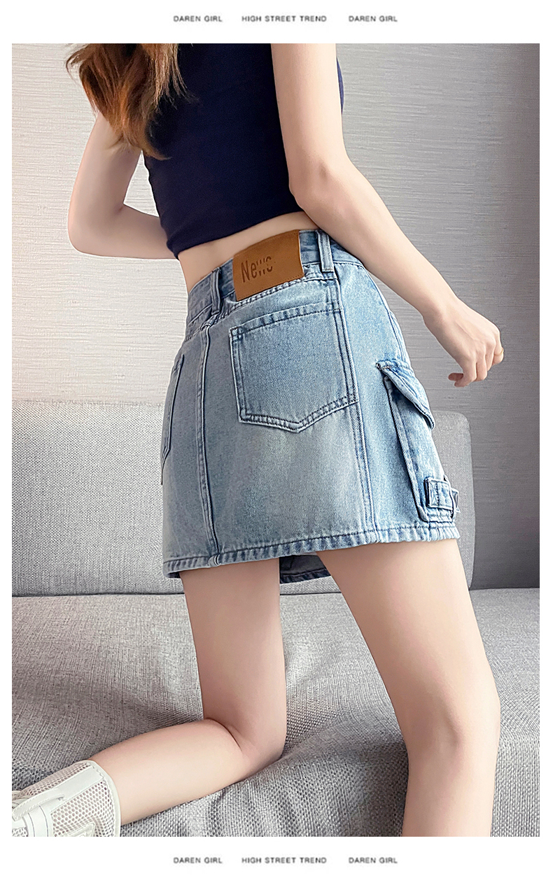 실사 레트로 워크웨어 바람 데님 미니 스커트 여성 여름 새로운 인기 하이웨이스트 핫걸 한 마디 타이트 스커트 반신 스커트 여성