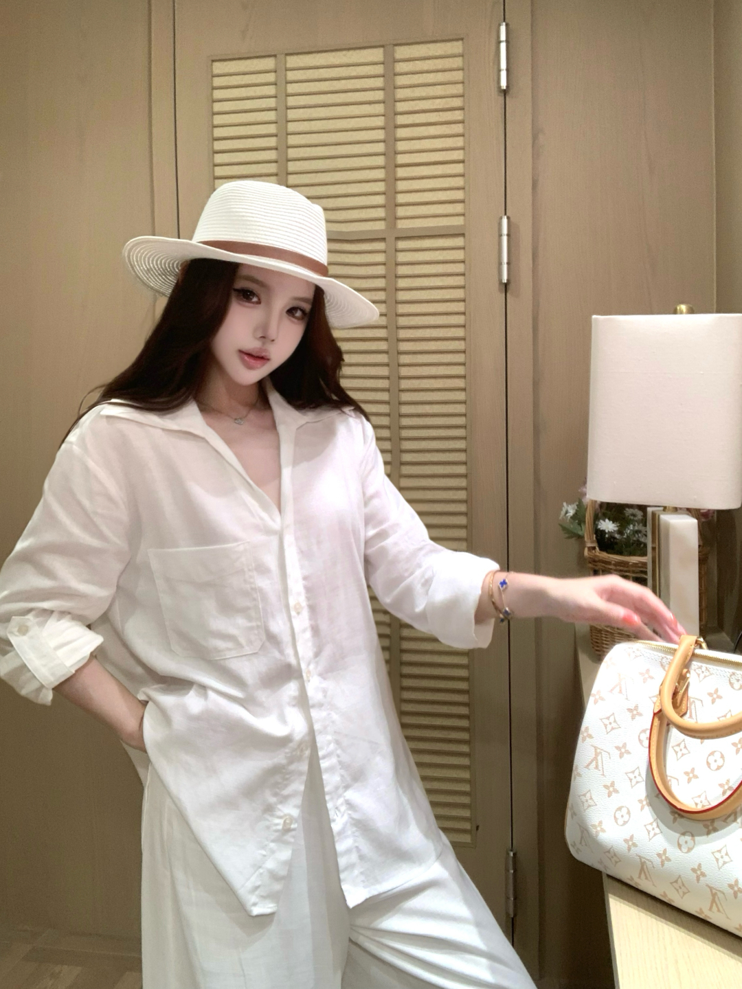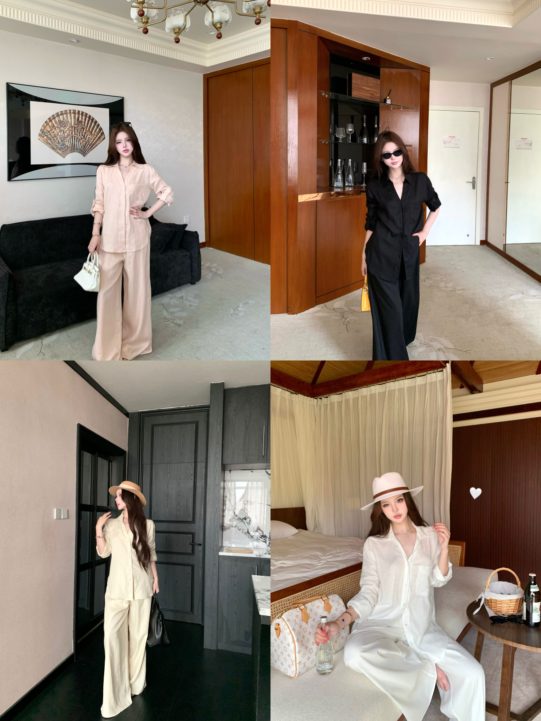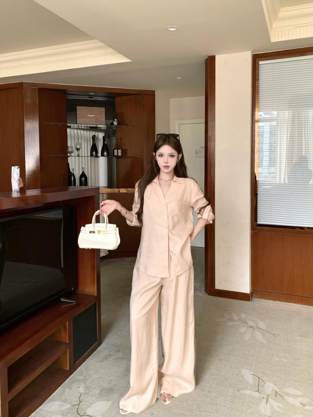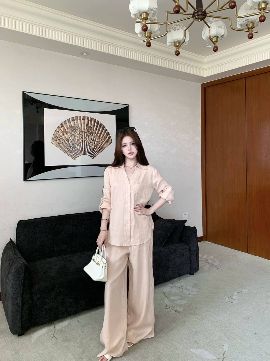 실사 정가 여성 셔츠 봄 여름 화이트 품격 다용도 루즈핏 캐주얼 느긋한 바람 라미 긴팔 셔츠 세트