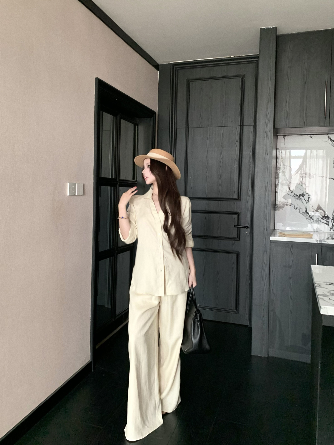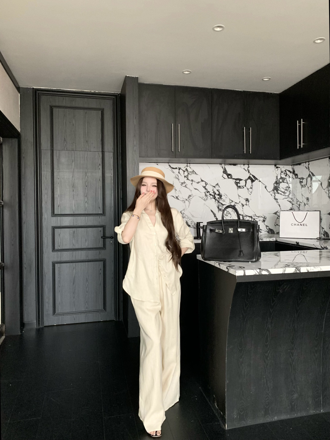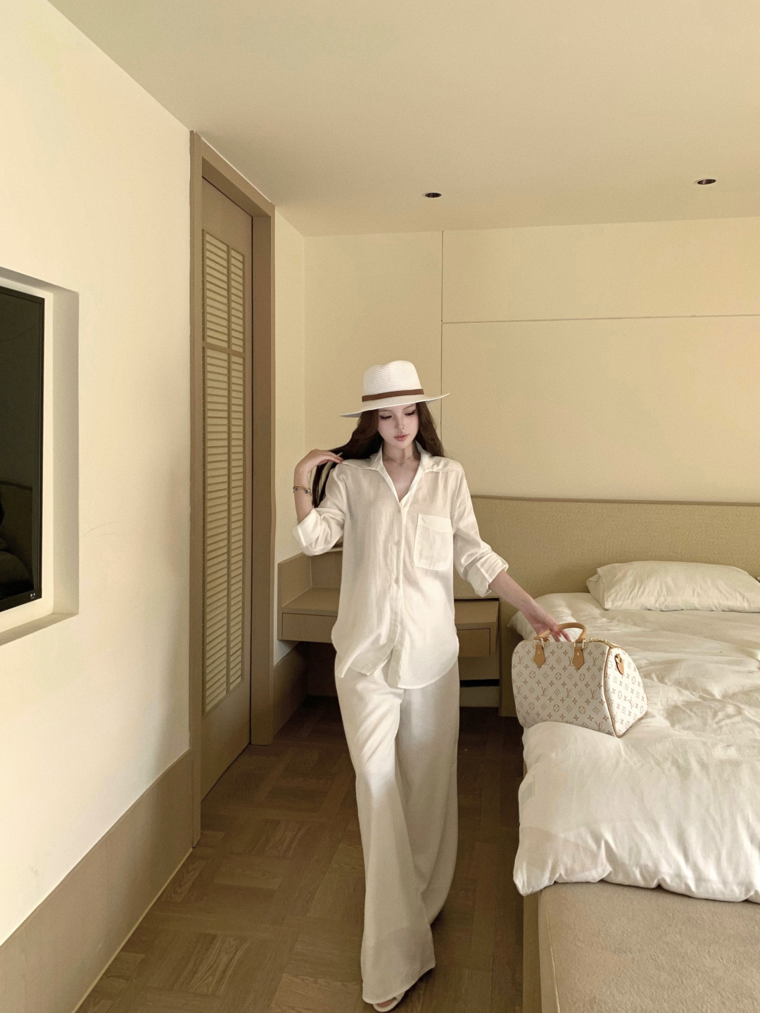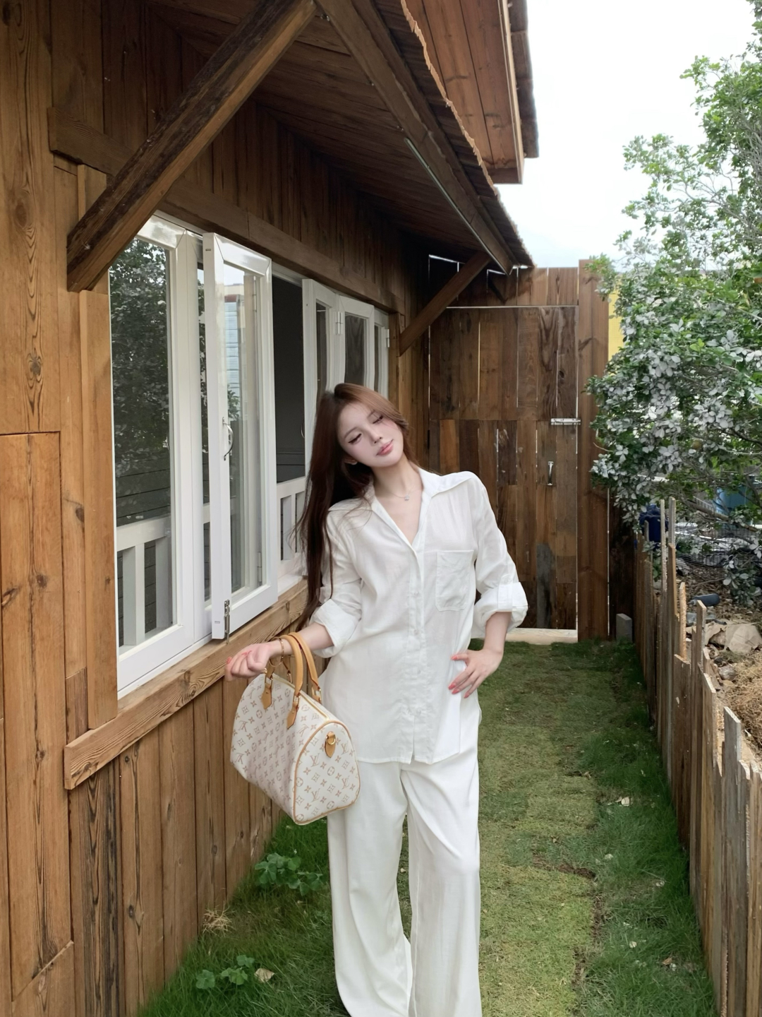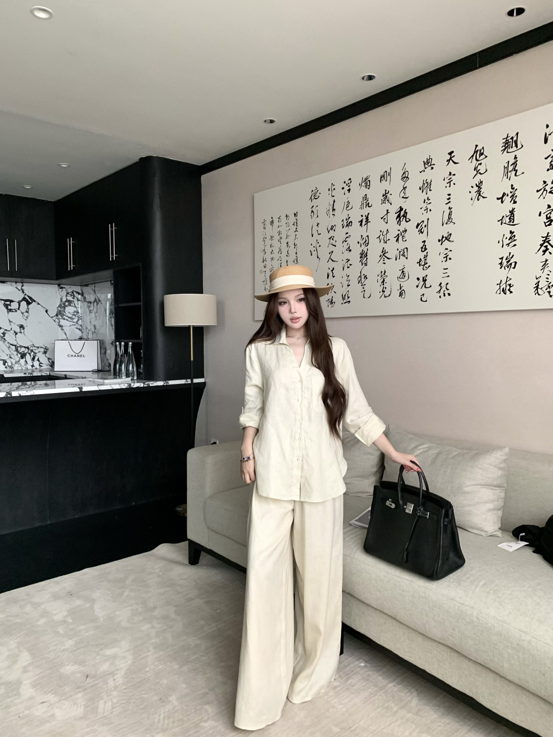 실사 정가 여성 셔츠 봄 여름 화이트 품격 다용도 루즈핏 캐주얼 느긋한 바람 라미 긴팔 셔츠 세트