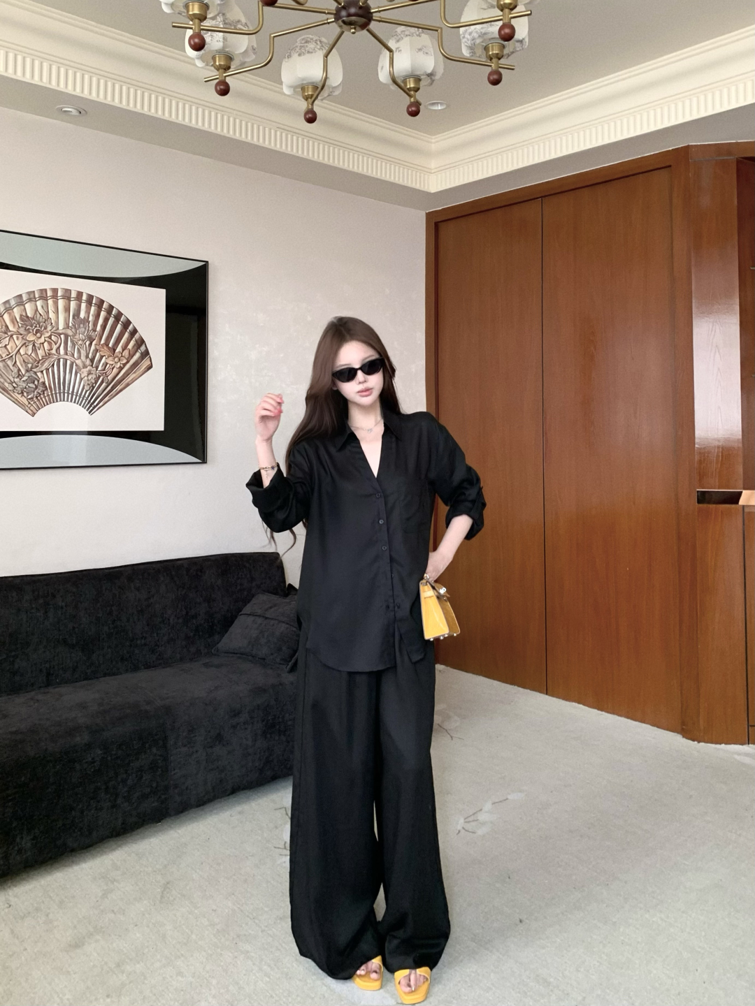 실사 정가 주간 실크 아마 자외선 차단 긴팔 여성 셔츠 라미 반신 스커트 여성 봄 여름 다용도 A라인 스커트