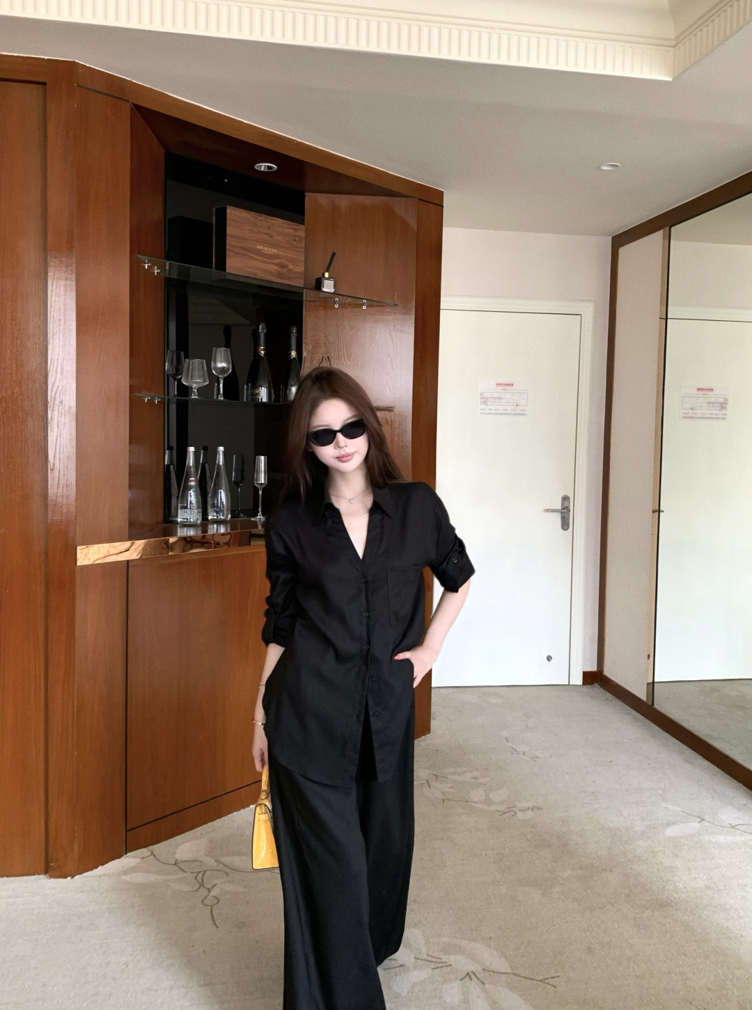 실사 정가 이슬 실크 착용 가져 가라. 시스루 홀로우 아웃 V넥 긴팔 자외선 차단 블라우스 명중 가져 가라. V넥 슬립 드레스