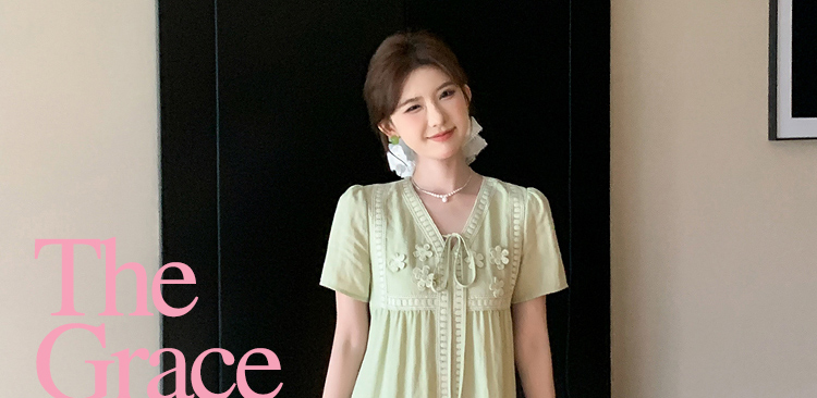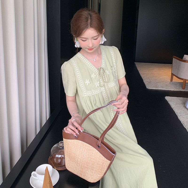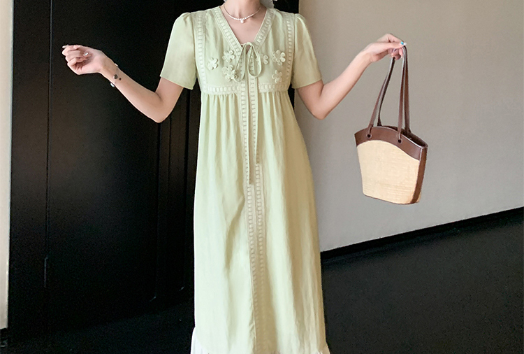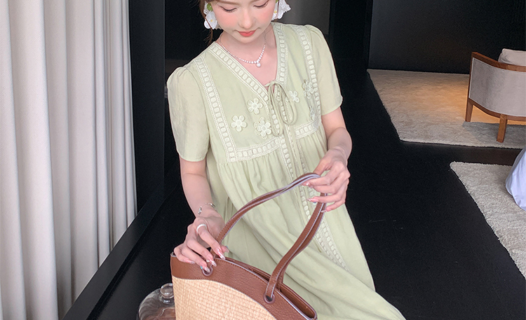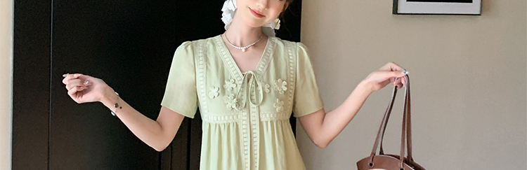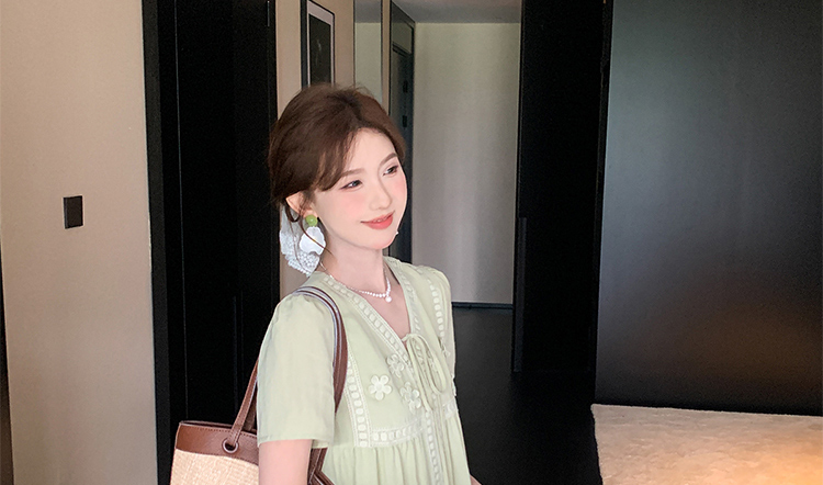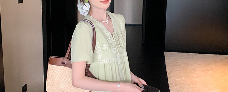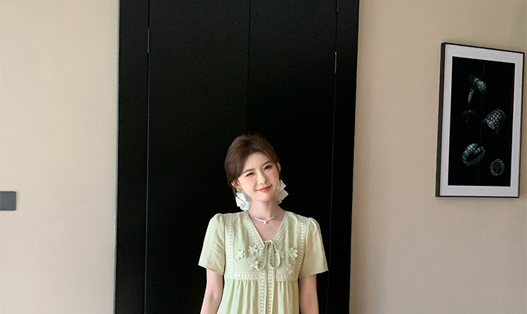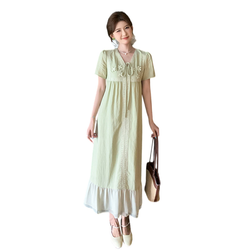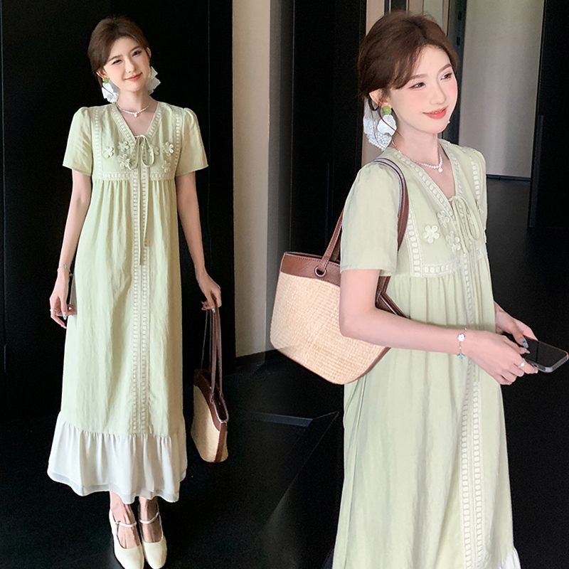 여름 드레스 새로운 V넥 부드러운 바람 품격 임산부 롱 스커트