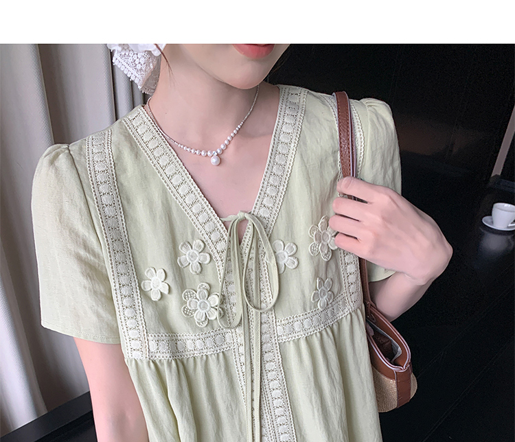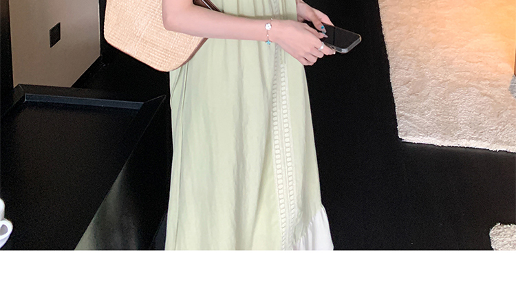 여름 드레스 새로운 주간 실크 아마 배색 품격 반팔 임산부 드레스
