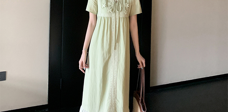 실사 봄 새로운 부드러운 바람 무거운 작업 자카드 중간 길이 임산부 드레스