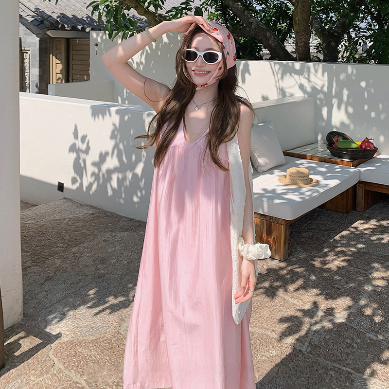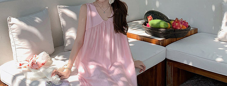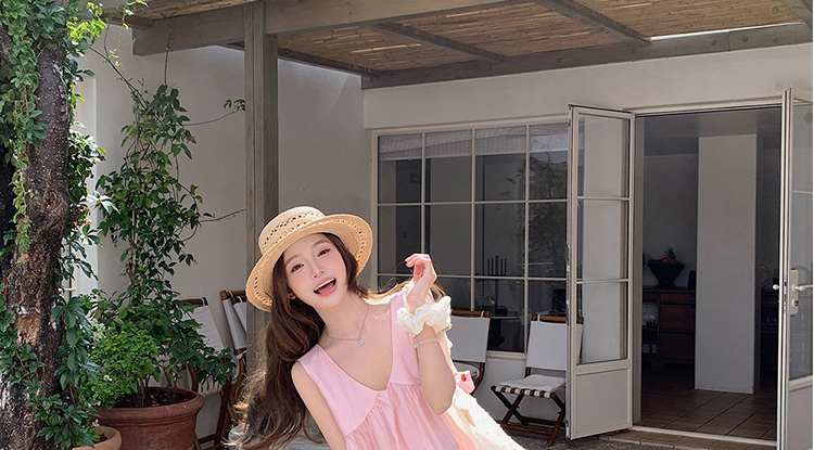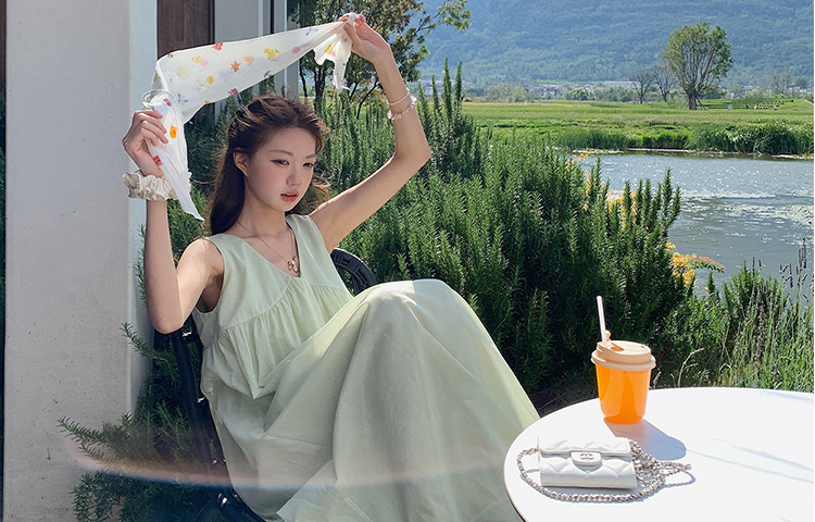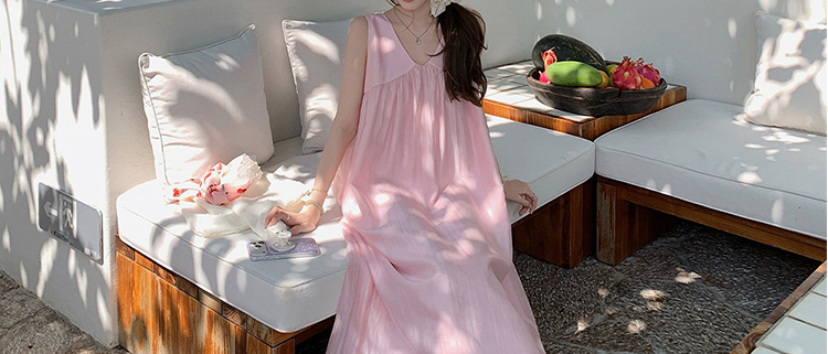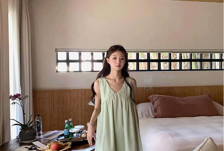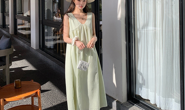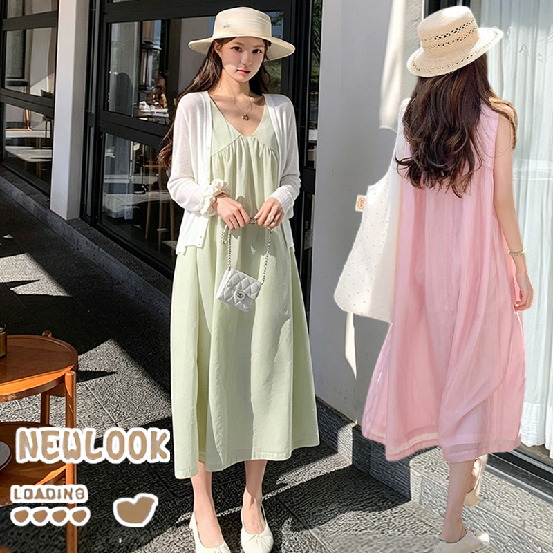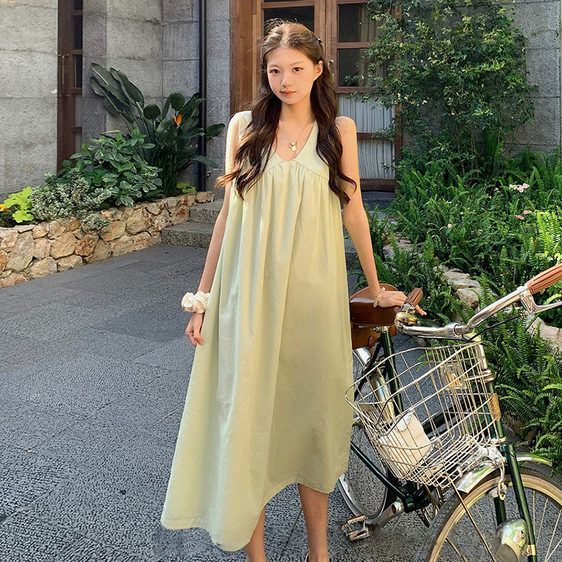여름 드레스 새로운 라이 경기 서울 V넥 민소매 느긋한 바람 드레스 임산부 투피스 세트
