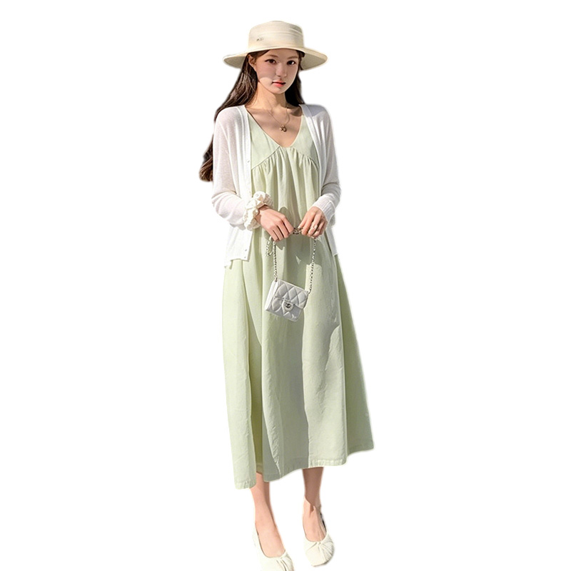 이른 봄 새로운 자외선 차단 셔츠 편안함 슬립 드레스 출산 착용 투피스 세트