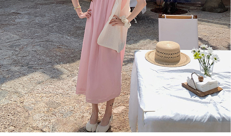 작은 꽃 nana 프랑스식 순수한 욕망 달콤함 도트 무늬 슬립 드레스 여름 휴가 바람 허리 수축 몸매 가꾸기 타이트 스커트 롱 스커트