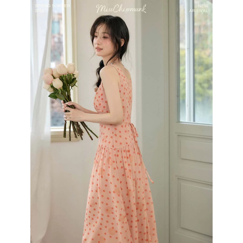 다람쥐 미스 프랑스식 품격 여성 드레스 여름 도트 무늬 치마 한 마디 허리 수축 롱 스커트 해변가 휴가 슬립 드레스