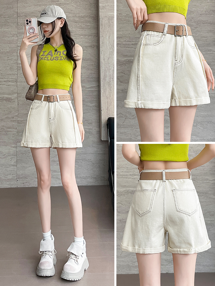 실사 살구 색상 핫걸 넓은 다리 데님 반바지 여성 여름 얇은 스타일 하이웨이스트 슬림해 보이는 루즈핏 작은 키 스트레이트 핫 바지