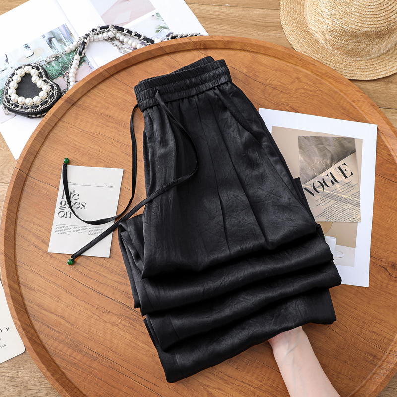 실사 2026 여름 새로운 엠보싱 아세트산 새틴 와이드 레그 팬츠 자외선 차단 얼음 실크 바지 스트레이트 캐주얼 바닥 청소 바지 여성