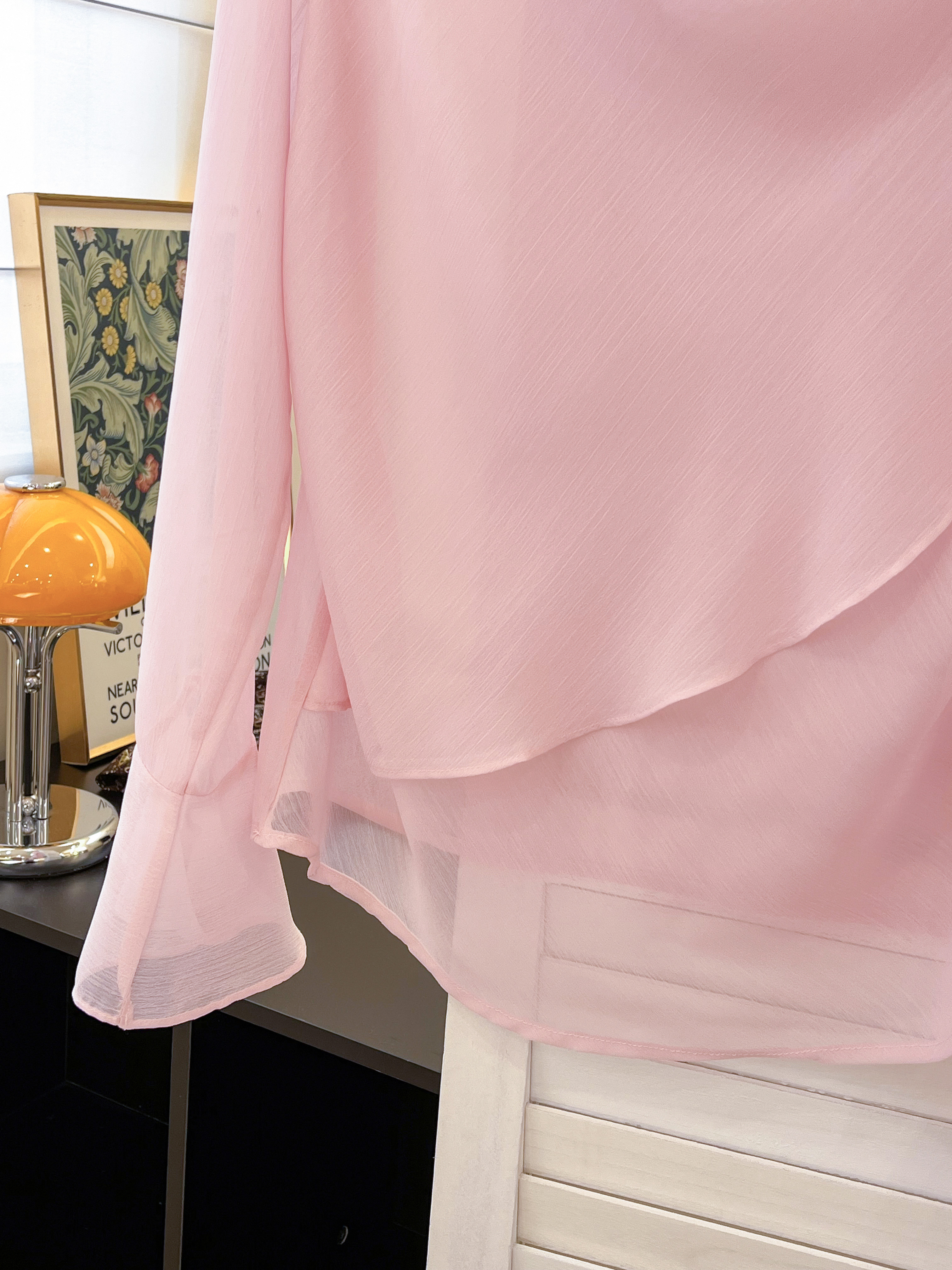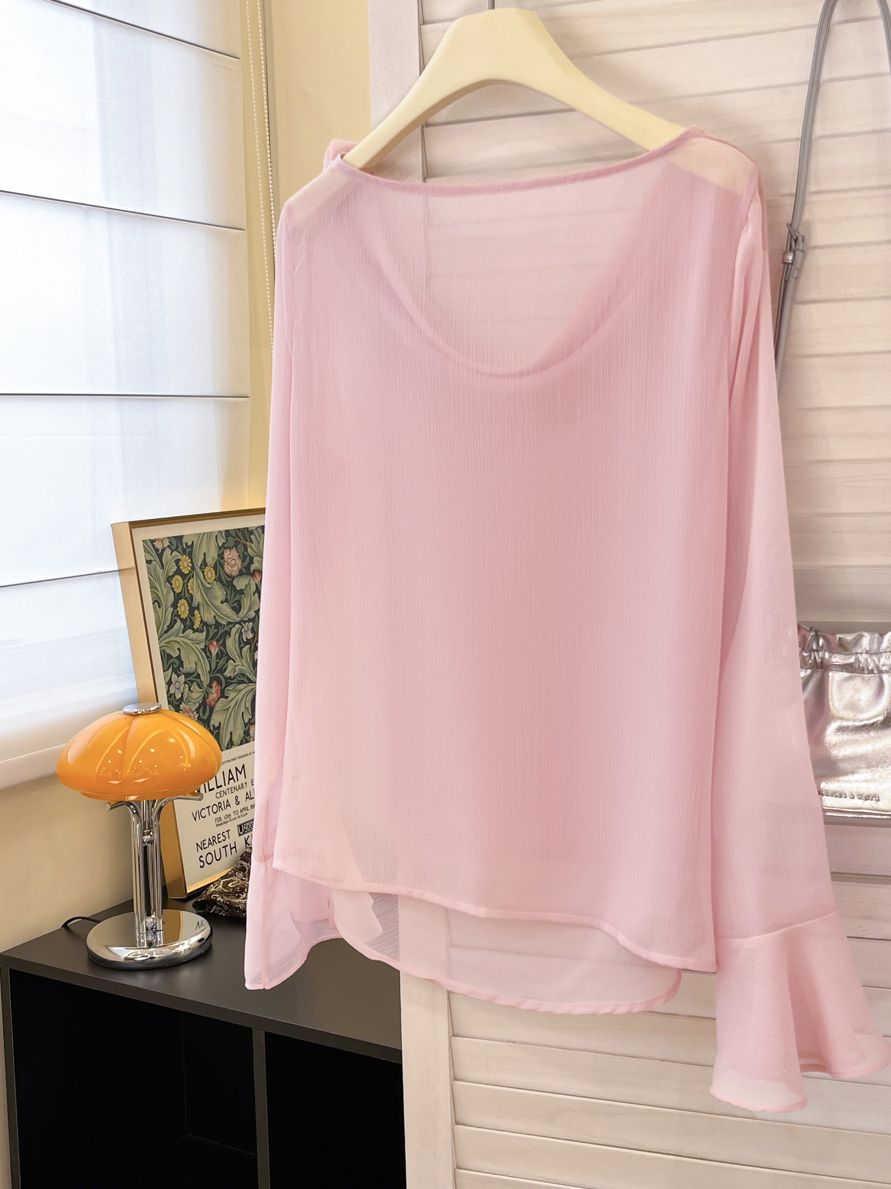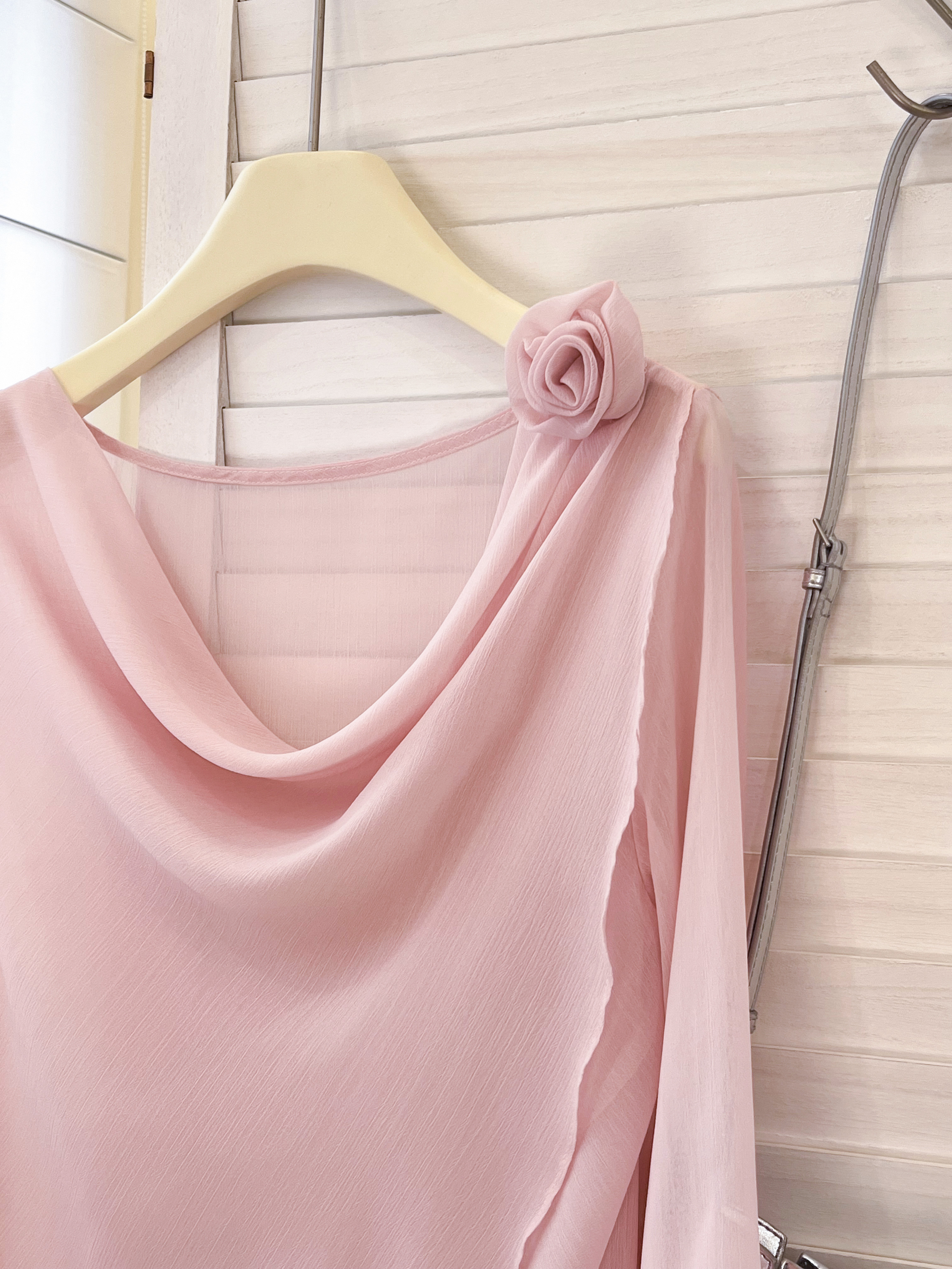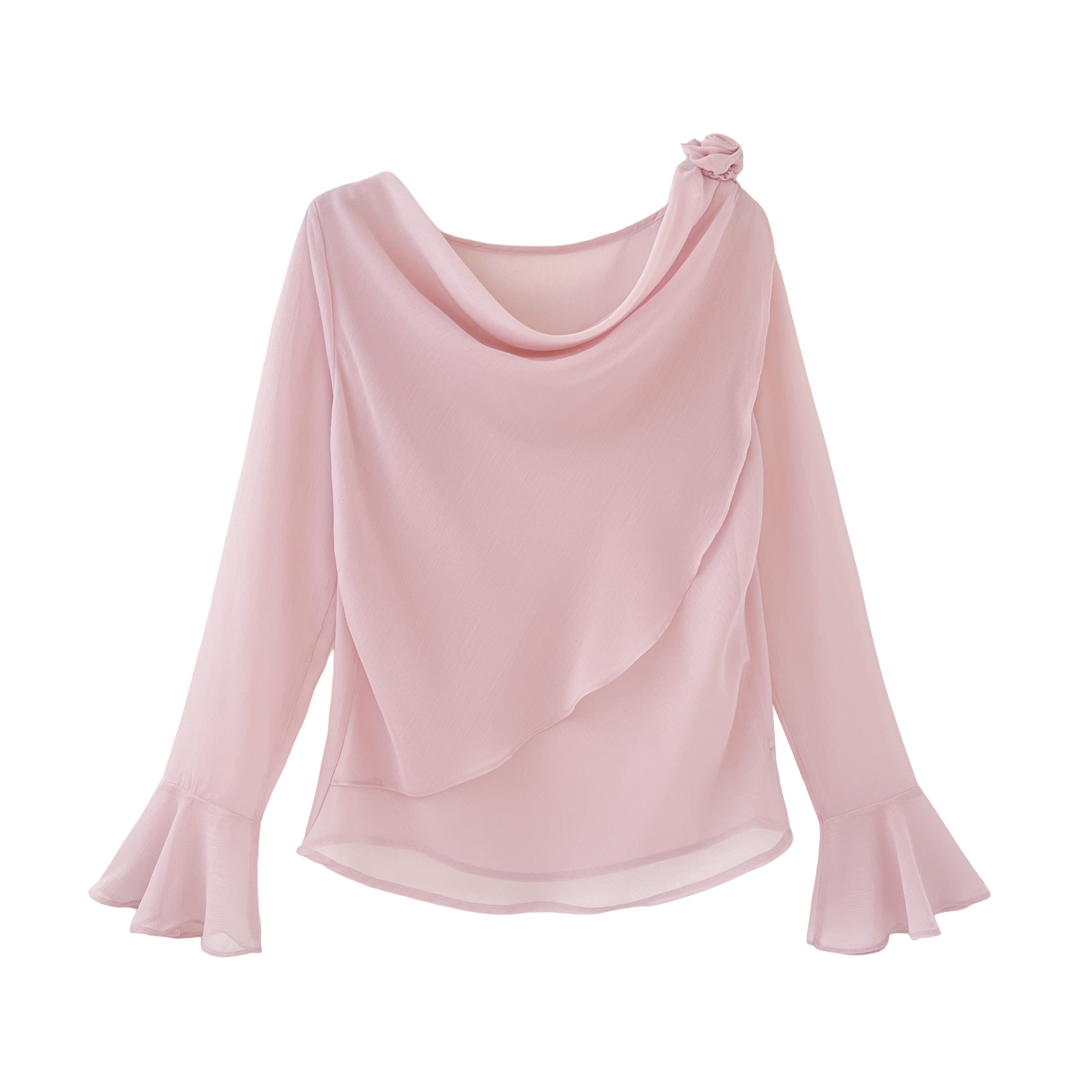 실사 부드러운 핑크색 3 차원 꽃 흔들다 칼라 맨위 여성 고유 한 아름다운 슈퍼 잘 생긴 나팔 소매 쉬폰 작은 셔츠