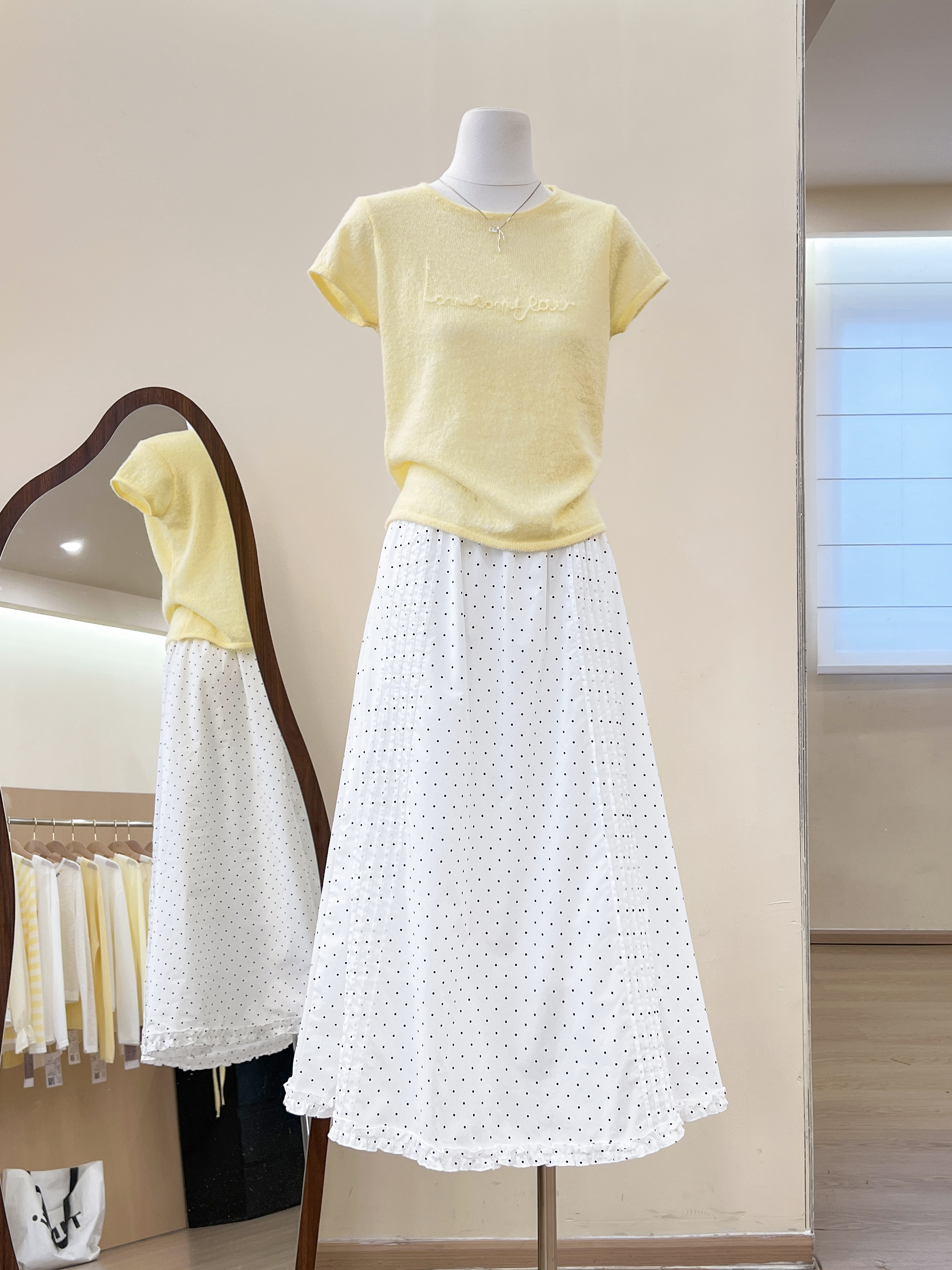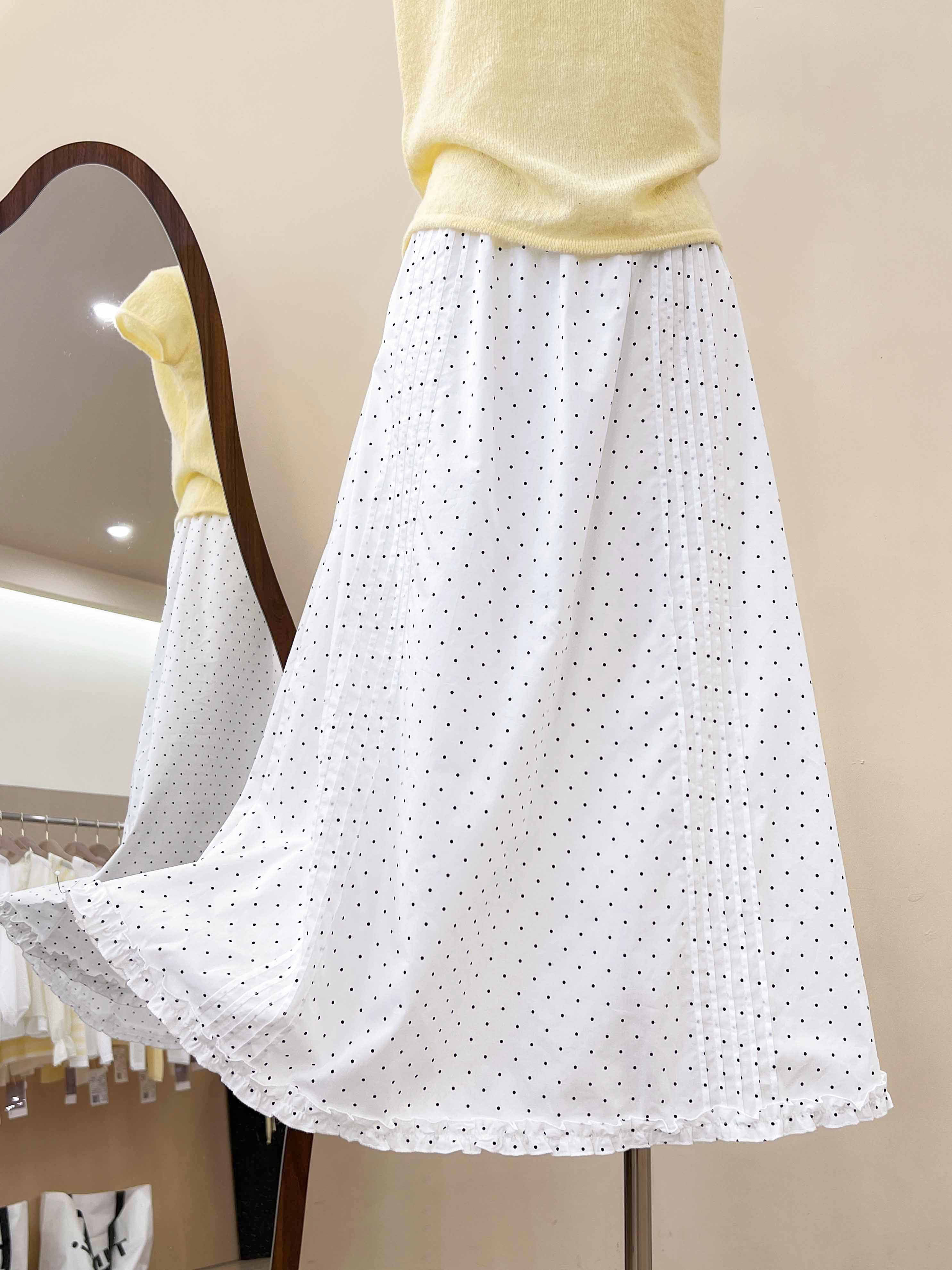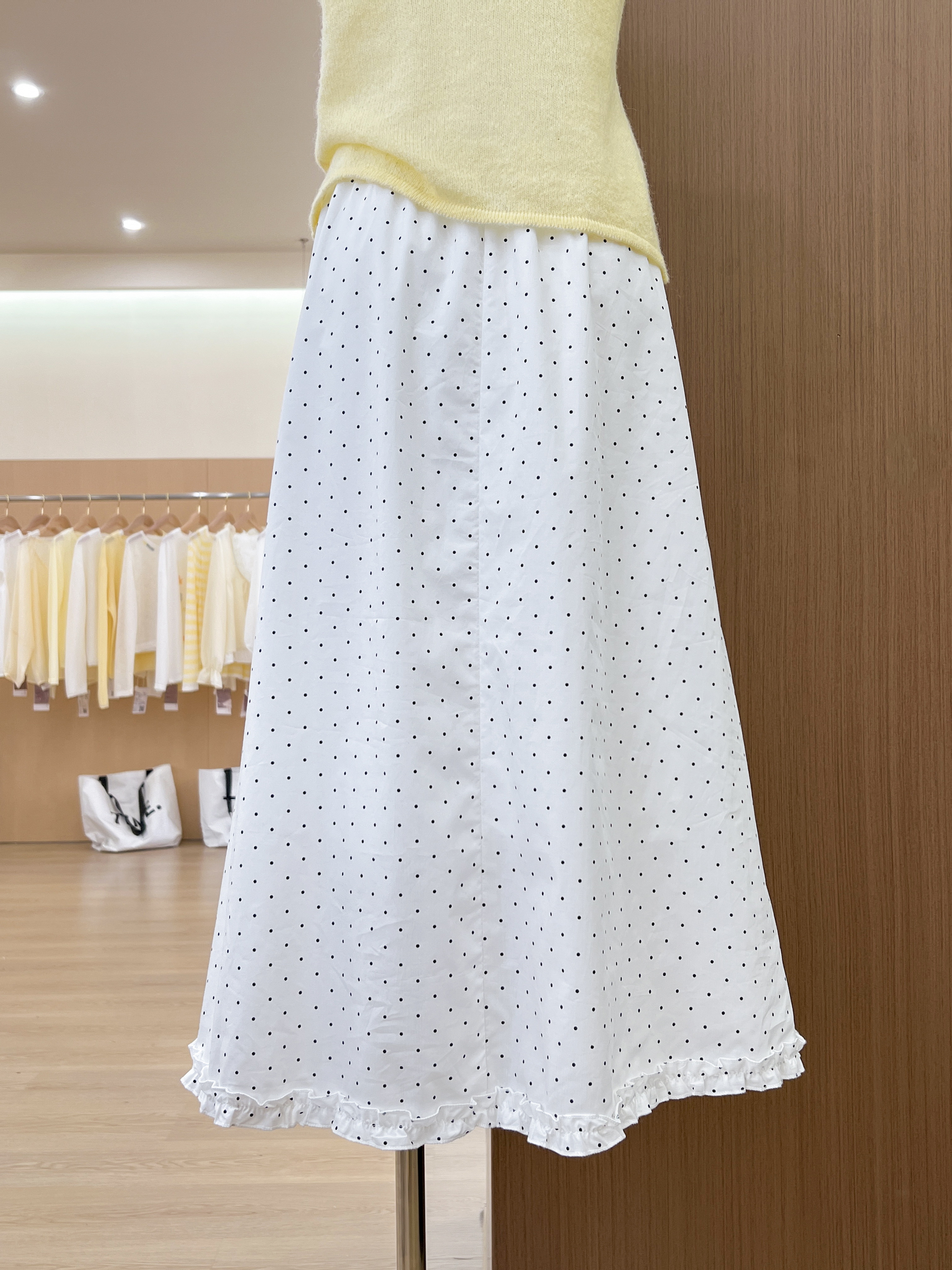 실사 화이트 도트 무늬 레이스 반신 스커트 여성 이른 봄 작은 키 고유 한 아름다운 하이웨이스트 한 마디 롱 스커트