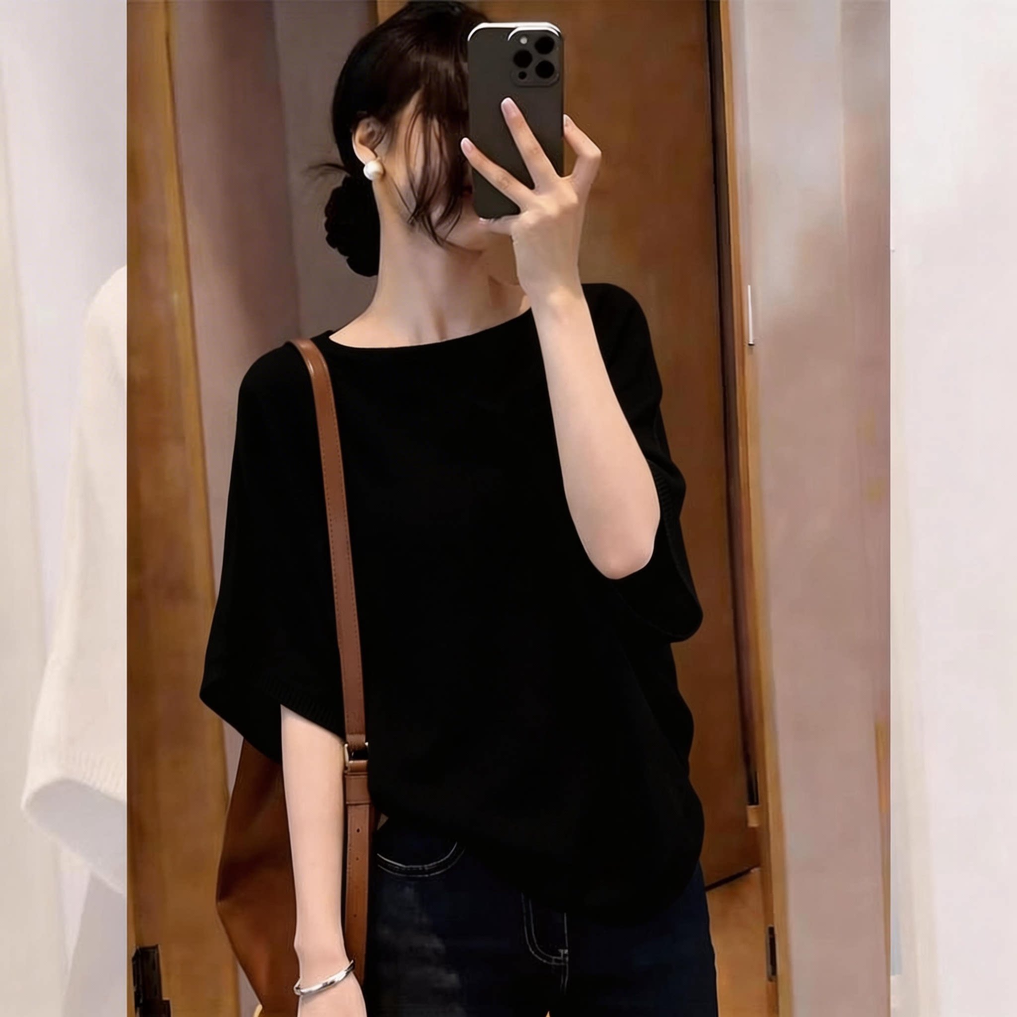 오래된 돈 바람 긍정적 인 어깨 얼음 실크 POLO 셔츠 여성 여름 프랑스식 차가운 센스 티셔츠 고급 센스 캐주얼 품격 슬림해 보이는 맨위