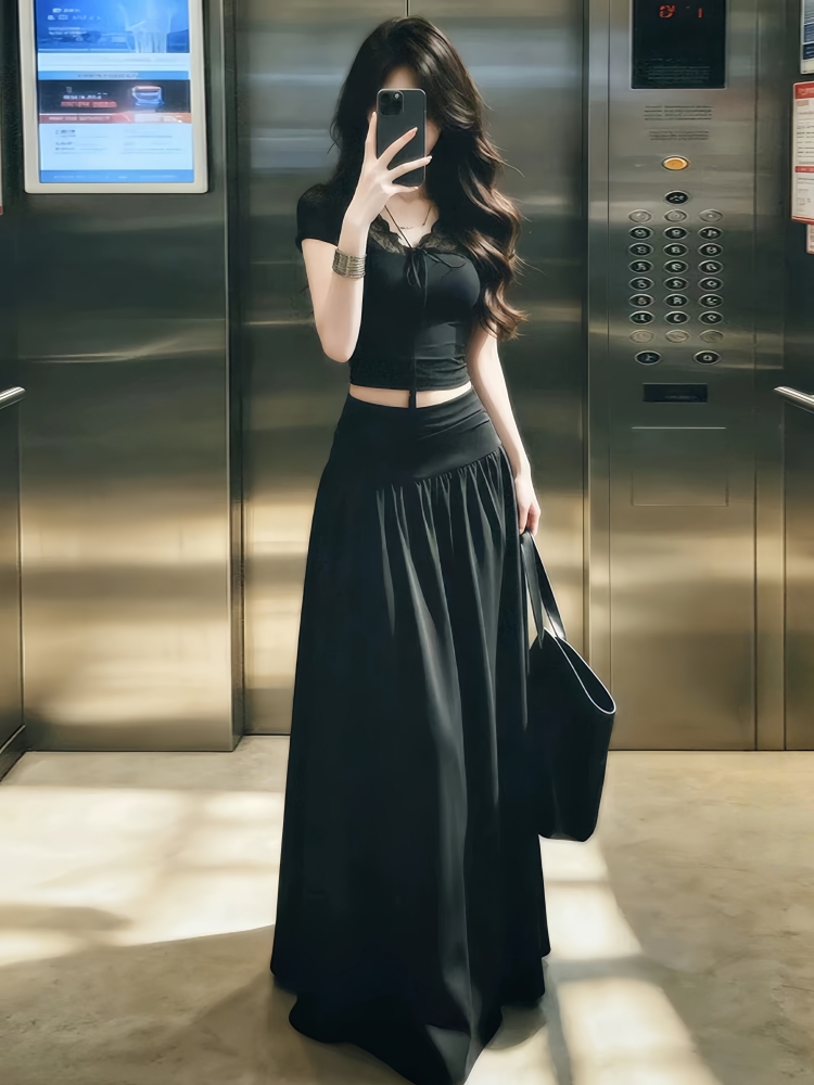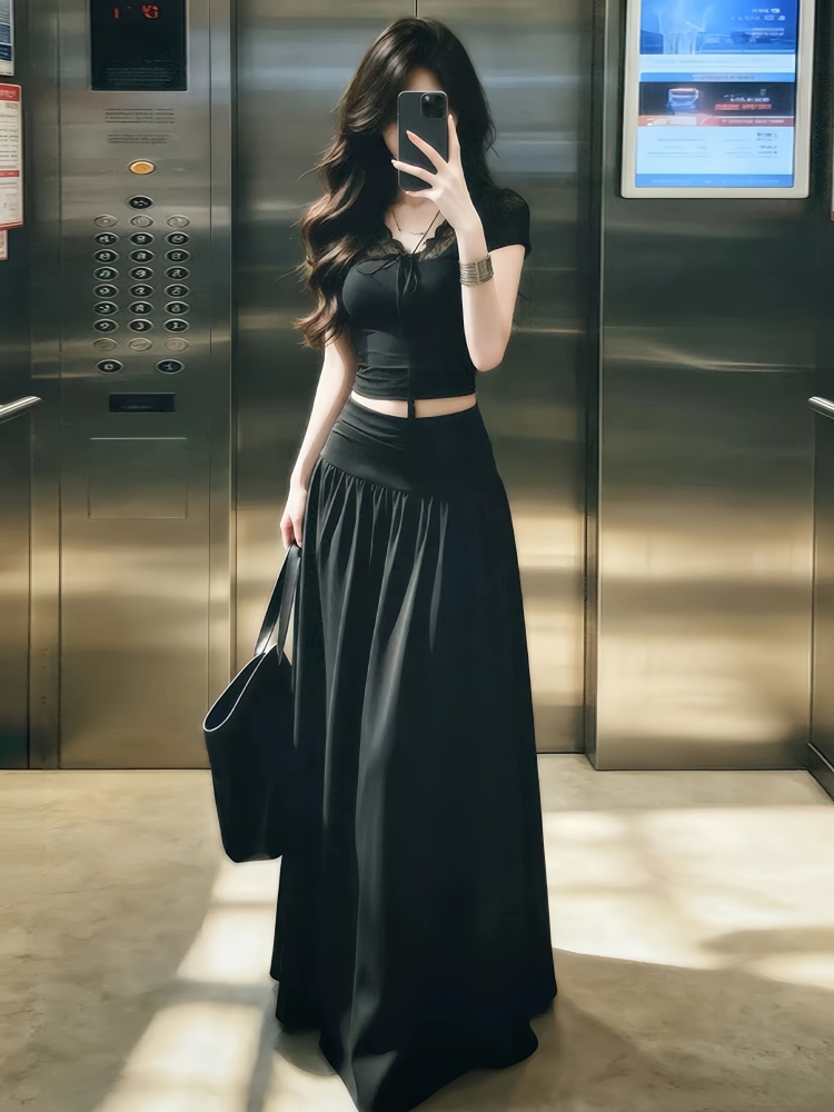 한 부서 작은 대중 아니요 명중 섹션 세트 고유 한 슈퍼 잘 생긴 ~ 중 맨위 반신 스커트 전체 집합 ootd 착용 가져 가라. 26 여름