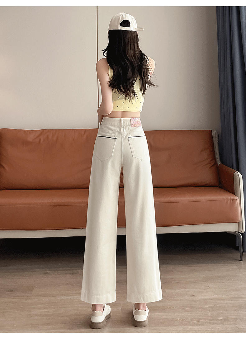 실사 꽃 자수 핫픽스 청바지 여성 2026 년 봄 새로운 좁은 에디션 하이웨이스트 슬림해 보이는 스트레이트 바닥 청소 바지
