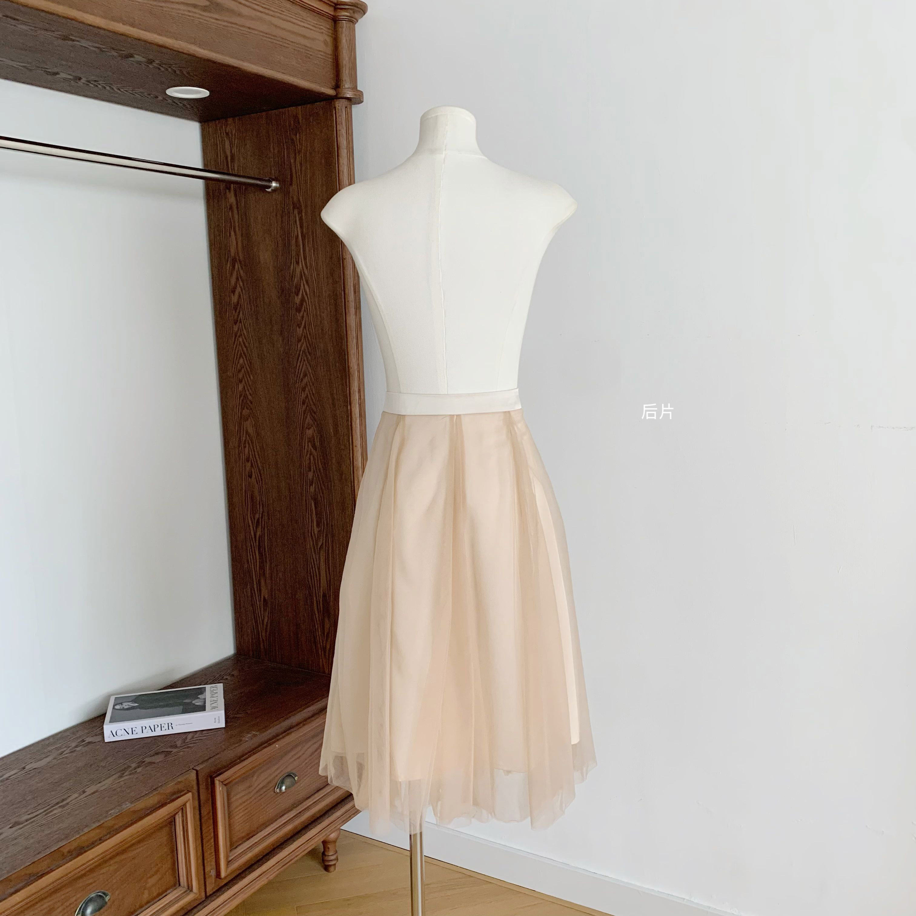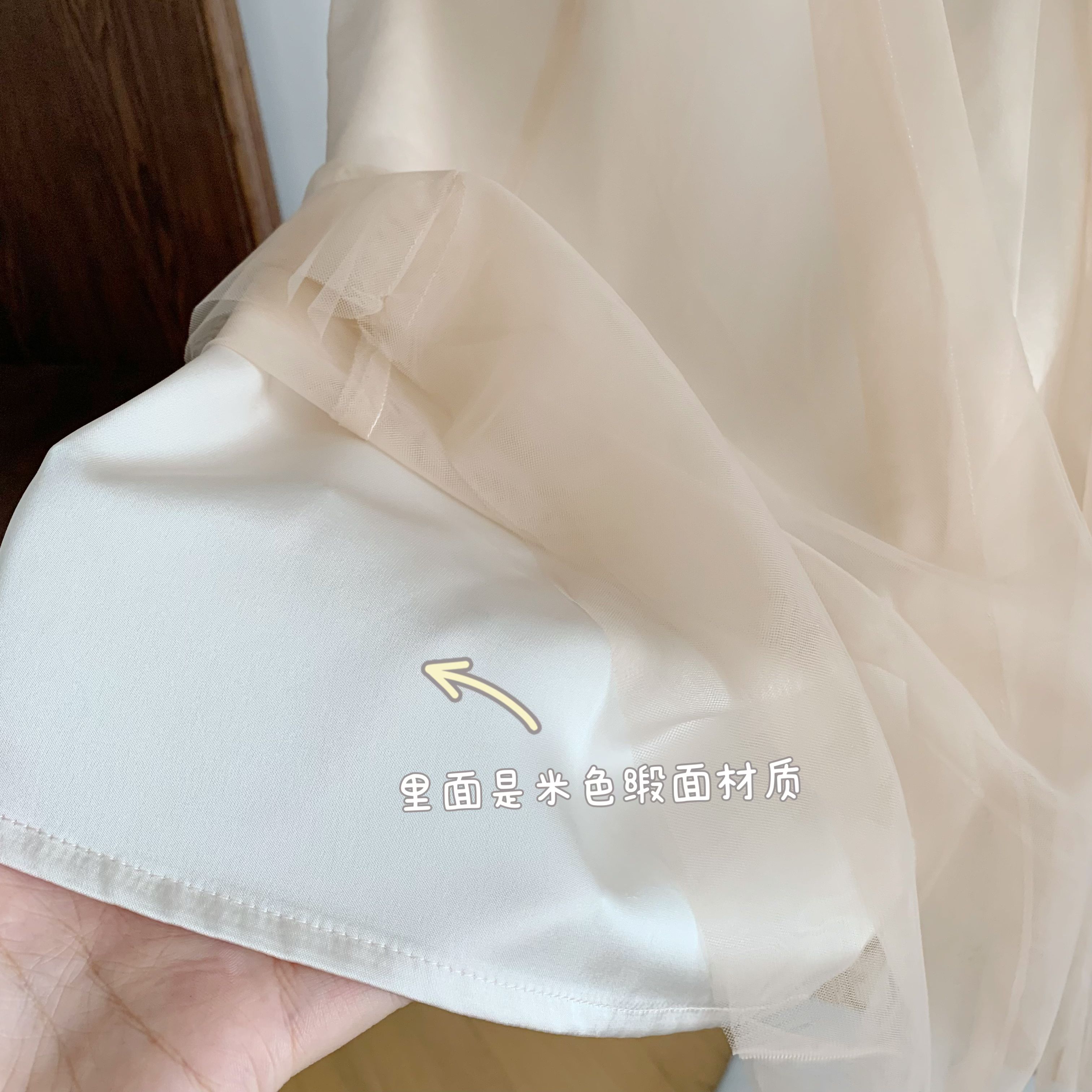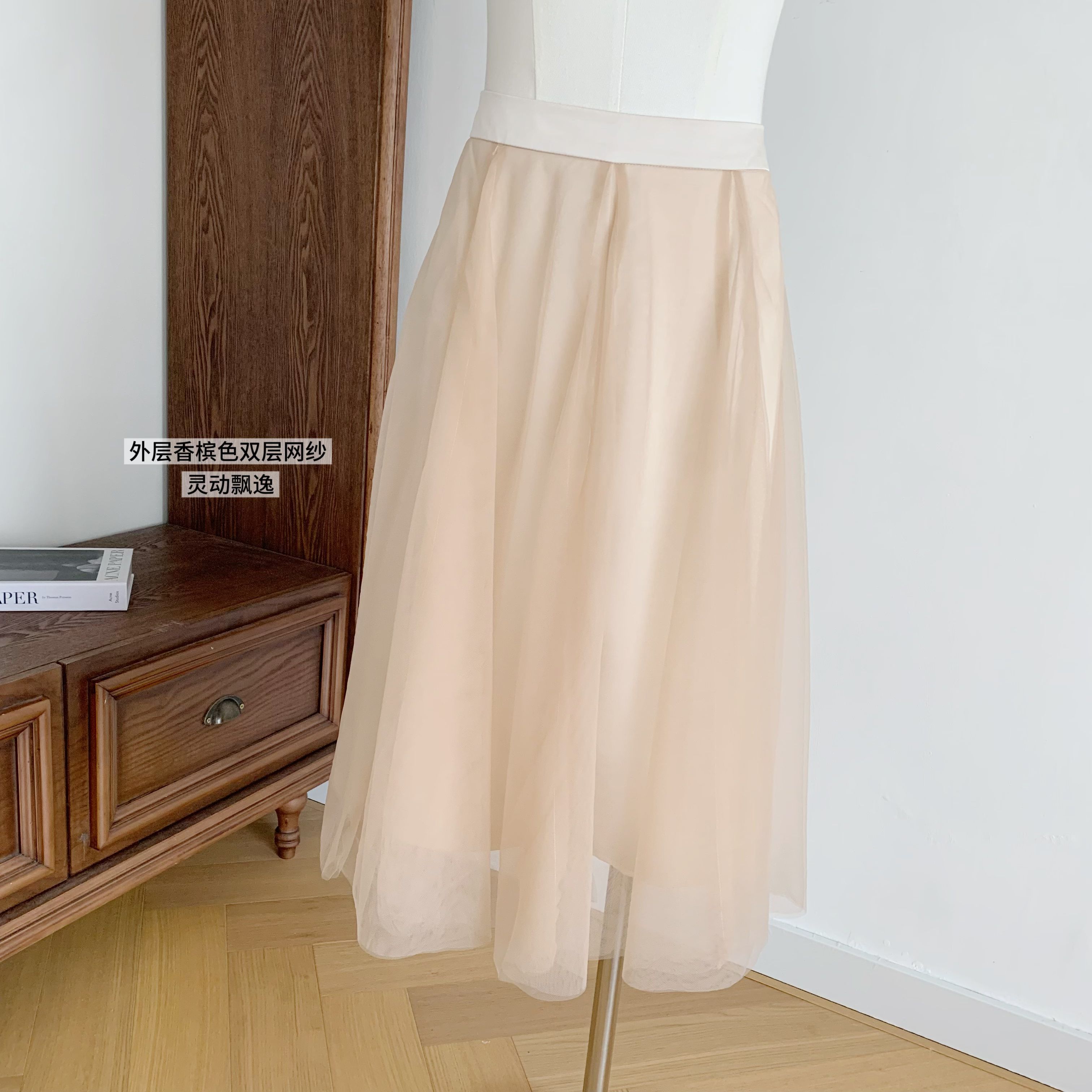 fart shop 달빛 아래서 탱고 샴페인 이중층 중간 허리 망사 반신 스커트 여성 봄 여름 중간 길이 스커트