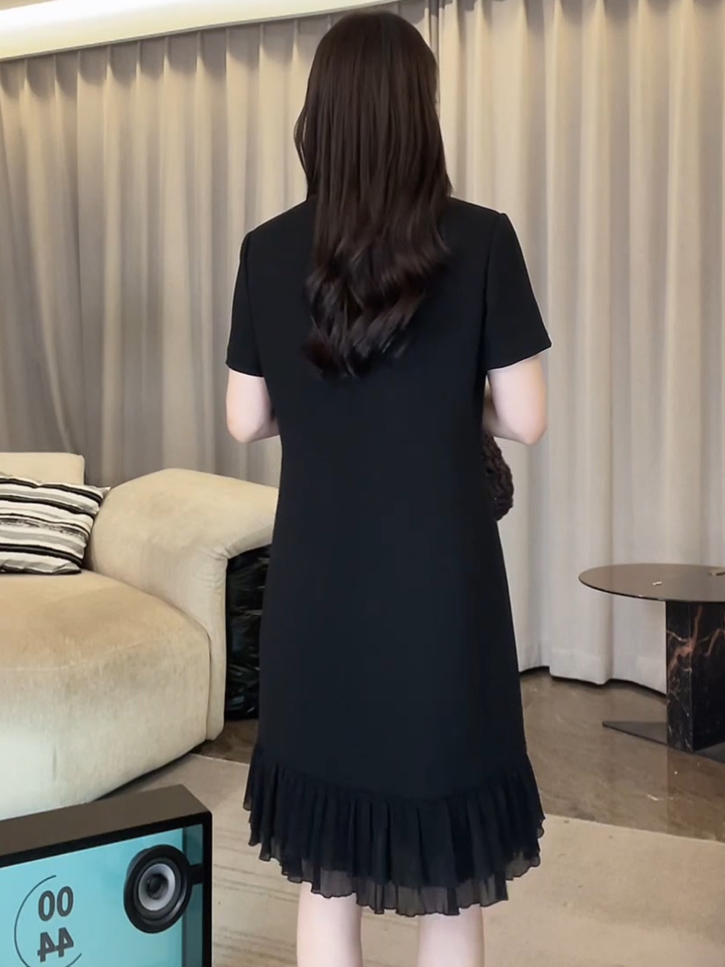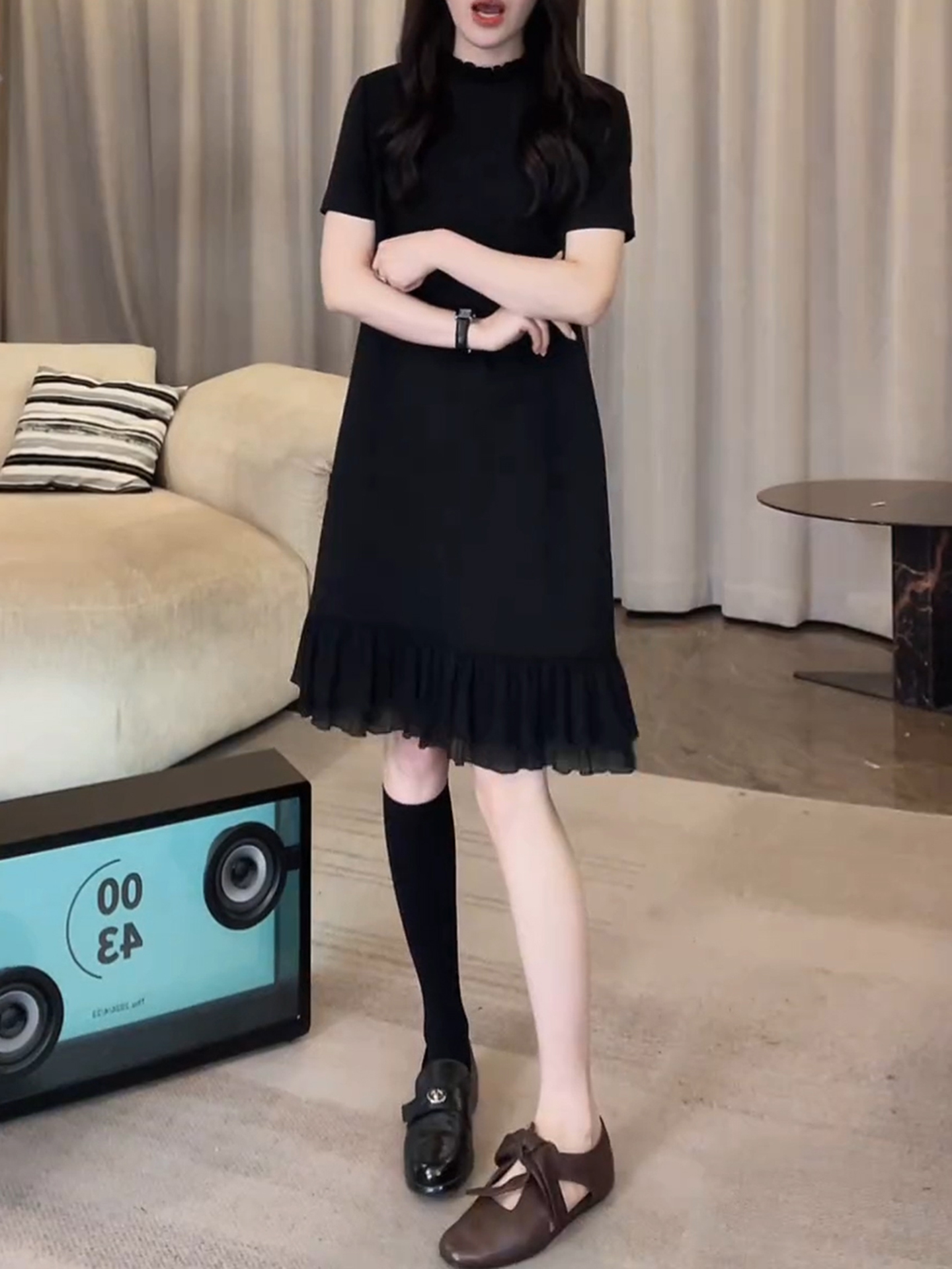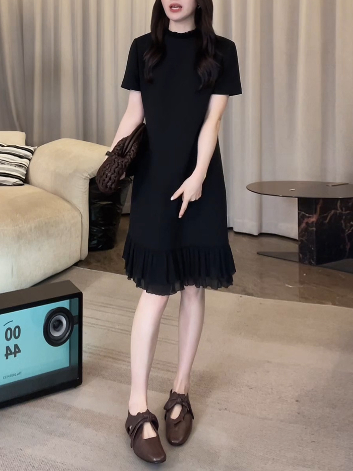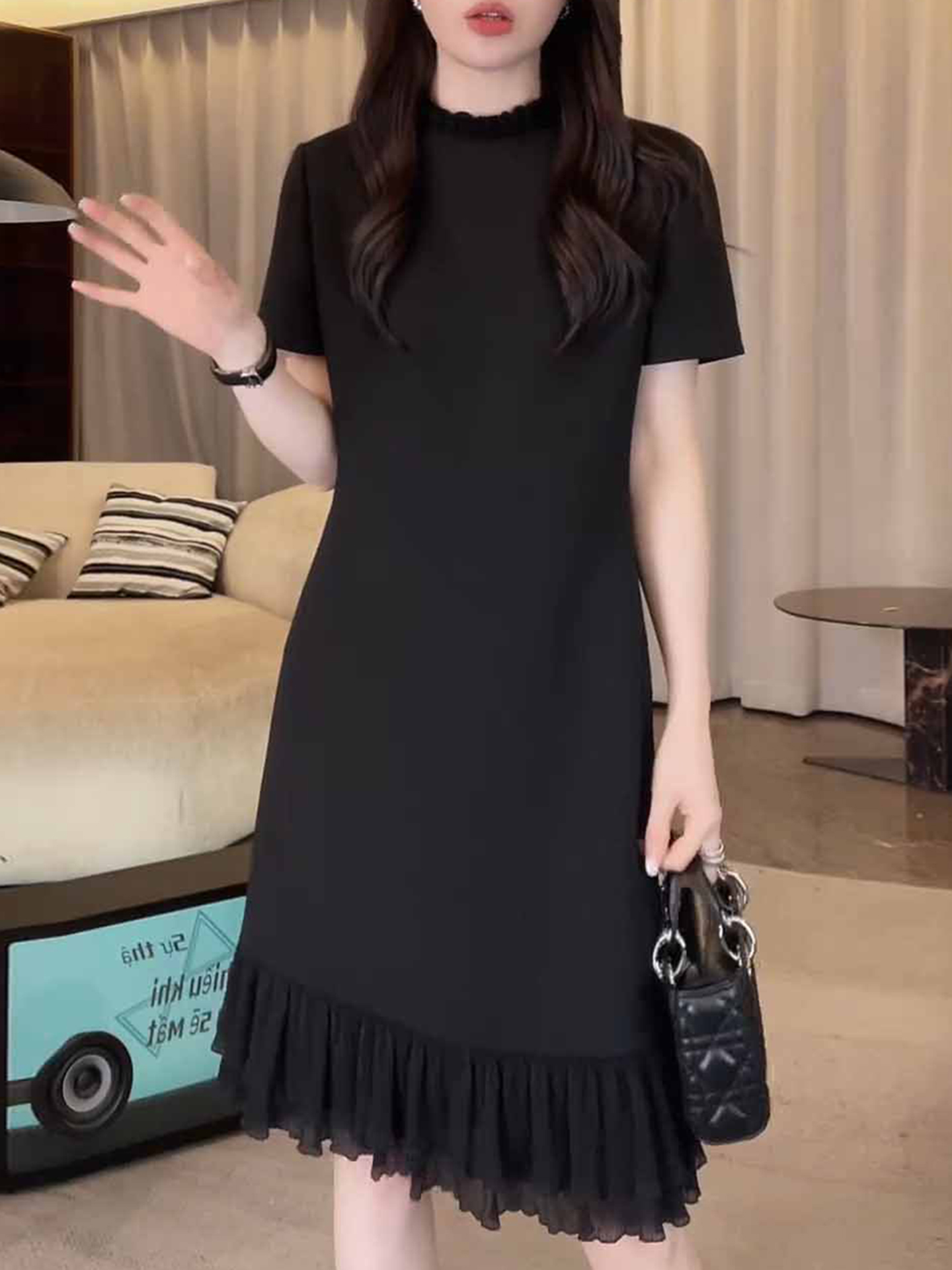 경관 그림 패션 디자인 외국 가스 슬림해 보이는 블랙 프릴 드레스 2026 여름 새로운 아메리칸 연인 바람 치마