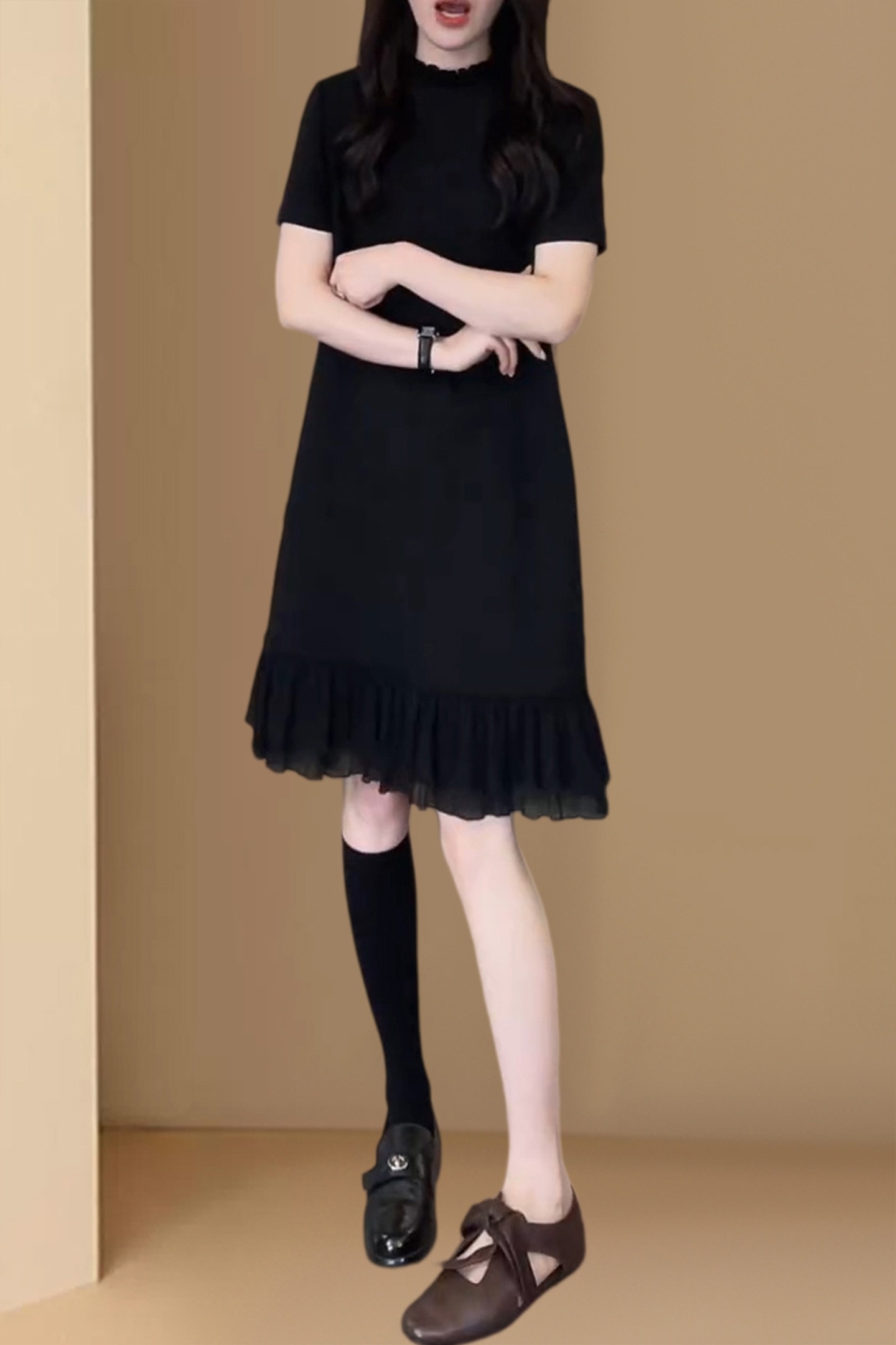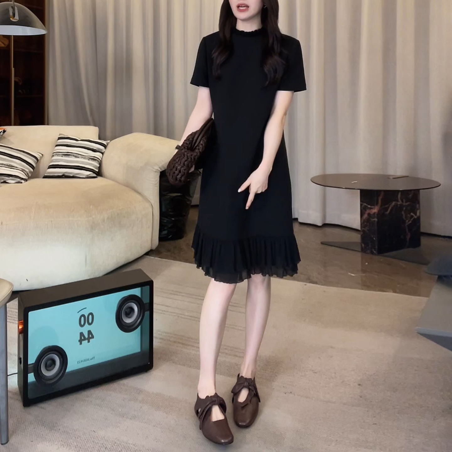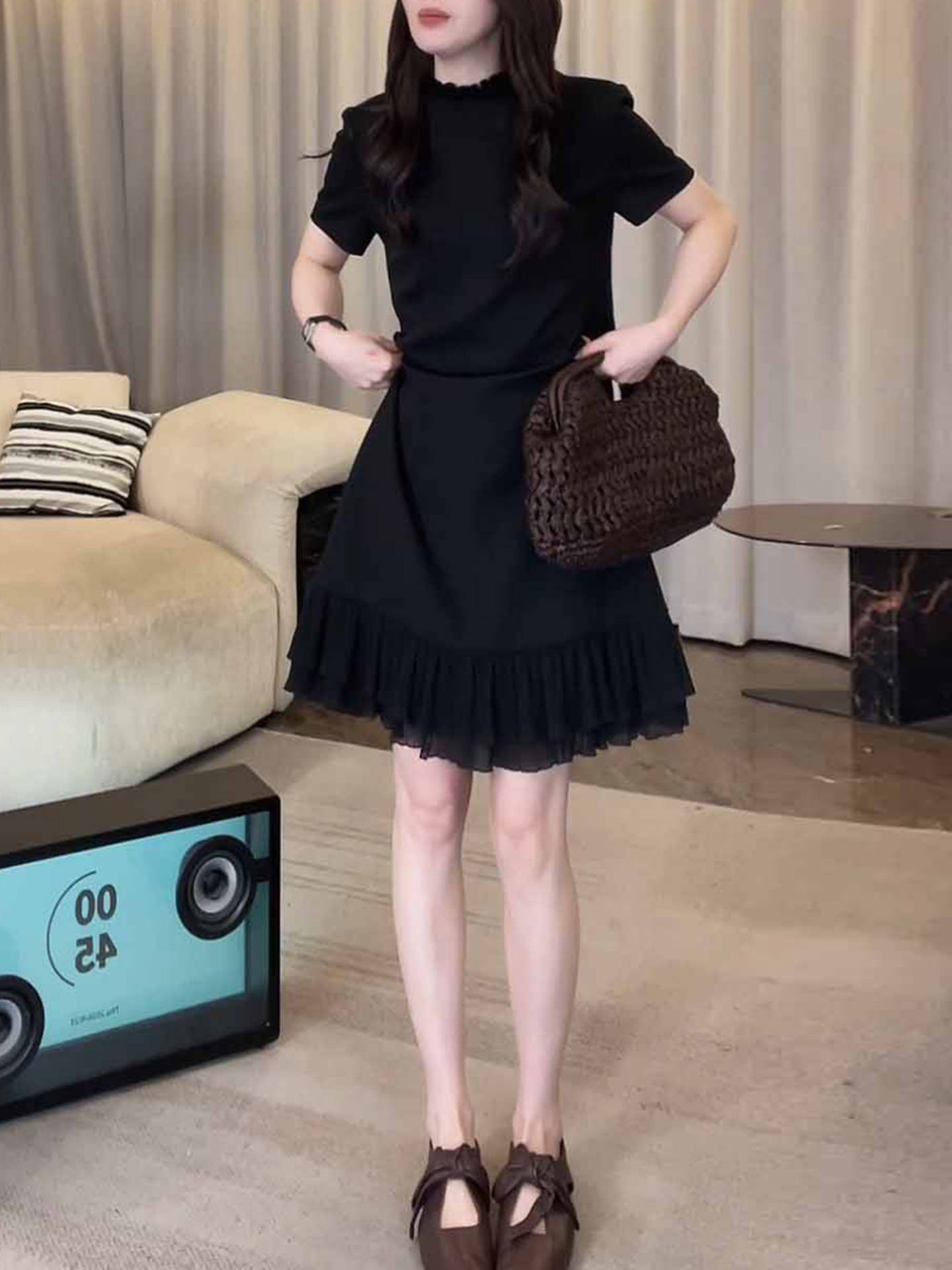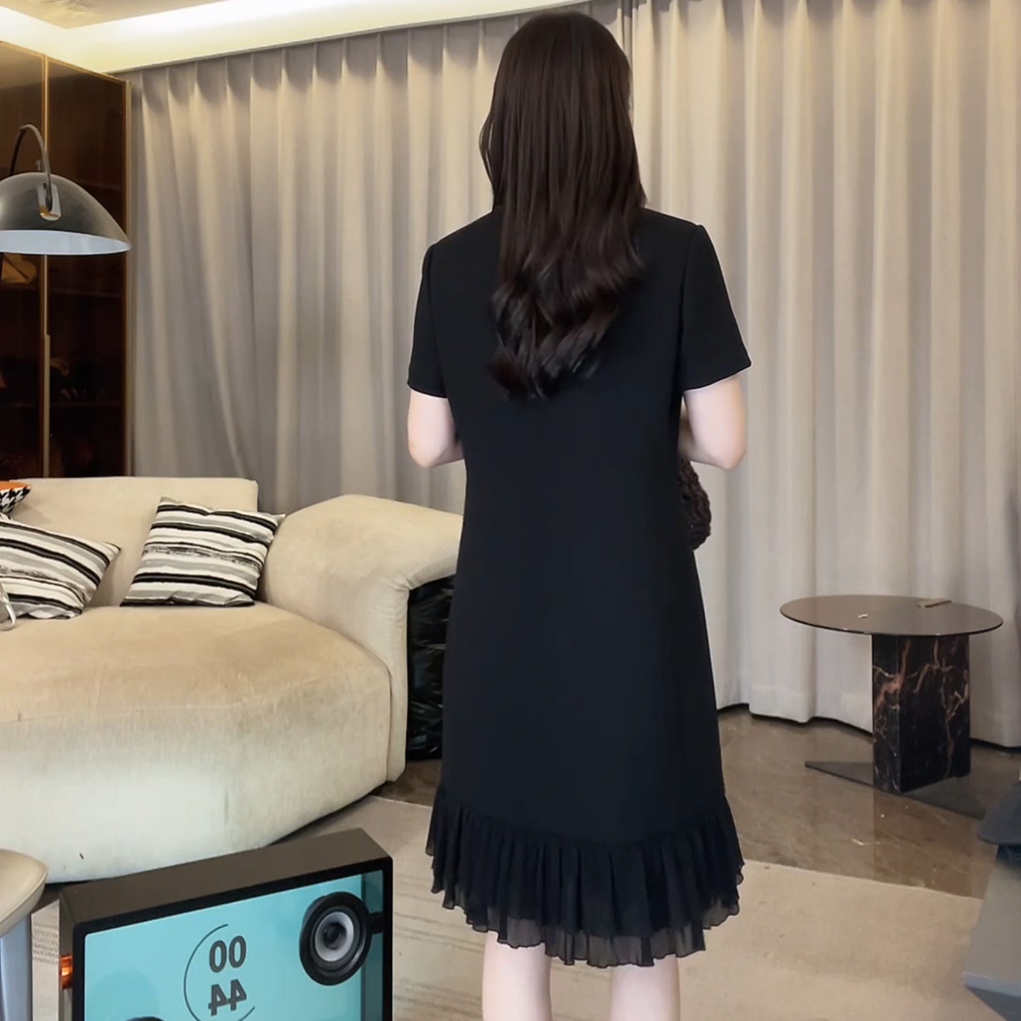 경관 그림 패션 디자인 외국 가스 슬림해 보이는 블랙 프릴 드레스 2026 여름 새로운 아메리칸 연인 바람 치마
