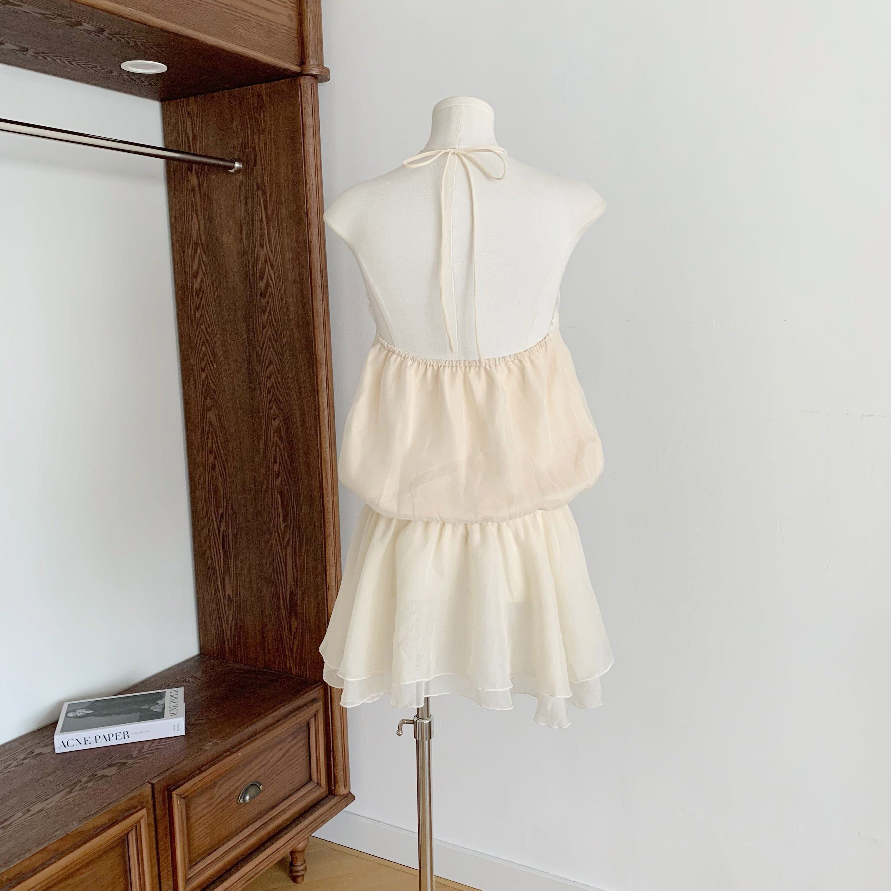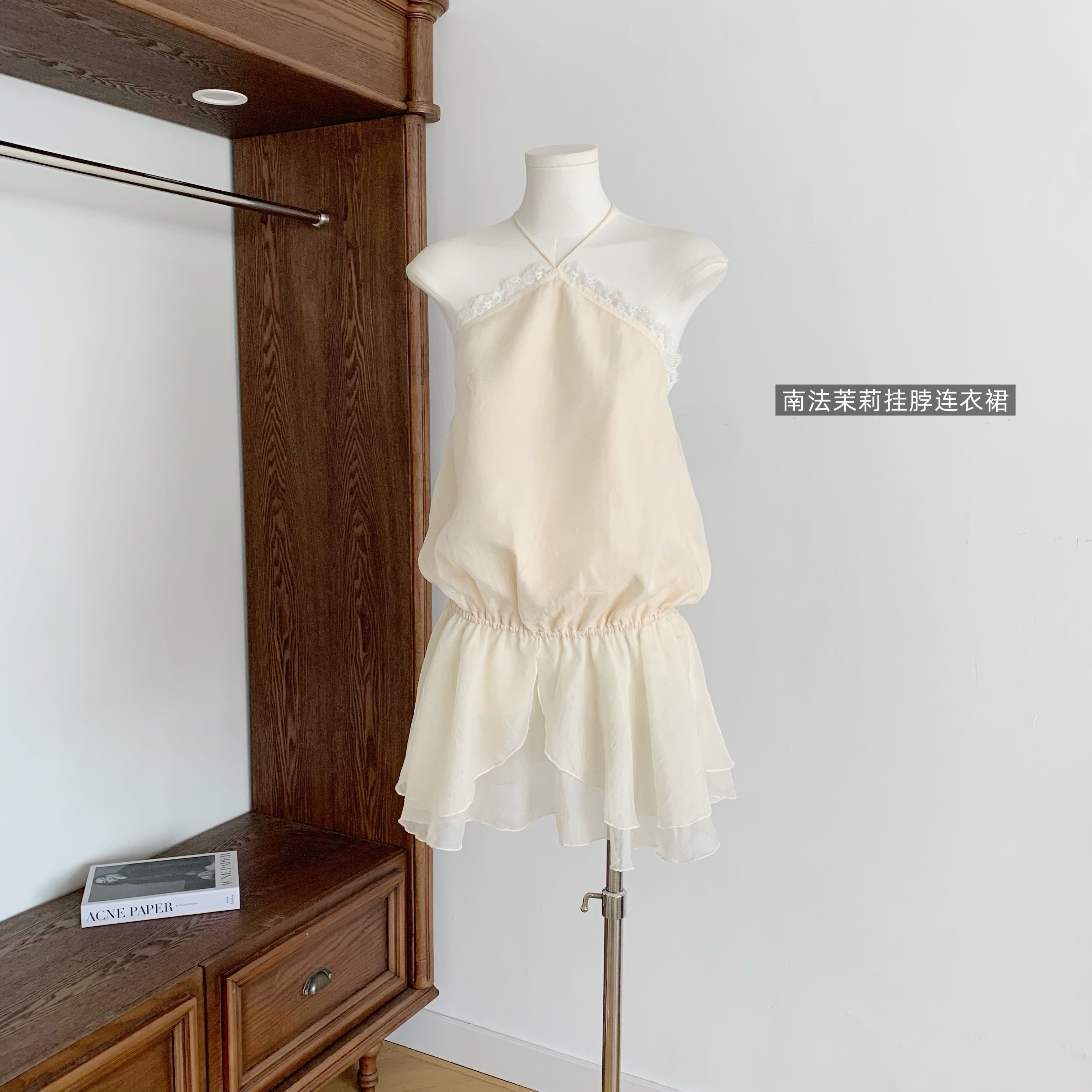 titi 작은 자매 남쪽 법 재스민 행침 목 드레스 여름 섹시함 휴가 바람 작은 키 백리스 미니 스커트