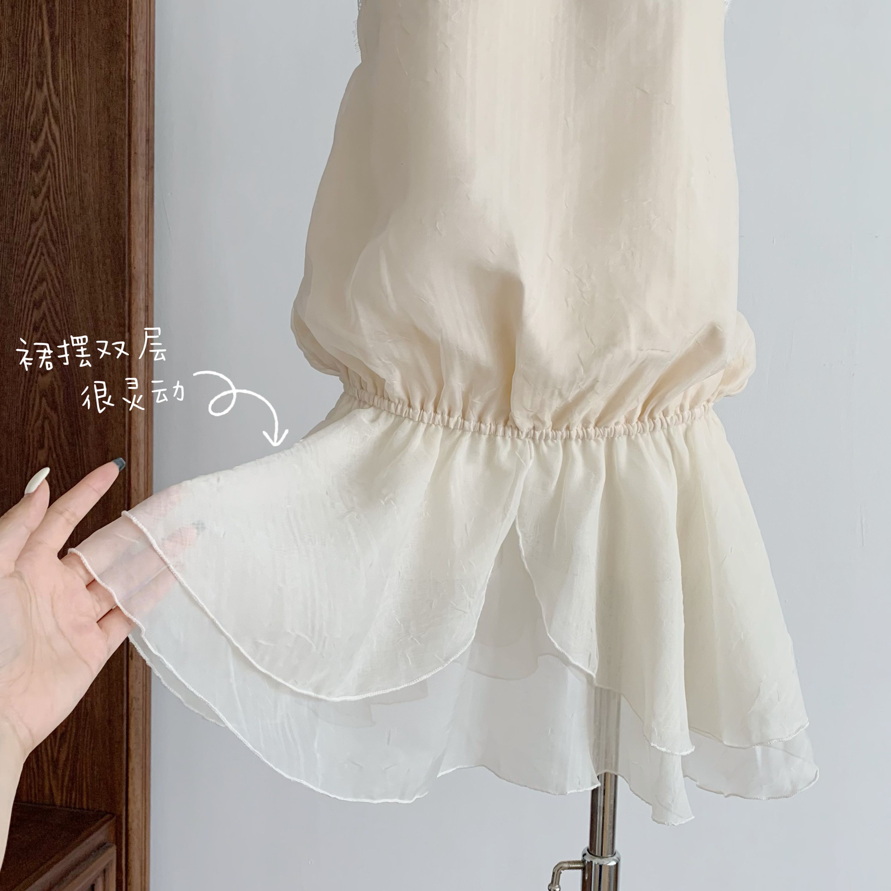 fart shop 달빛 아래서 탱고 샴페인 이중층 중간 허리 망사 반신 스커트 여성 봄 여름 중간 길이 스커트