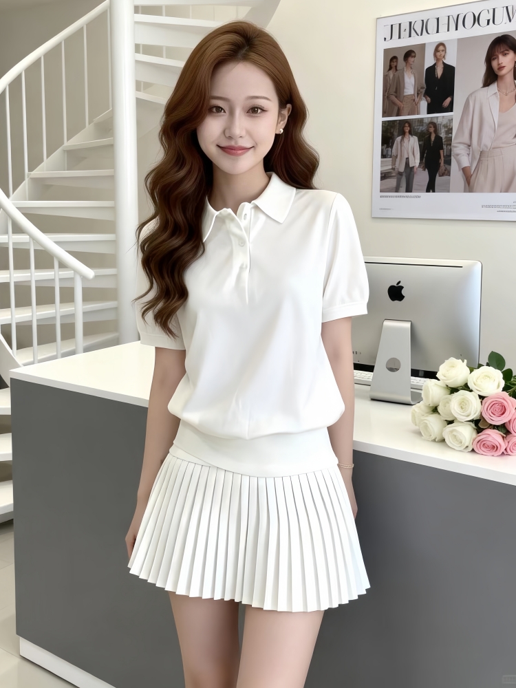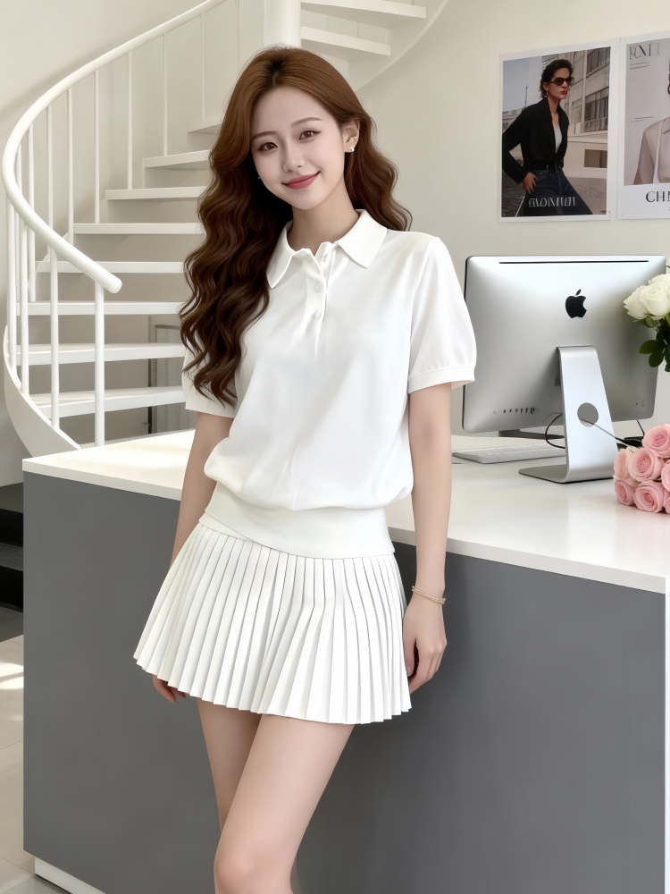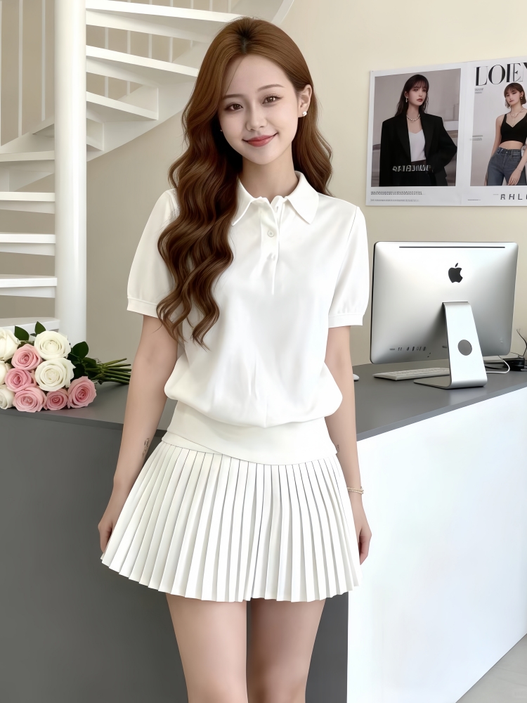 자이언트 잘 생긴 한 부서 착용 가져 가라. 전체 집합 2026 여름 새로운 캐주얼 연령 감소 니트 맨위 플리츠 미니 스커트 세트