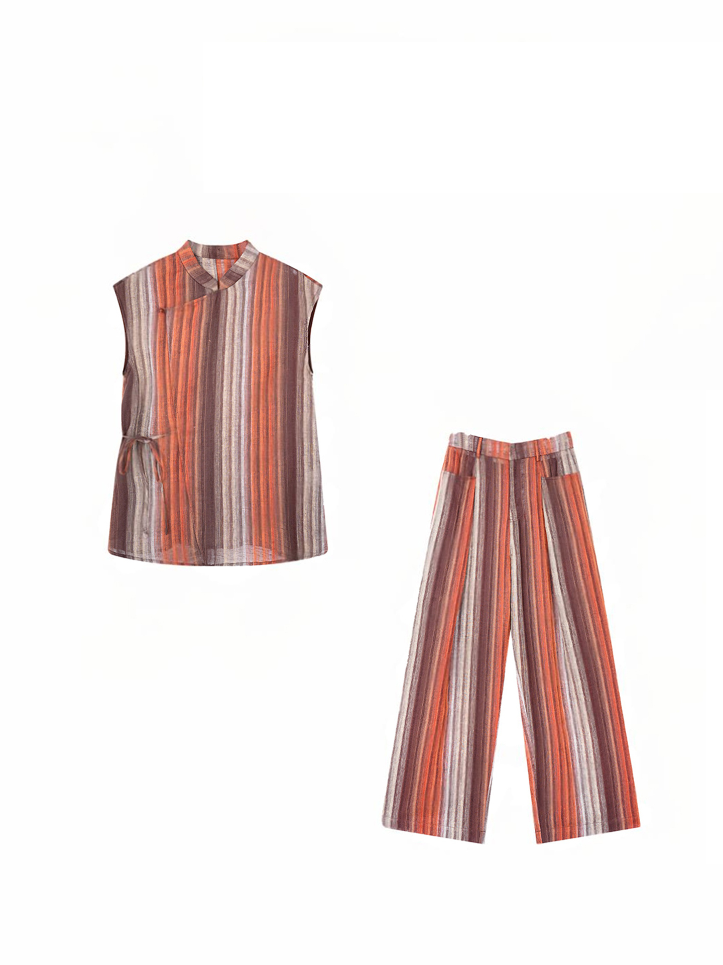 경관 그림 복잡한 고대 돈 바람 품격 베스트 세트 2026 새로운 디자인 민소매 조끼 와이드 레그 팬츠 투피스 세트