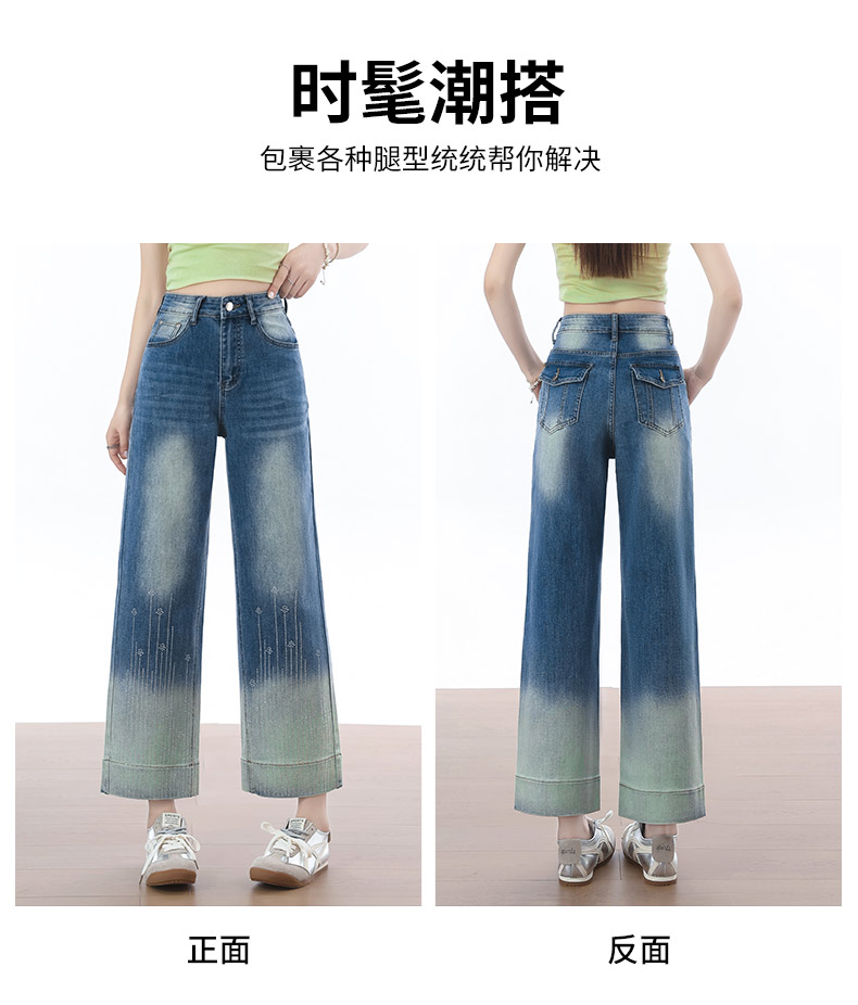 실사 여름 레트로 핫픽스 홀치기 염색 불모지 바람 넓은 다리 찢어진 부분 청바지 여성 디자인 센스 도루 센스 바닥 청소 바지