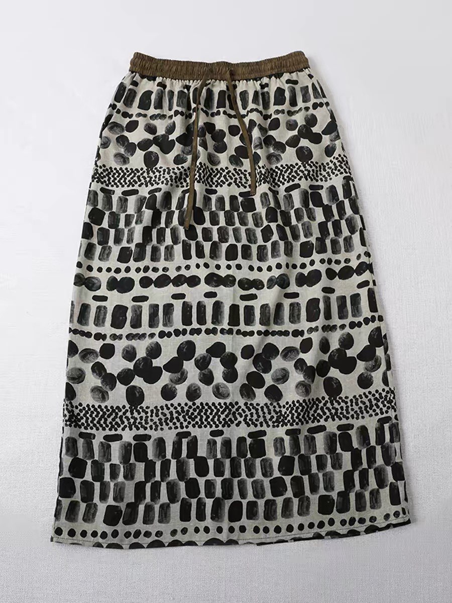 고급 센스 도트 무늬 프린트 주간 실크 아마 캐주얼 반신 스커트 여성 여름 2026 새로운 레트로 패션 스트레이트 치마