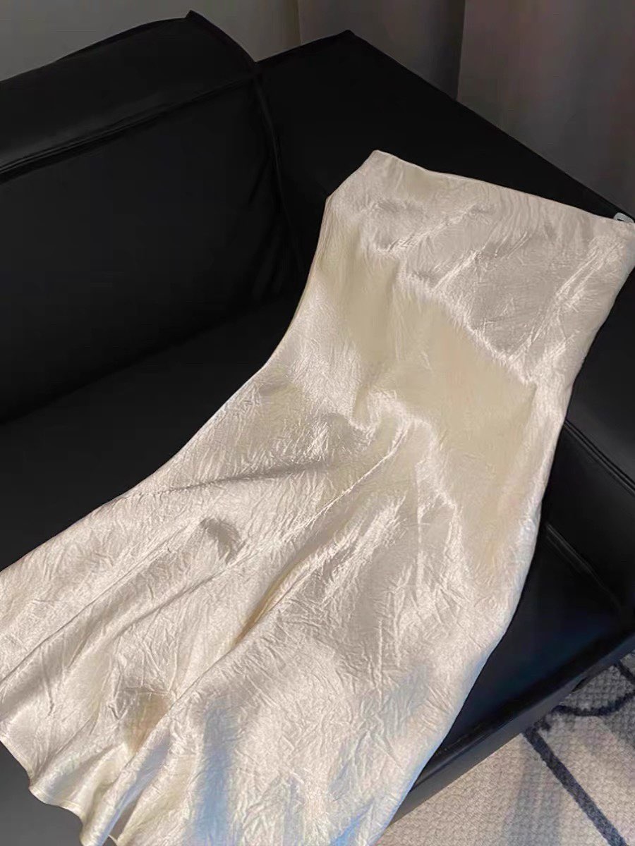 암소 물품 가져 오기 둘째 이해하다 오래된 돈 바람 구슬 빛 화이트 아세트산 주름 질감 센스 반신 스커트 새틴 인어 꼬리 스커트