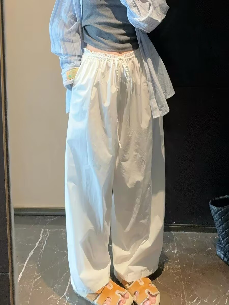 화이트 주간 실크 허리밴드 워크웨어 캐주얼 바지 여성 2026 여름 새로운 고급 질감 루즈핏 도루 센스 와이드 레그 팬츠