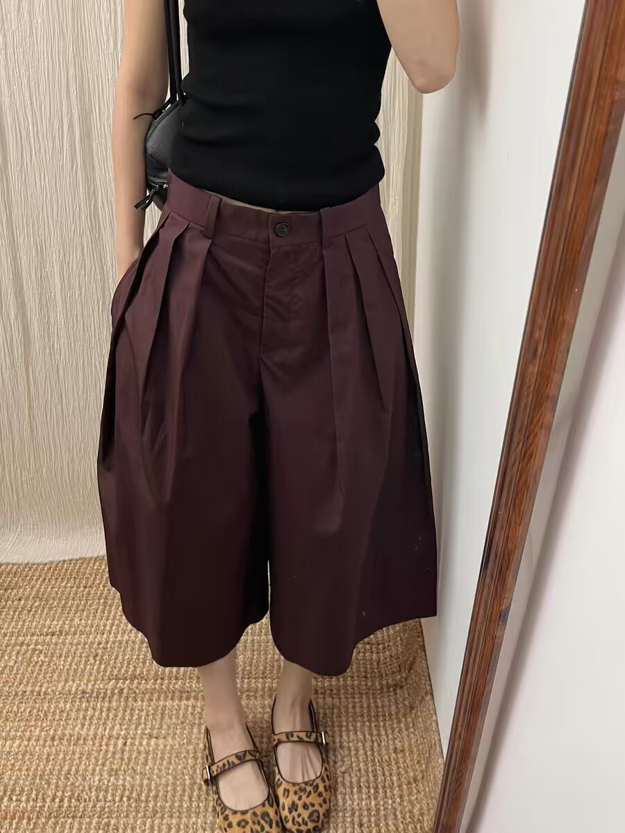 고급 센스 적갈색 한 마디 프로필 모양 명중 Pleat 7부 바지 여성 2026 새로운 레트로 다용도 정장 바지