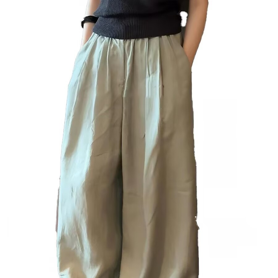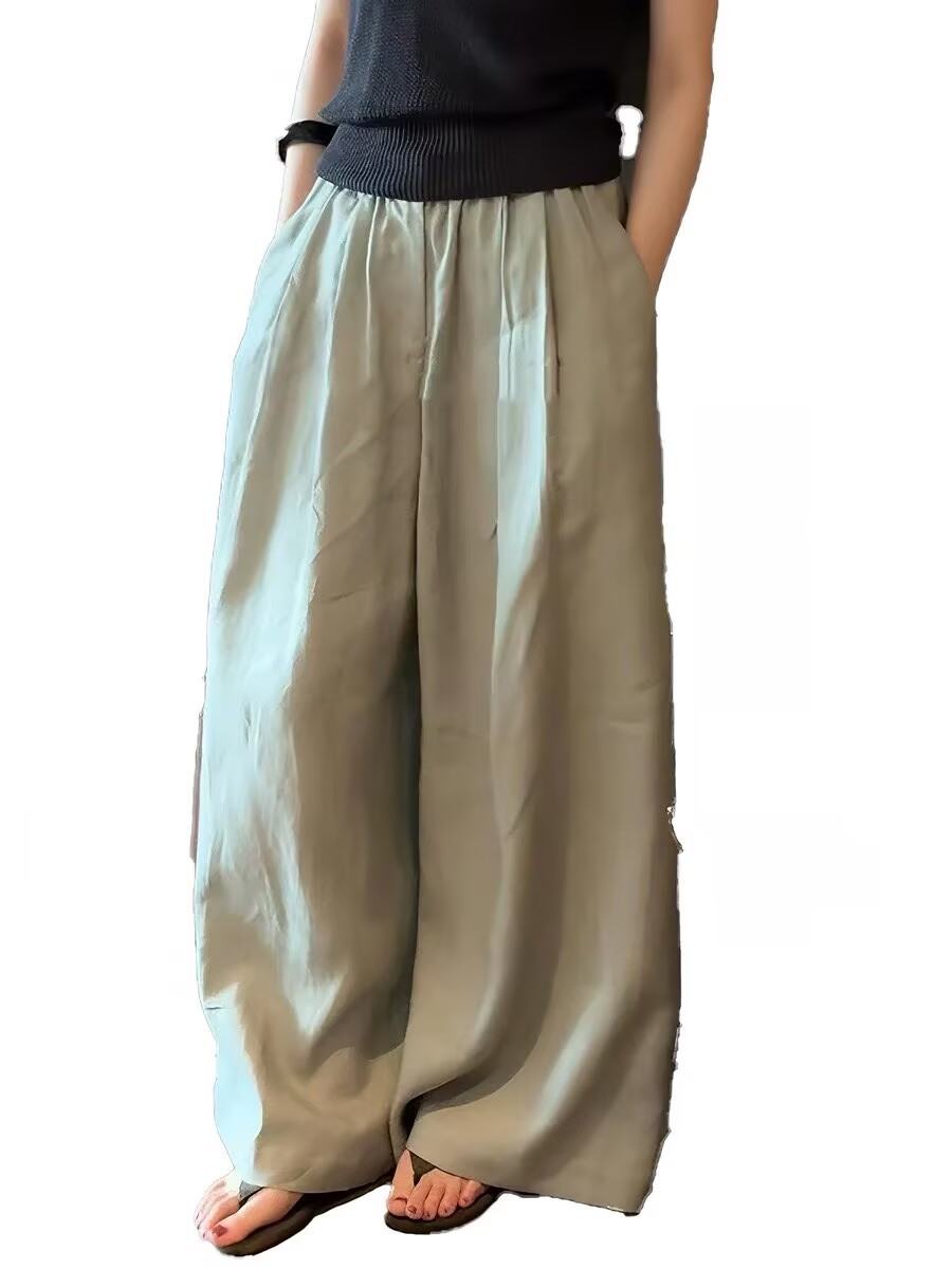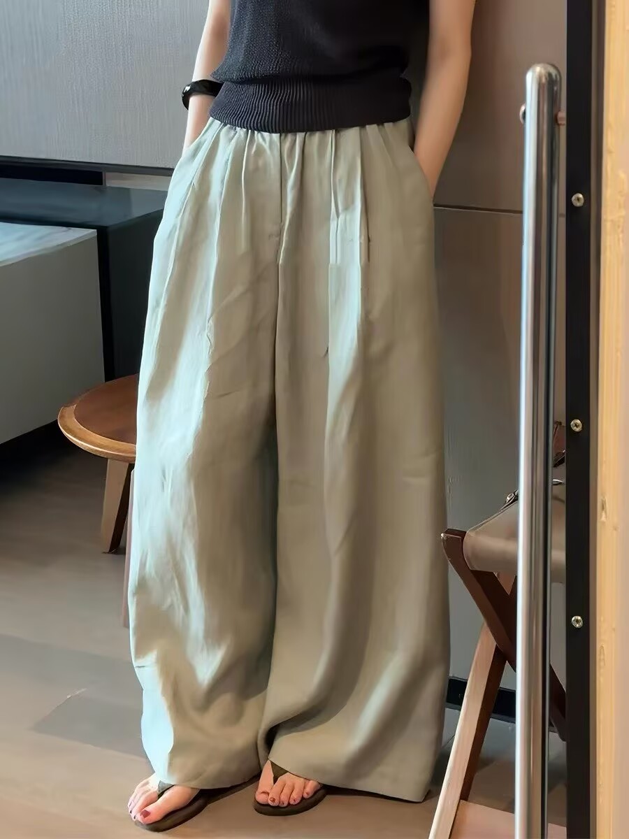 일본식 오래된 돈 바람 느긋한 캐주얼 바지 2026 여름 새로운 허리밴드 주간 실크 아마 루즈핏 도루 센스 와이드 레그 팬츠