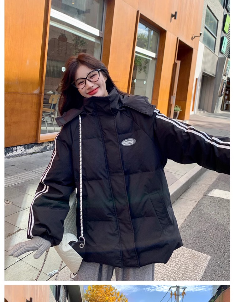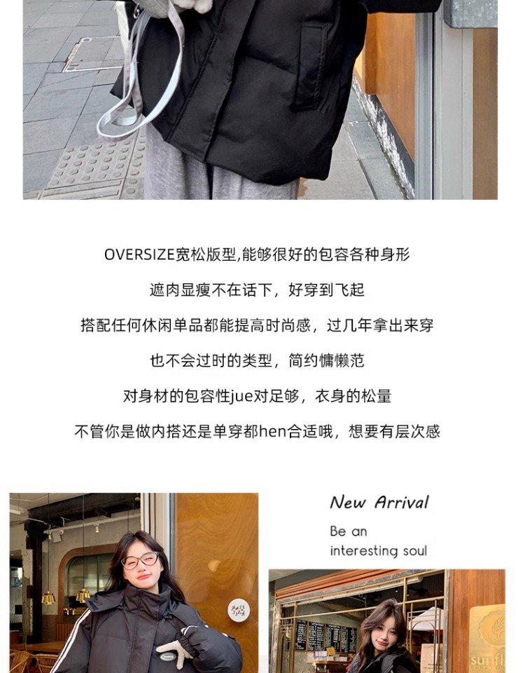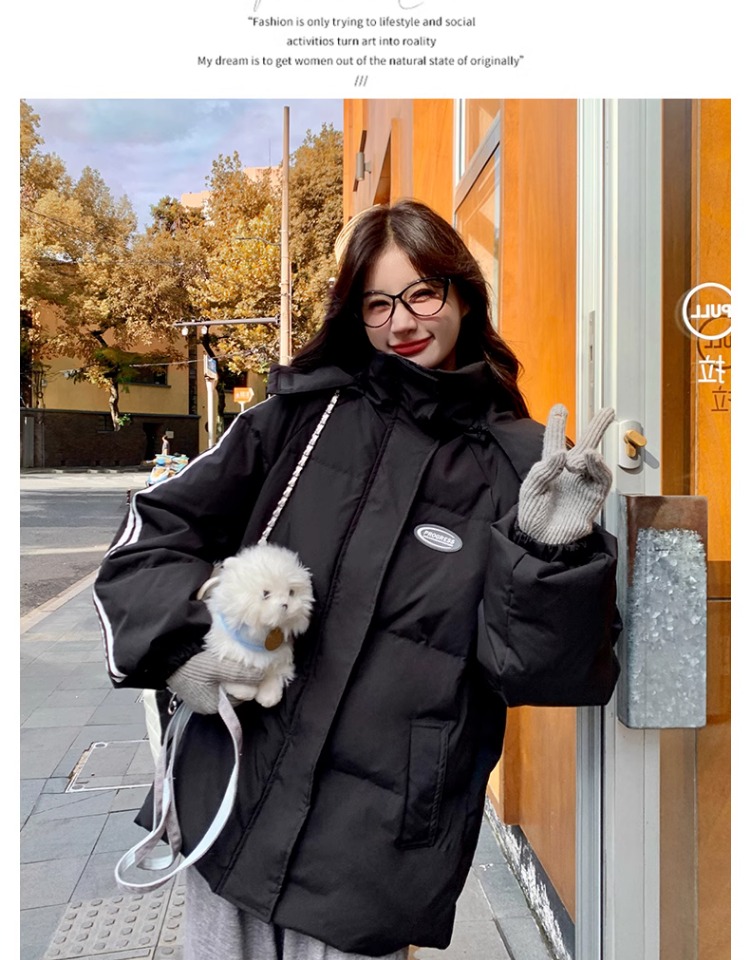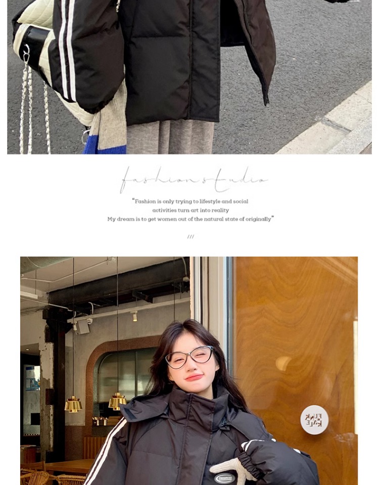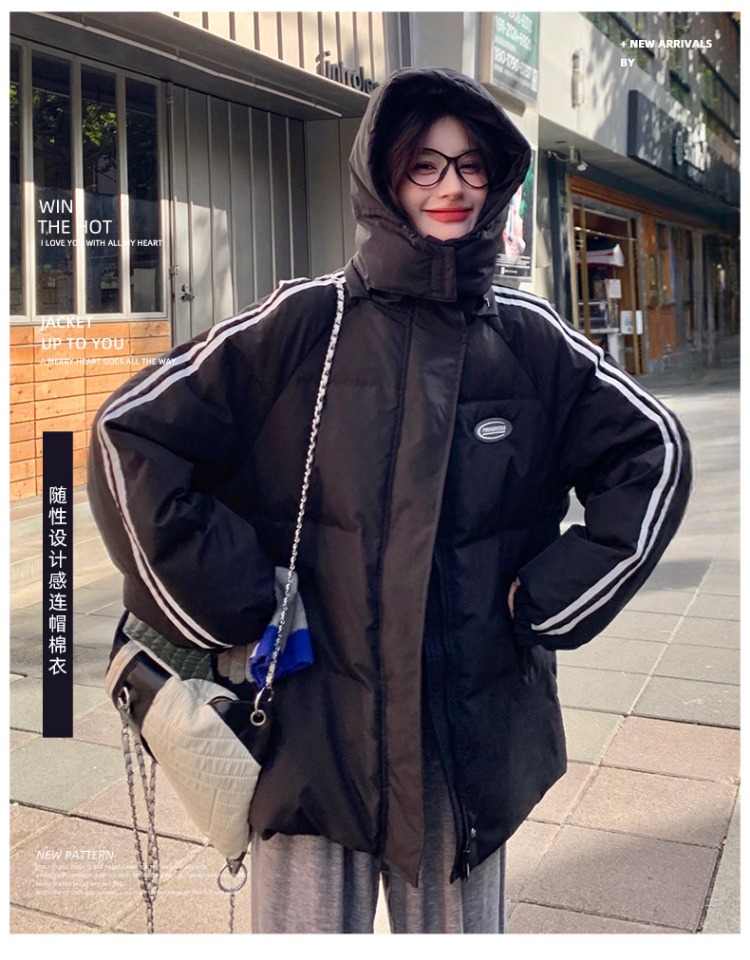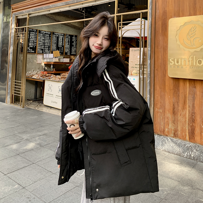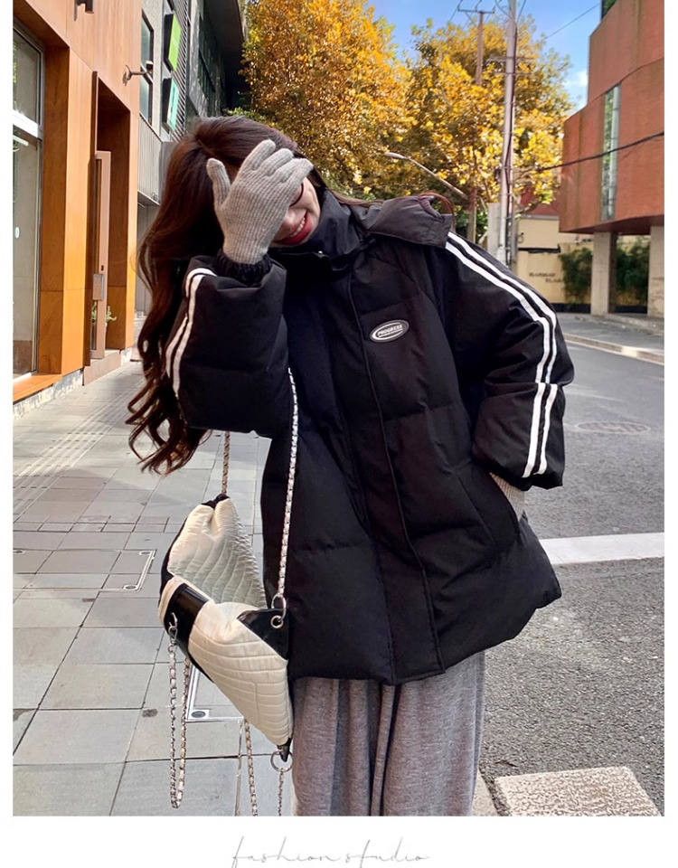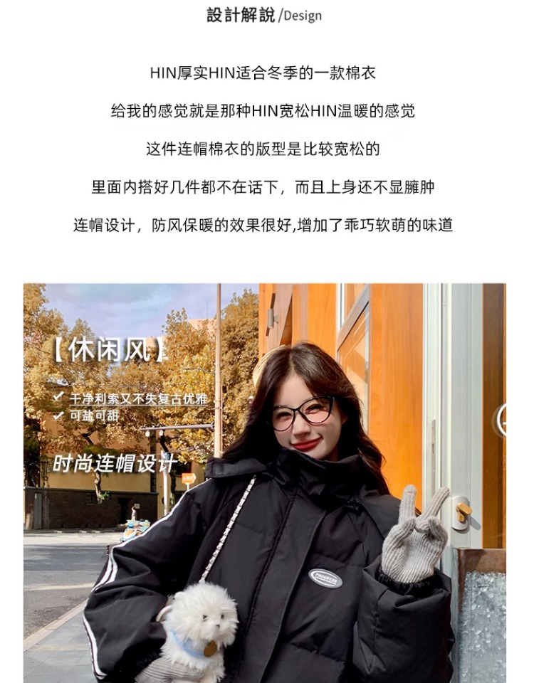 검정색 아래 면화 의류 여성 봄 2026 새로운 아메리칸 튀김 거리 막대기 표준 패딩 재킷 두꺼운 면 옷 목화 진딧물 ins 트렌디